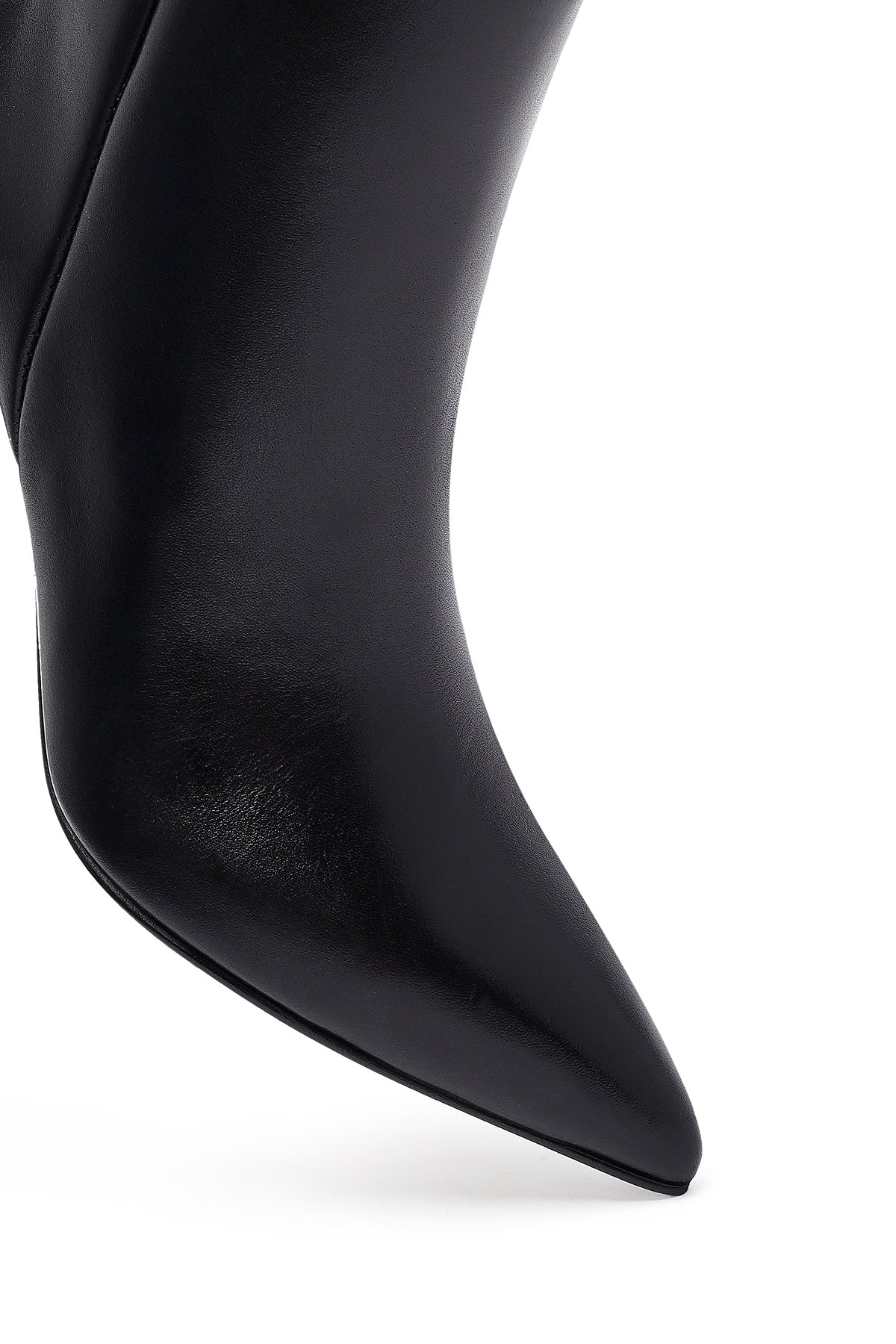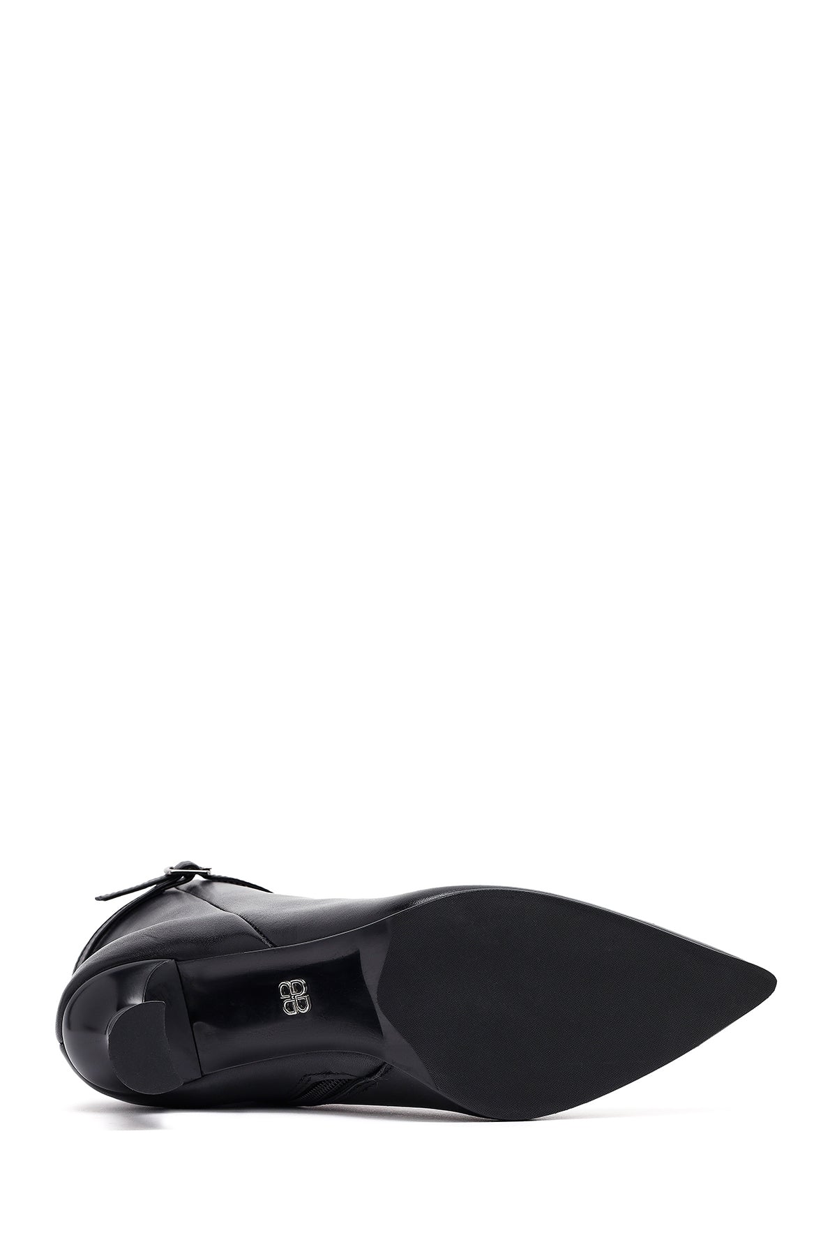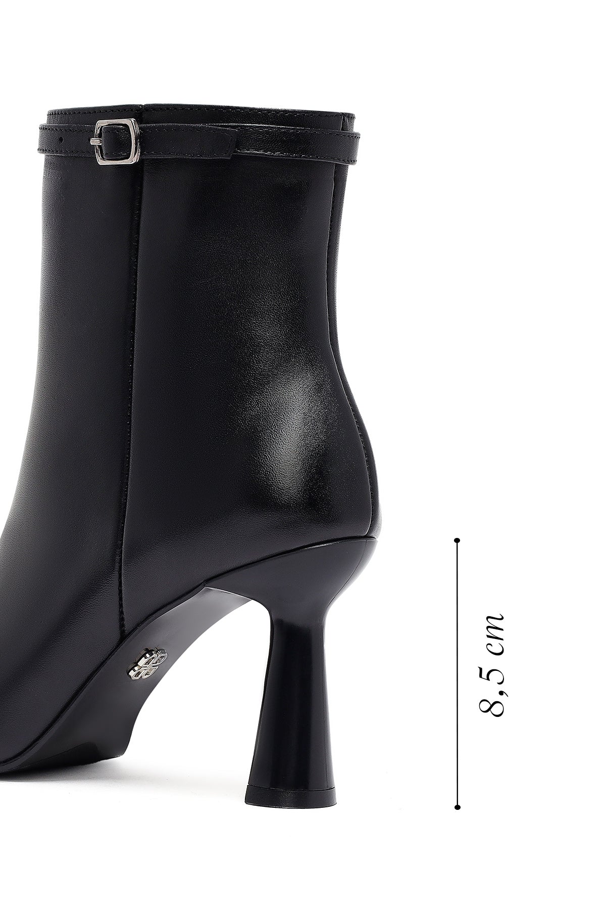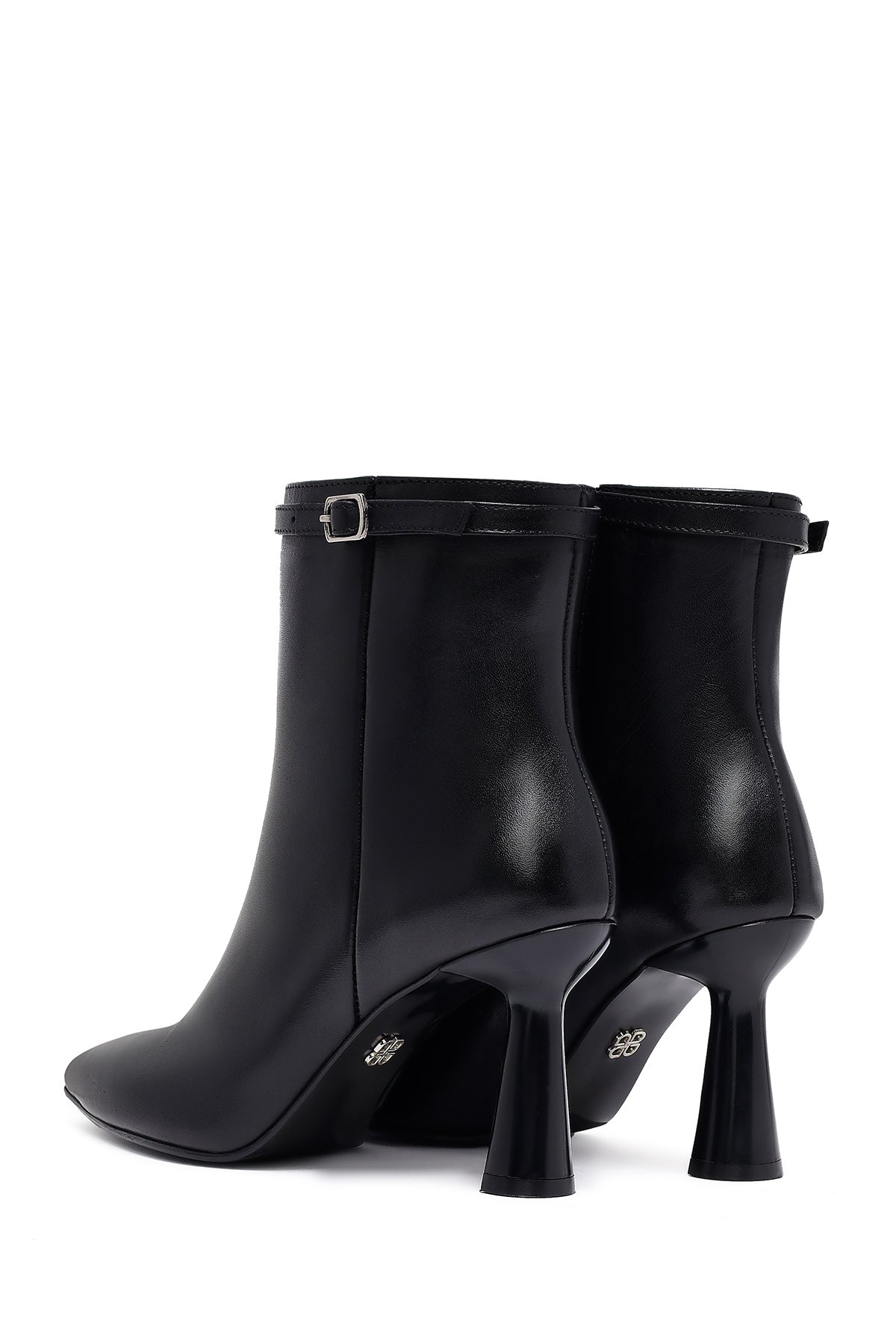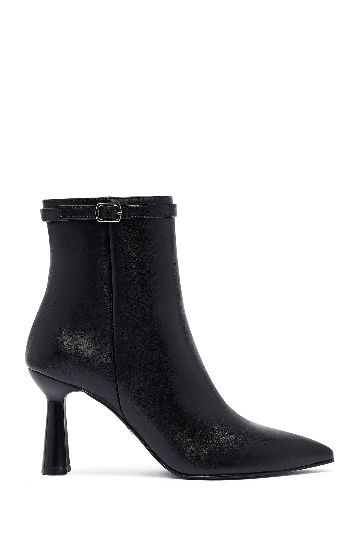 Kadın Siyah Fermuarlı İnce Topuklu Deri Bot