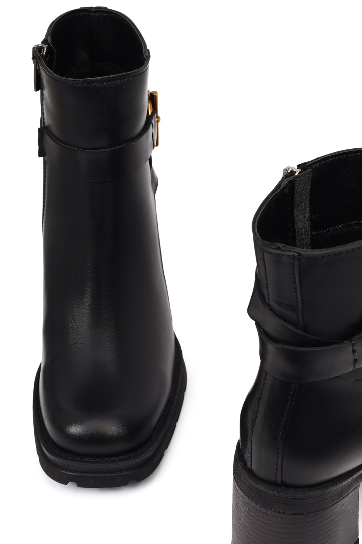 Kadın Siyah Fermuarlı Kalın Topuklu Deri Bot