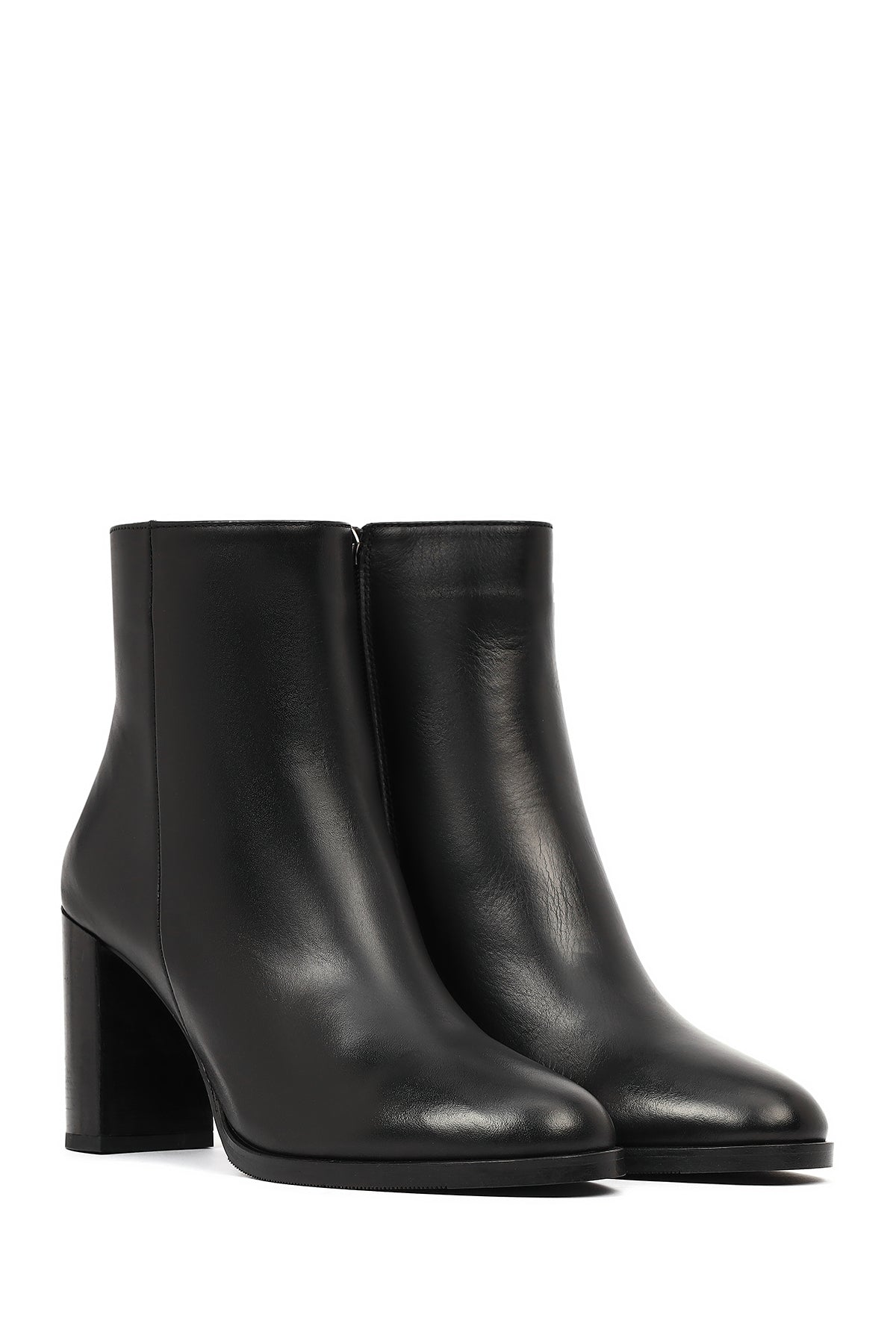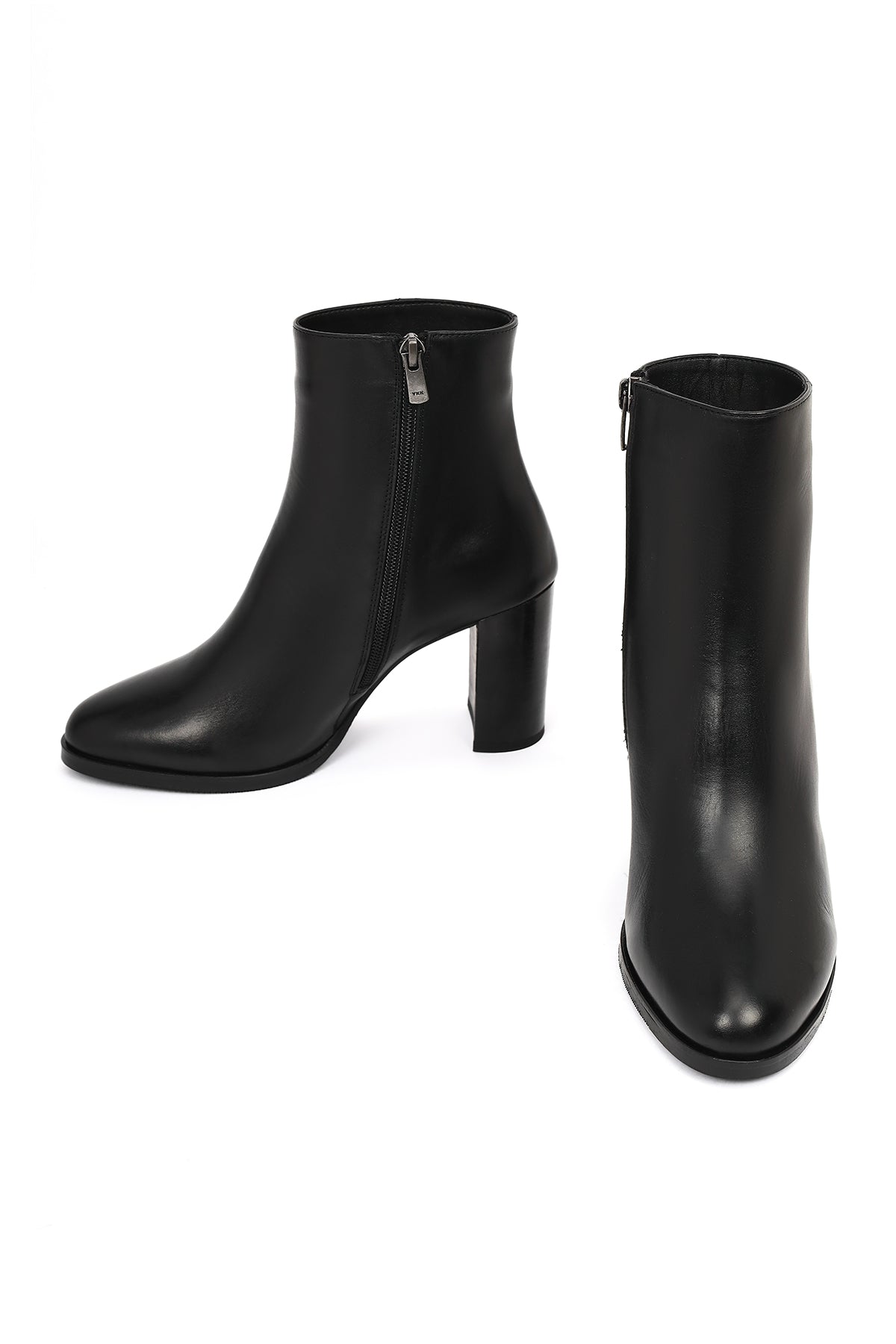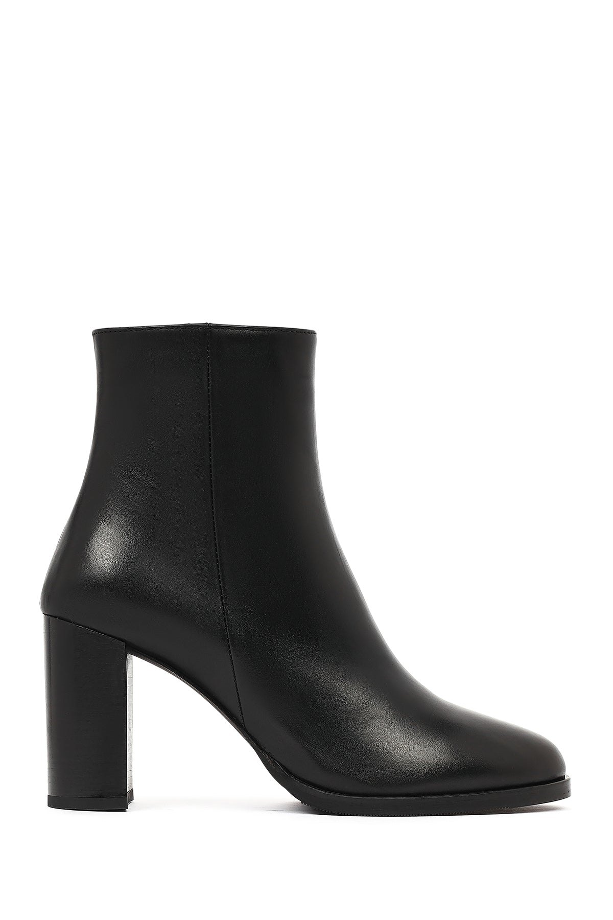 Kadın Siyah Fermuarlı Kalın Topuklu Deri Bot