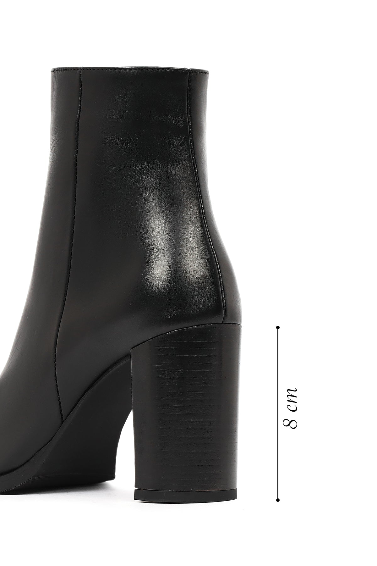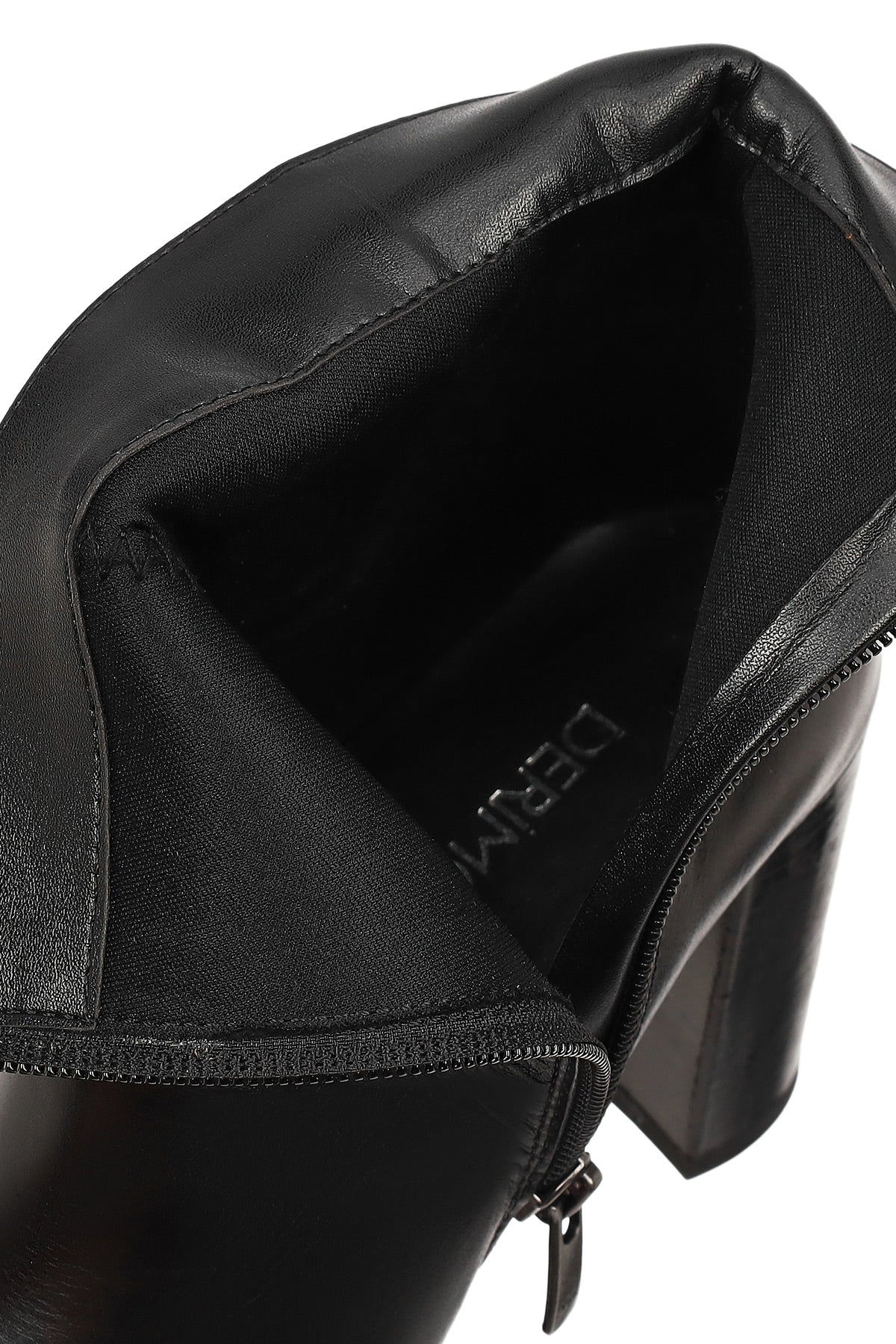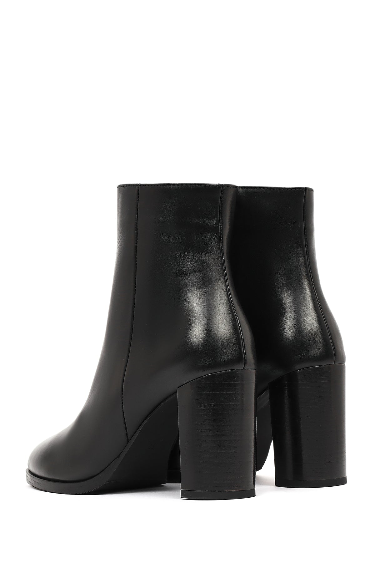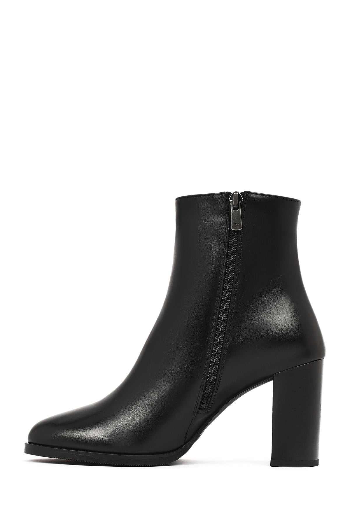 Kadın Siyah Fermuarlı Kalın Topuklu Deri Bot