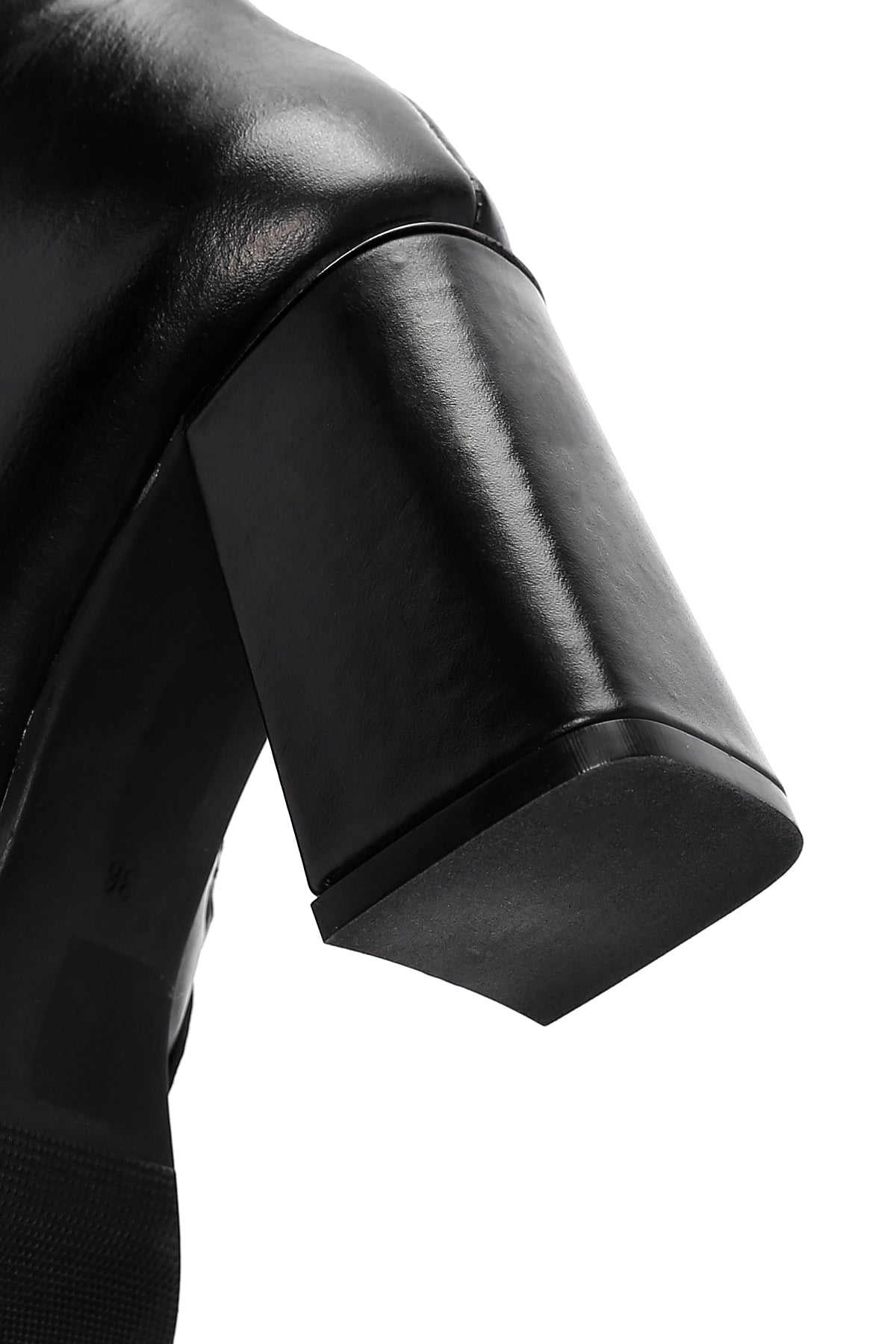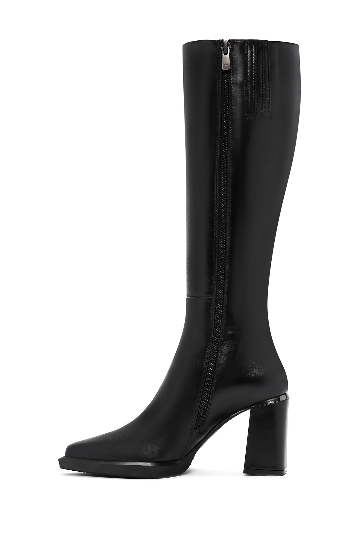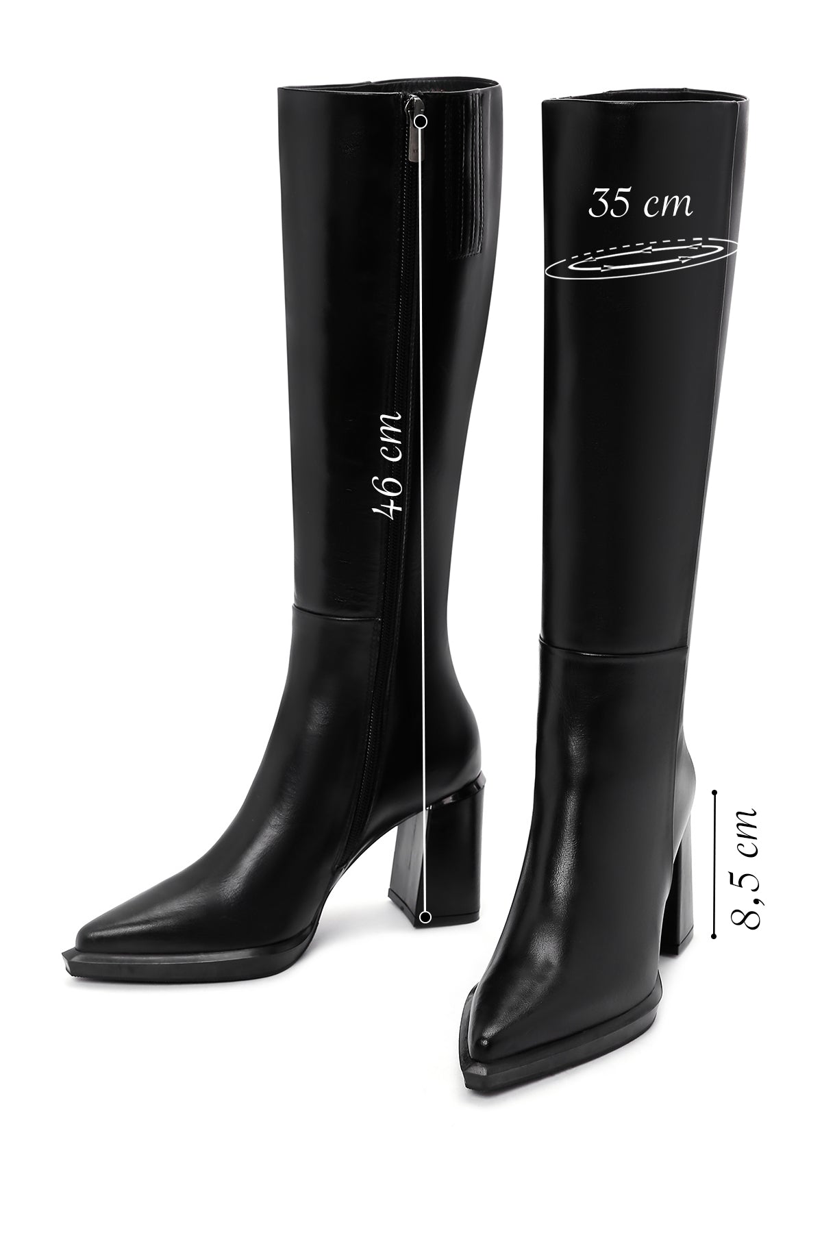 Derimod'un kış koleksiyonundan, vidala deri kullanılarak tasarlanan siyah çizme modeli, 8.5 cm yüksekliğindeki kalın topuğu ile şık bir görünüm sunuyor. Yan fermuarlı yapısı ile kolay giyim sağlayan model, deri-tekstil karışımlı iç astarı ile mevsim şartlarına uygun bir kullanım sağlıyor. Diz altı uzunluğu ve modern siluetiyle dikkat çeken çizme, etek ve elbiselerden pantolonlara kadar geniş bir kullanım alanı sunuyor. Sonbahar ve kış mevsimlerinde günlük kullanımdan özel davetlere kadar tercih edilebilir. Ürün kodu: 25WFD131618