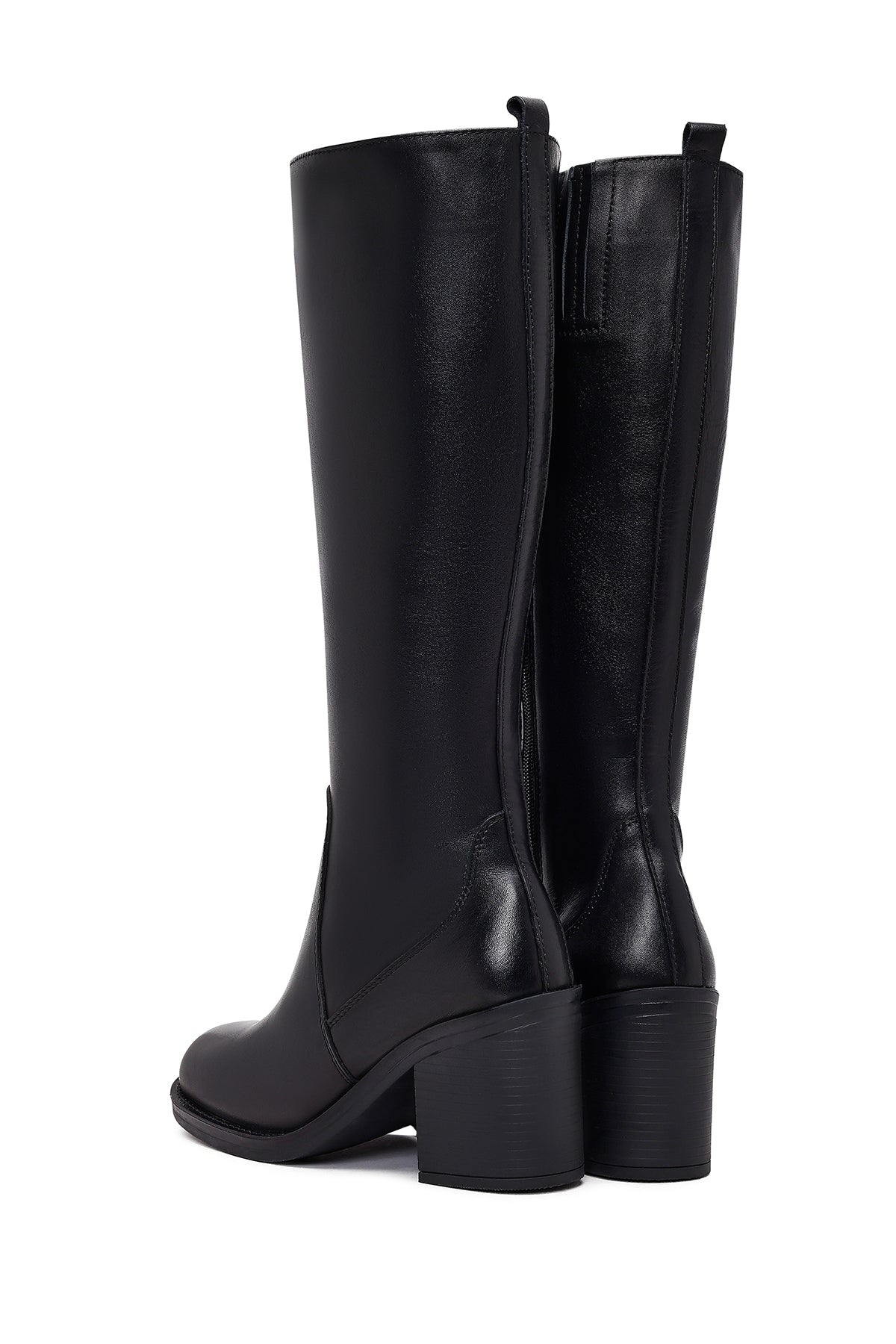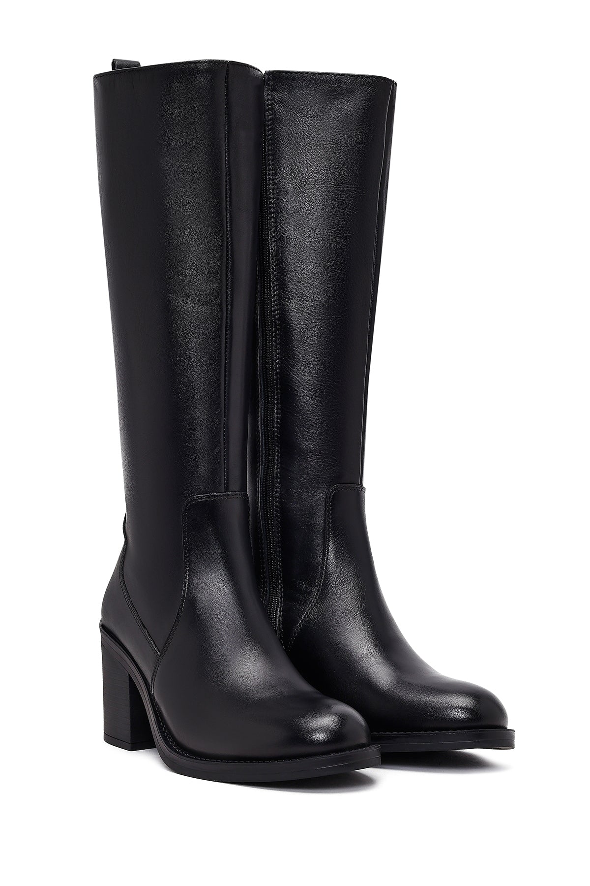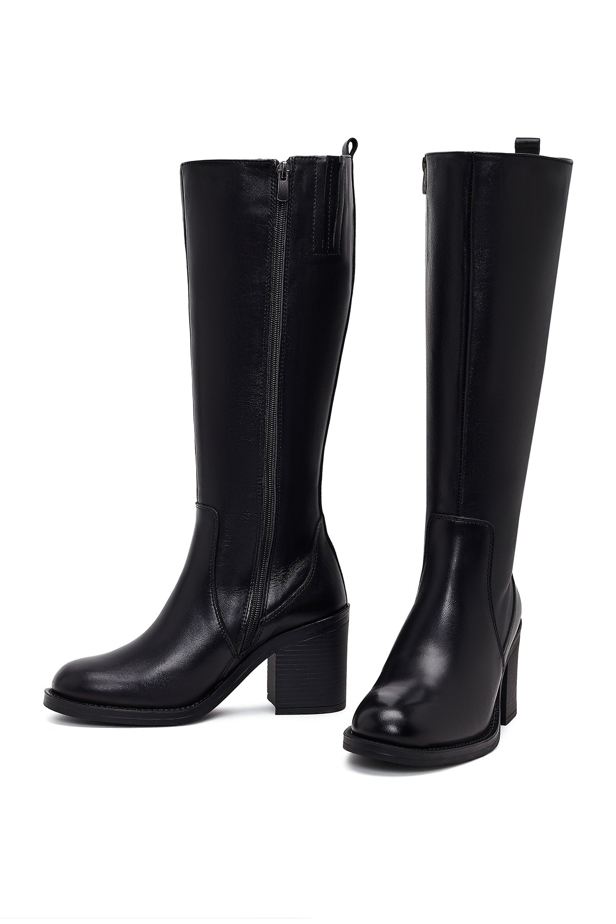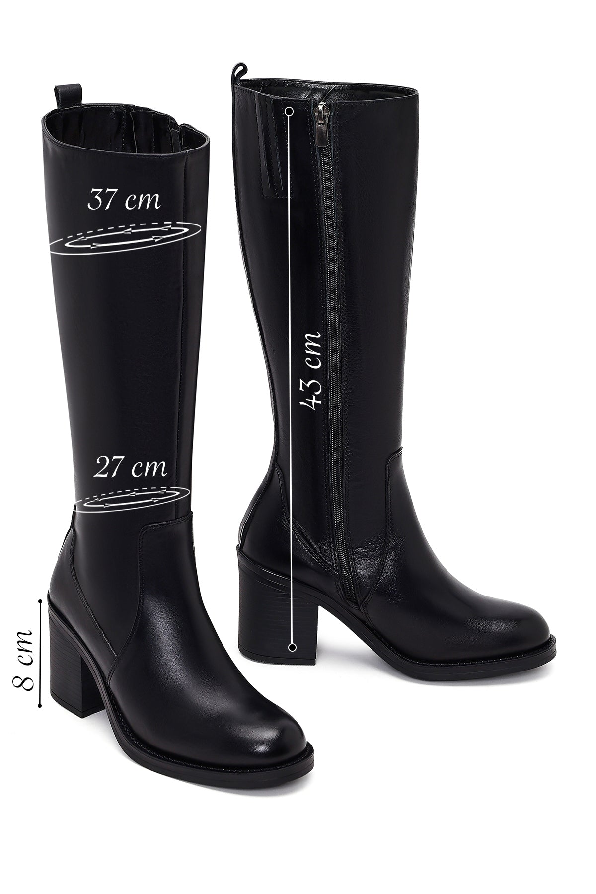 Kadın Siyah Fermuarlı Kalın Topuklu Deri Çizme