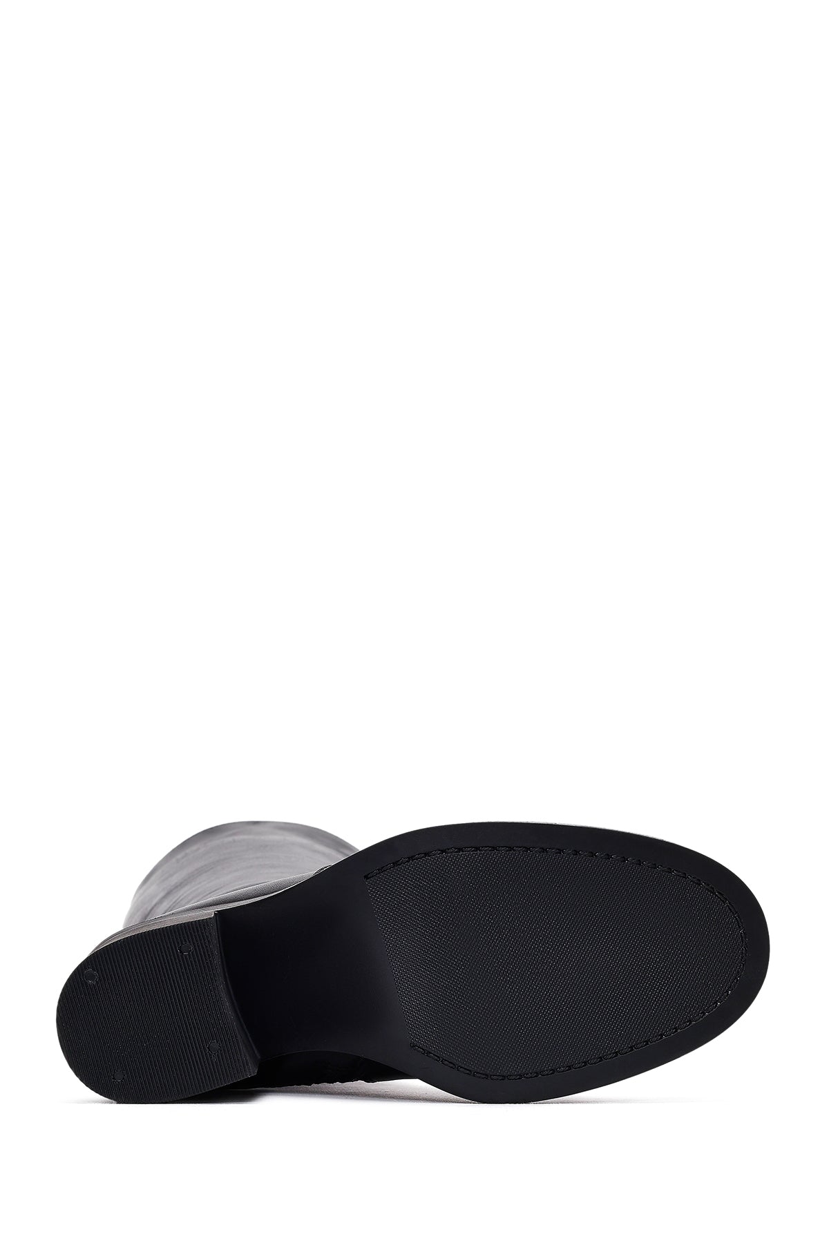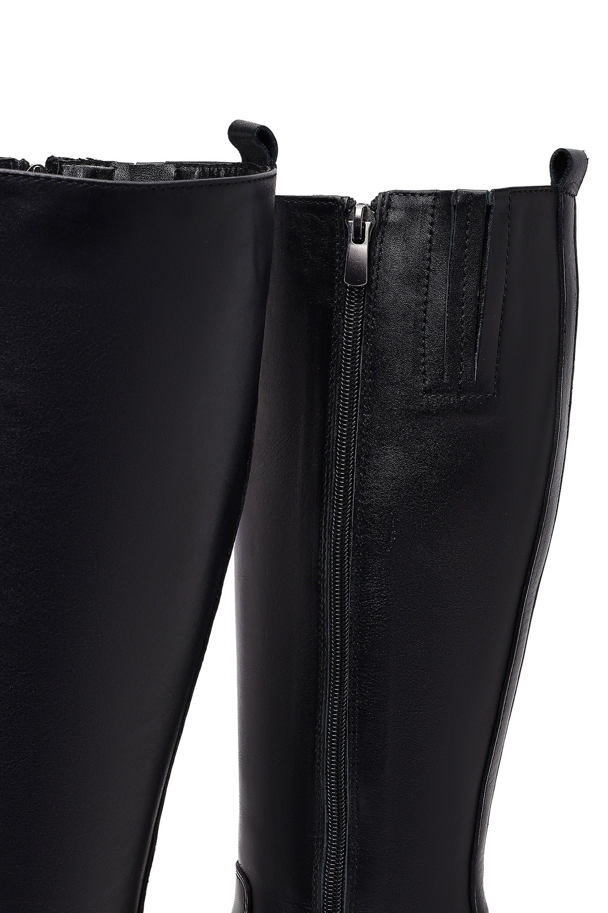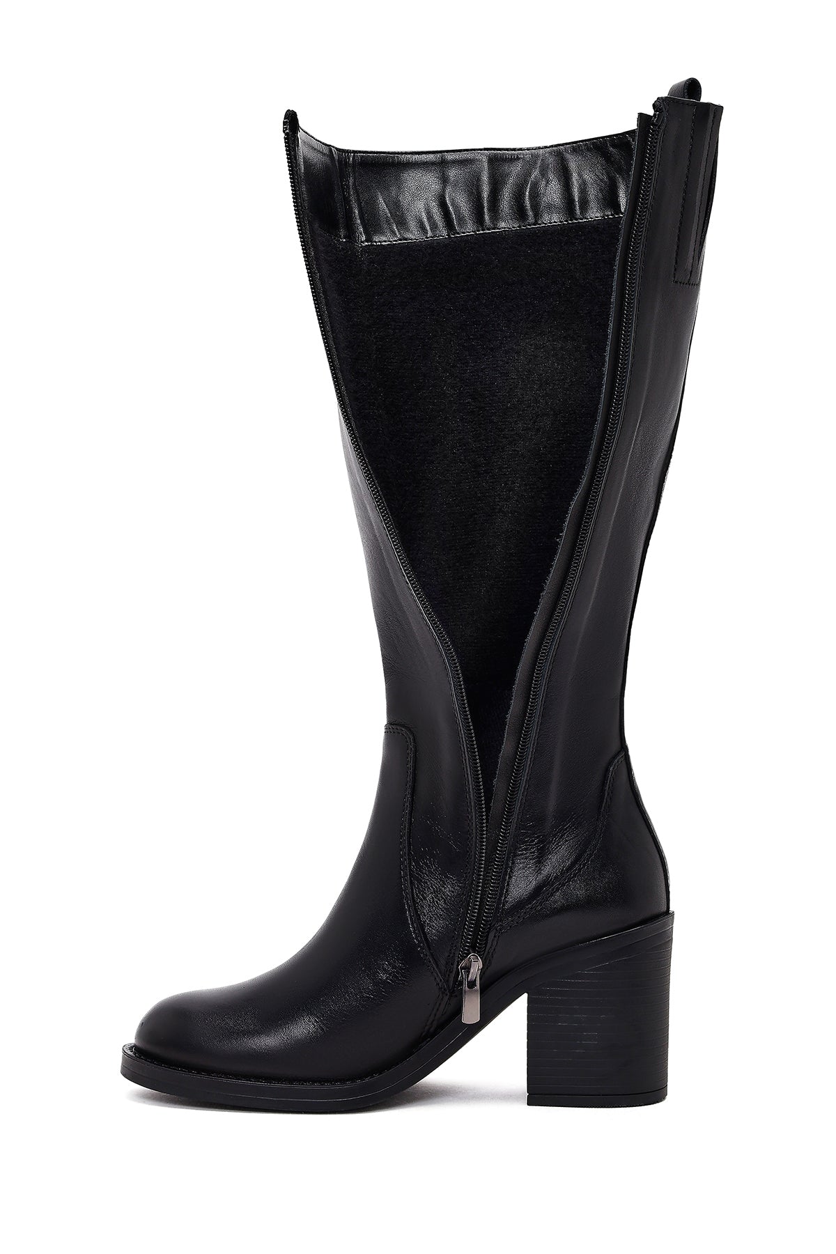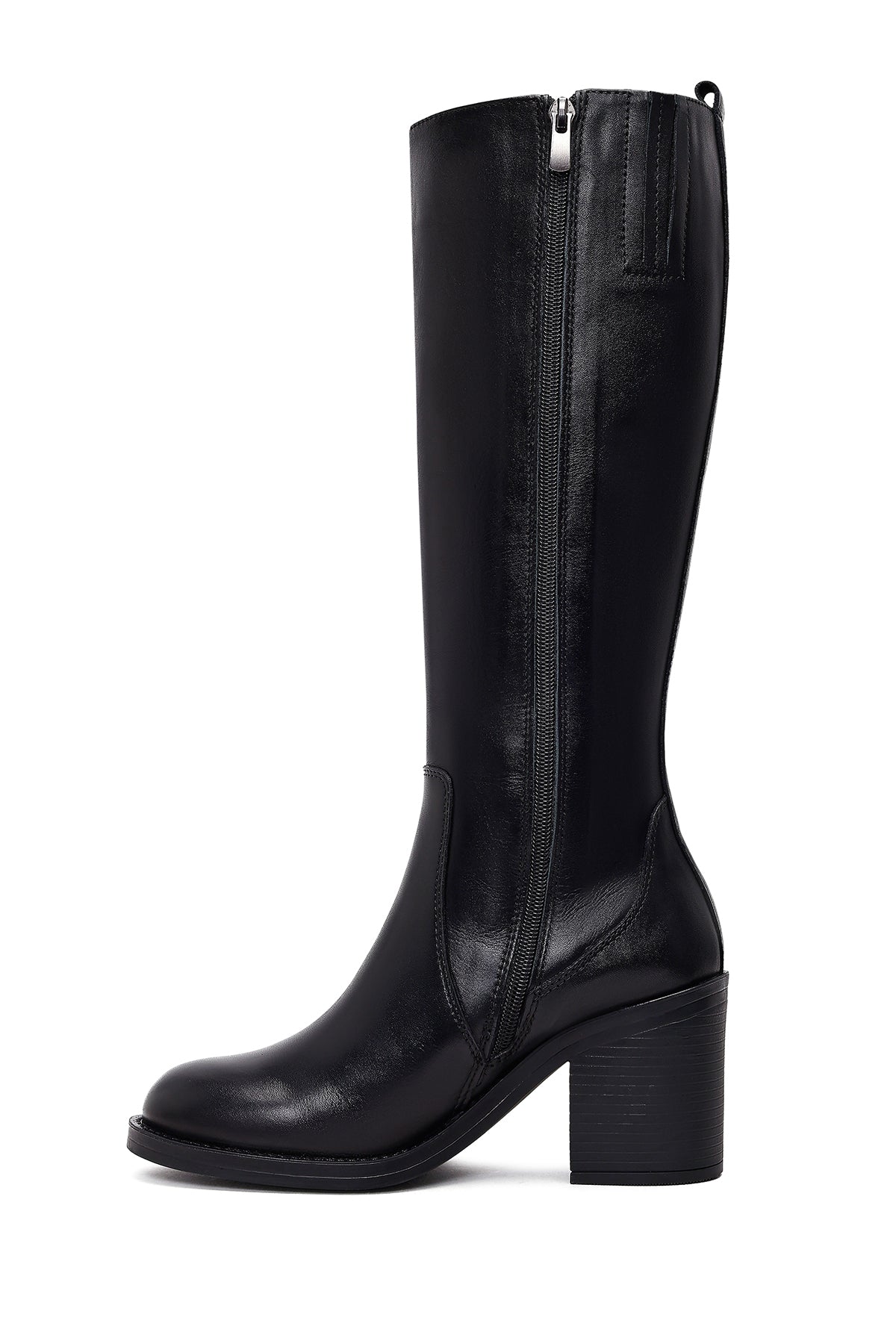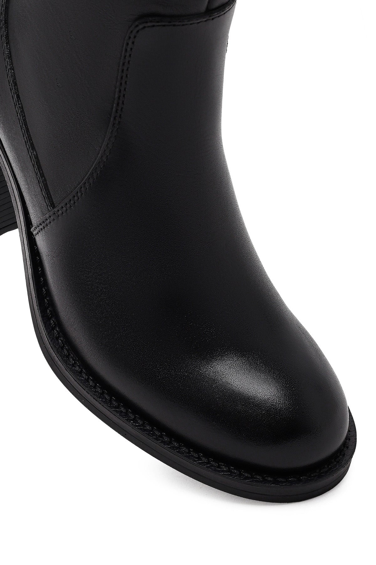 Kadın Siyah Fermuarlı Kalın Topuklu Deri Çizme