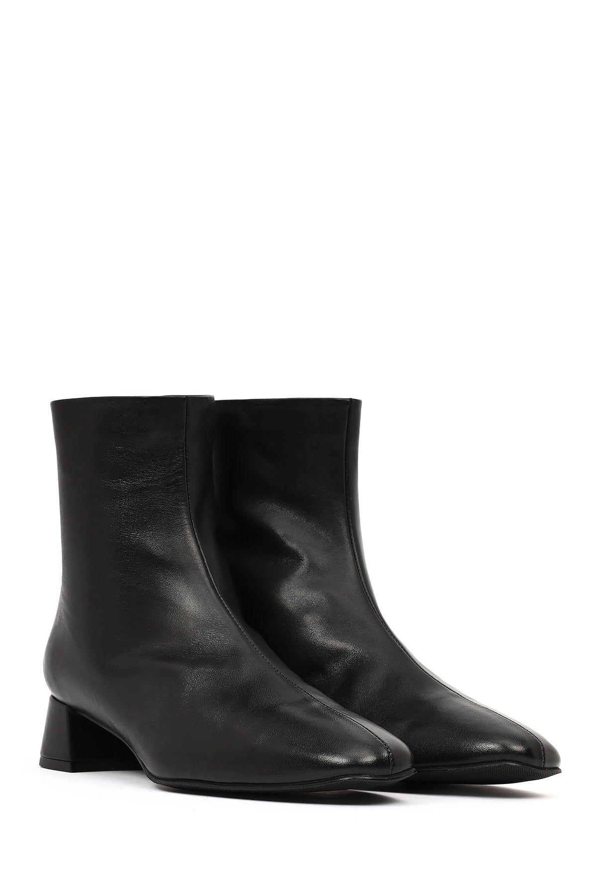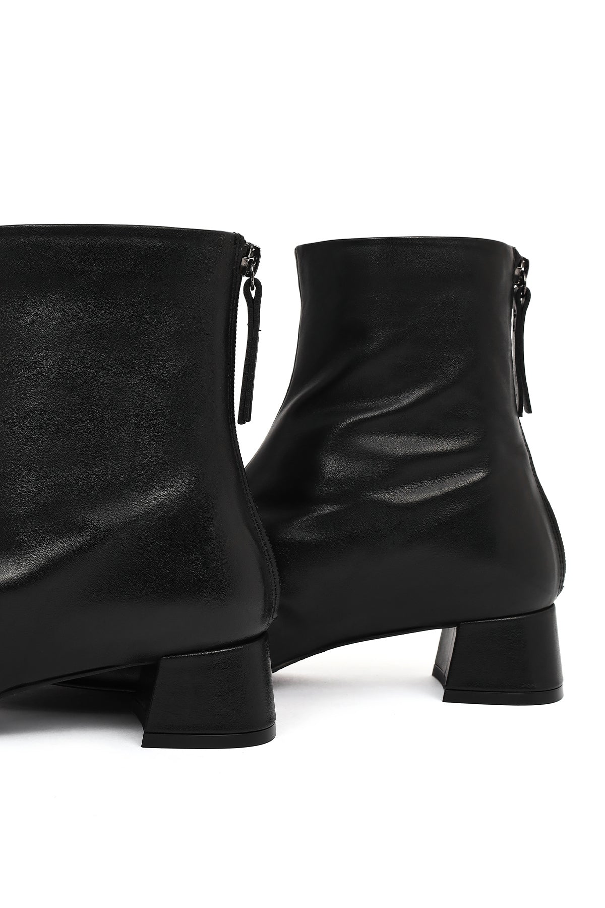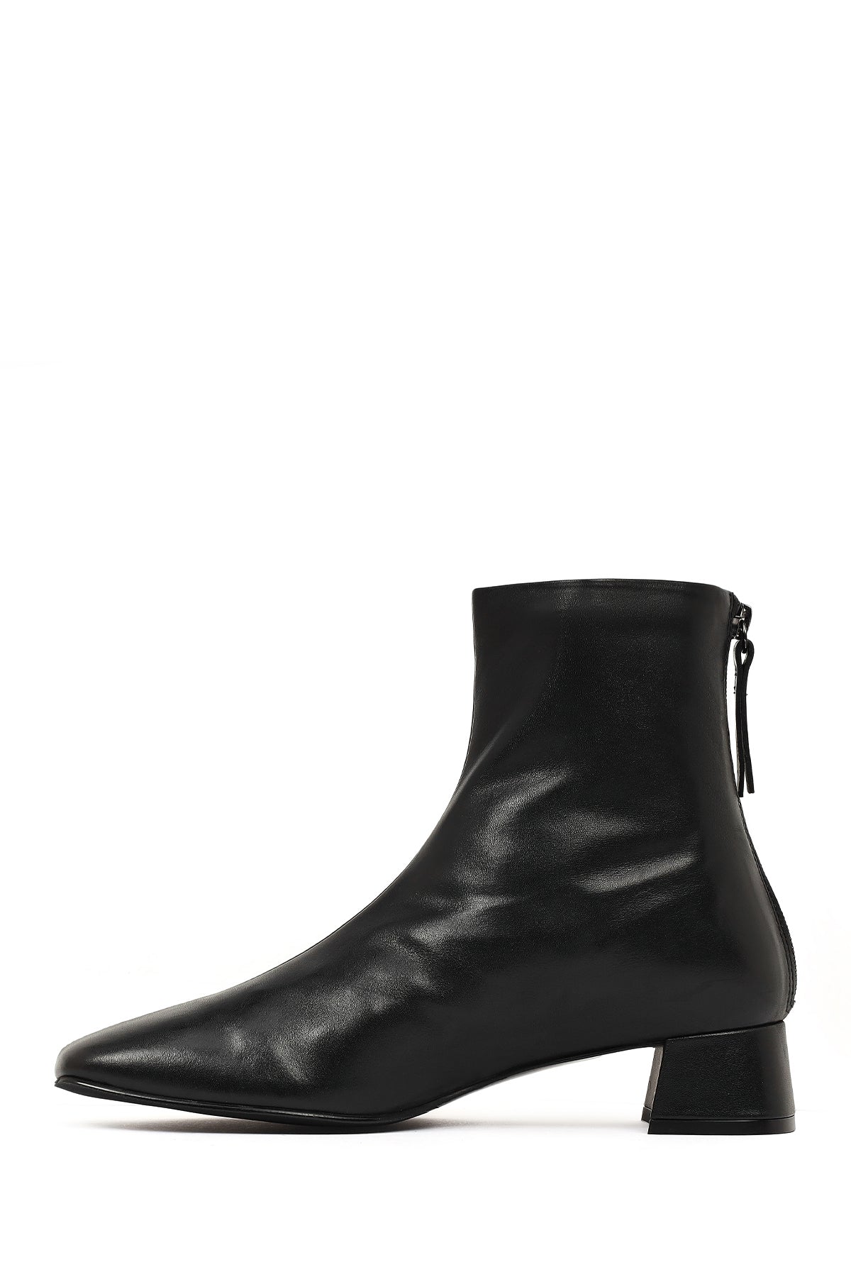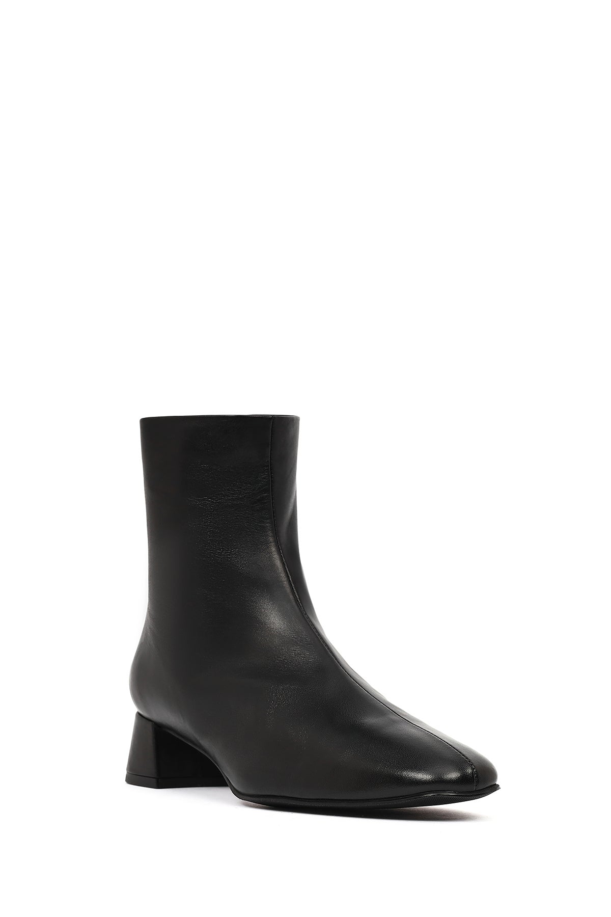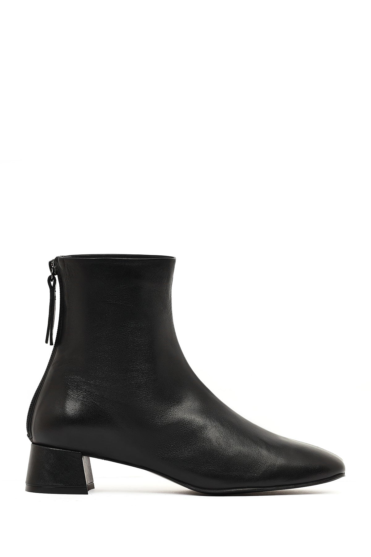 Kadın Siyah Fermuarlı Kısa Kalın Topuklu Deri Bot