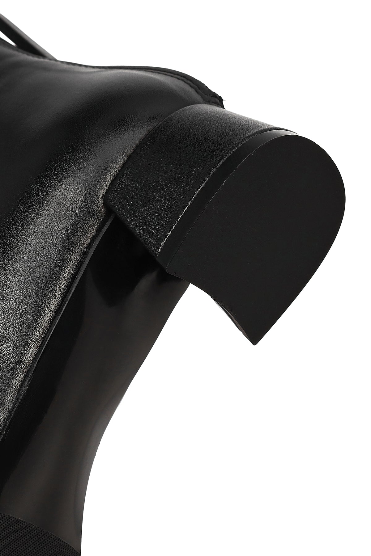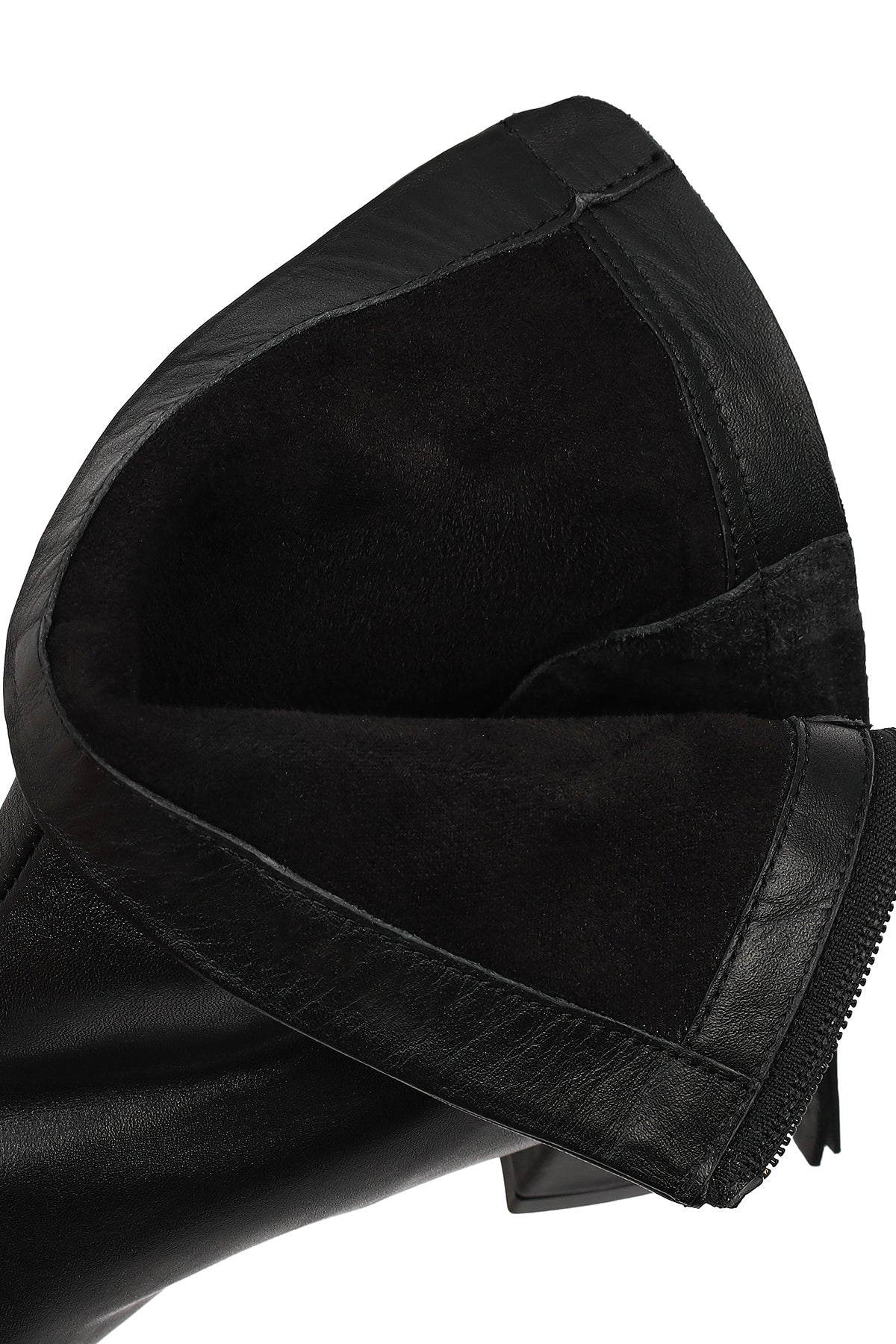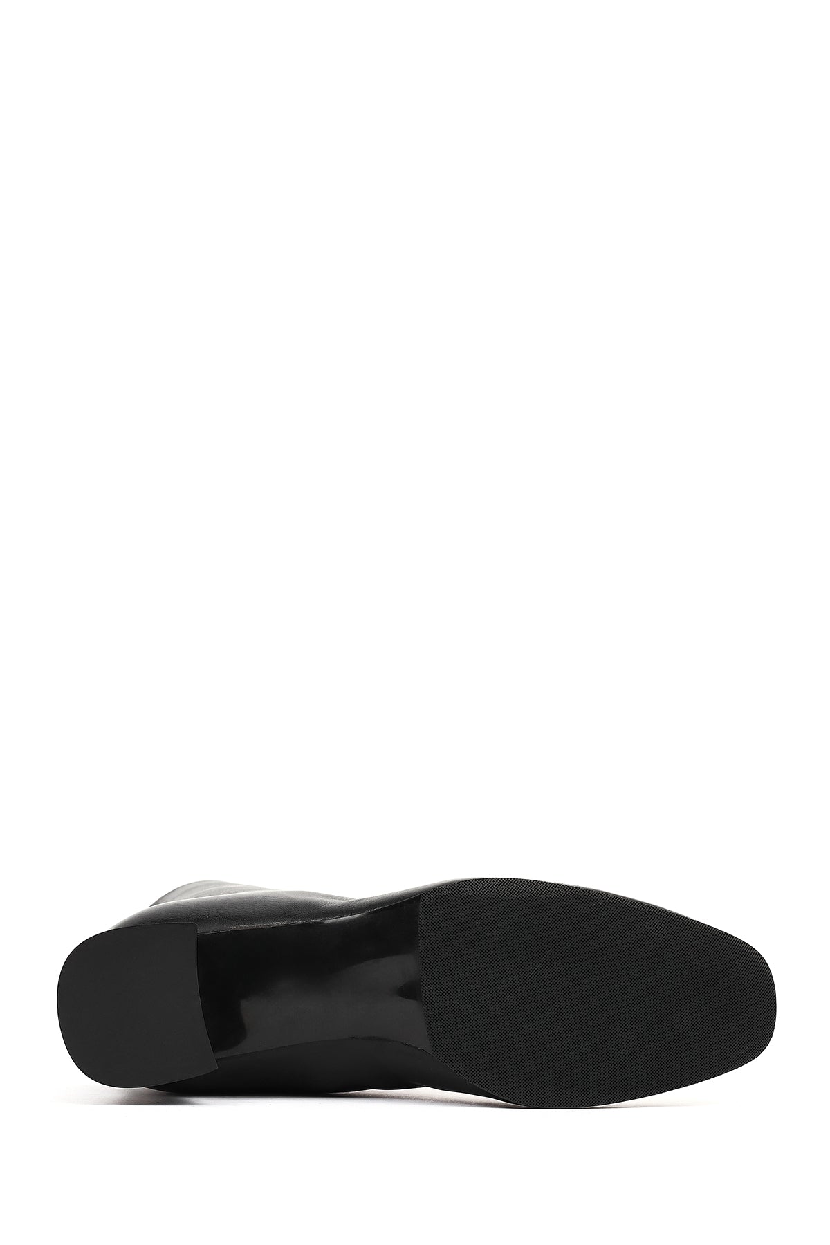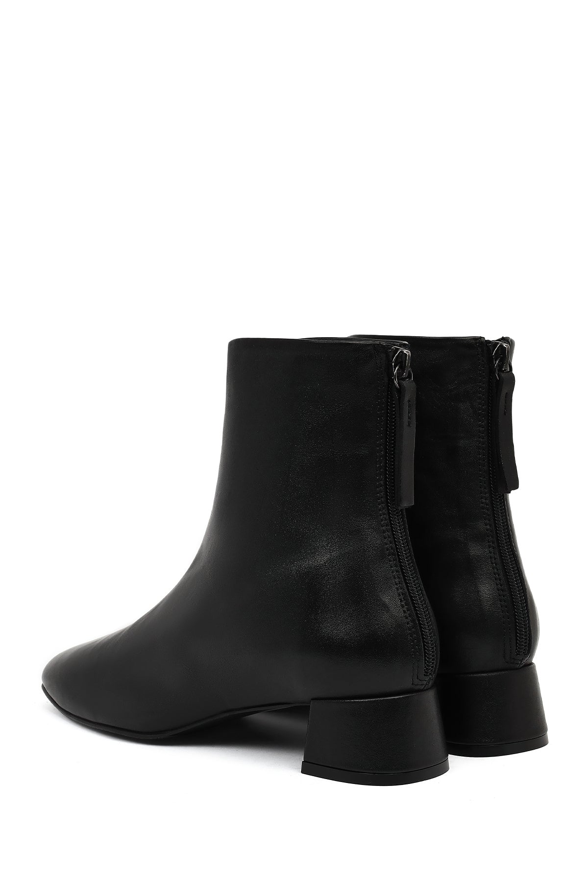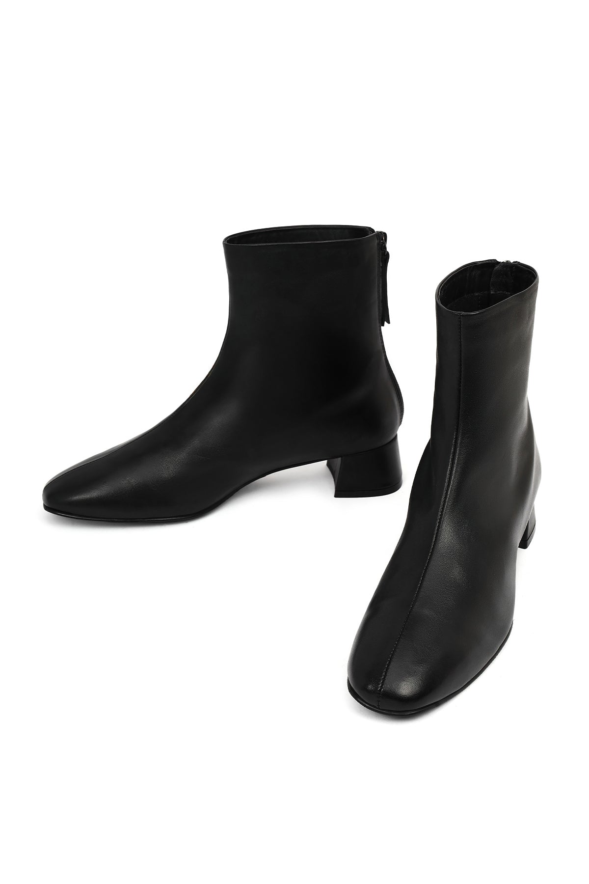 Kadın Siyah Fermuarlı Kısa Kalın Topuklu Deri Bot