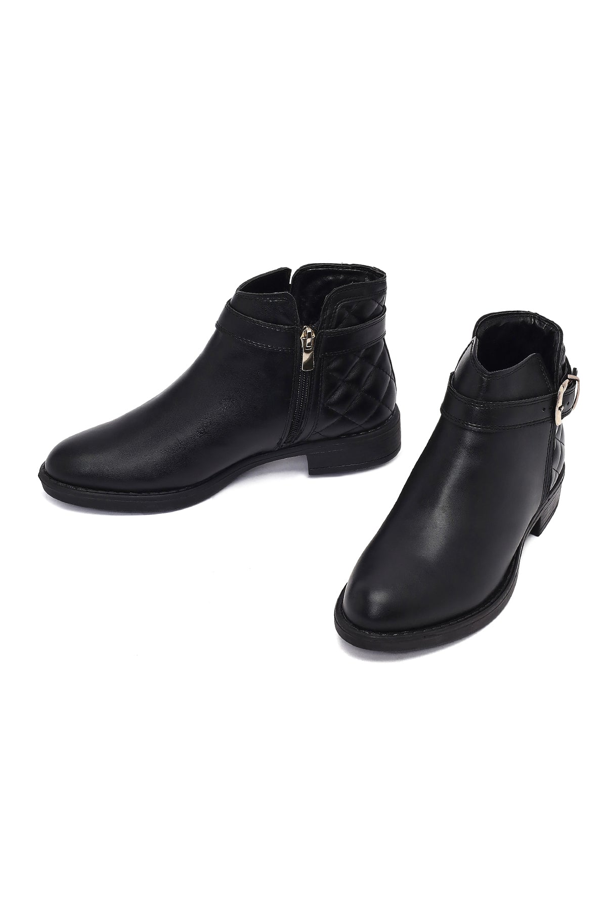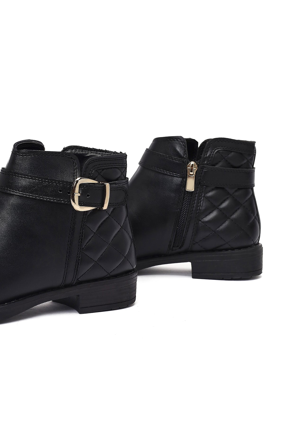 Derimod'un kış koleksiyonundan, vidala suni deri kullanılarak tasarlanan siyah bot modeli, 2 cm yüksekliğindeki tabanı ile günlük kullanıma uygun bir tasarım sunuyor. Yan fermuarı ve dekoratif toka detayı ile şık bir görünüm sergileyen model, tekstil iç astarı sayesinde ayağınızı sıcak tutuyor. Kapitone detaylı arka kısmı ile dikkat çeken bot, jean'lerden elbiselere, eteklerden günlük kombinlere kadar geniş bir kullanım alanı sunuyor. Sonbahar ve kış mevsimlerinde günün her saatinde kullanılabilir. Ürün kodu: 25WFE250218