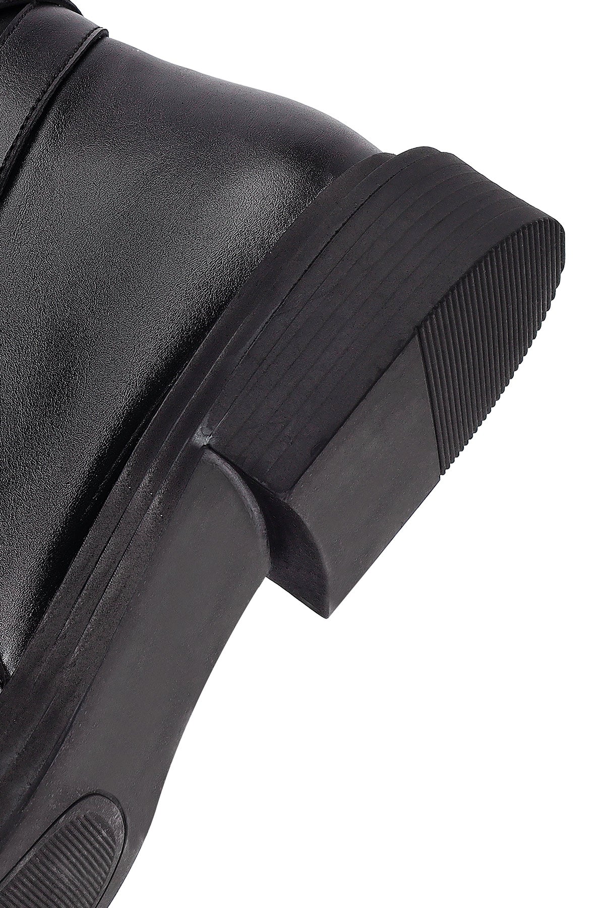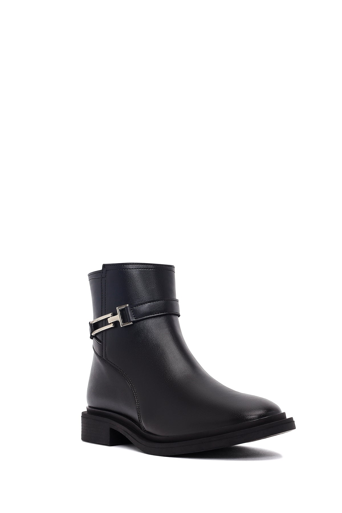 Derimod'un kış koleksiyonundan, vidala doku özelliğine sahip siyah bot modeli, 2,5 cm yüksekliğindeki topuğu ile günlük kullanıma uygun bir tasarım sunuyor. Yan fermuar detayı ve dekoratif tokası ile modern bir görünüm sergileyen model, tekstil iç astarı sayesinde soğuk kış günlerinde ayağınızı sıcak tutuyor. Minimal tasarımı ile jean'lerden elbiselere, eteklerden günlük kombinlere kadar geniş bir kullanım alanı sunuyor. Sonbahar ve kış mevsimlerinde günün her saatinde kullanılabilir. Ürün kodu: 25WFE251218