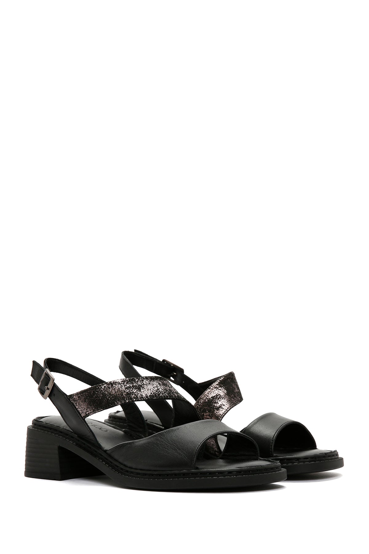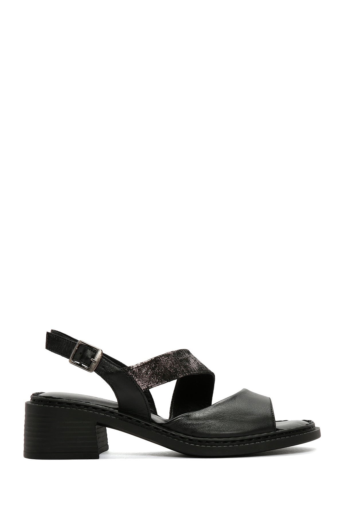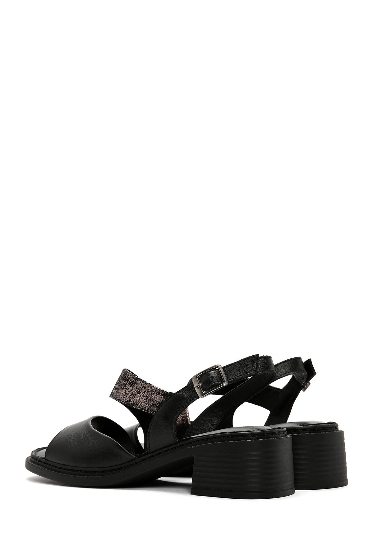 Kadın Siyah Kalın Kısa Topuklu Bilekten Bantlı Deri Sandalet