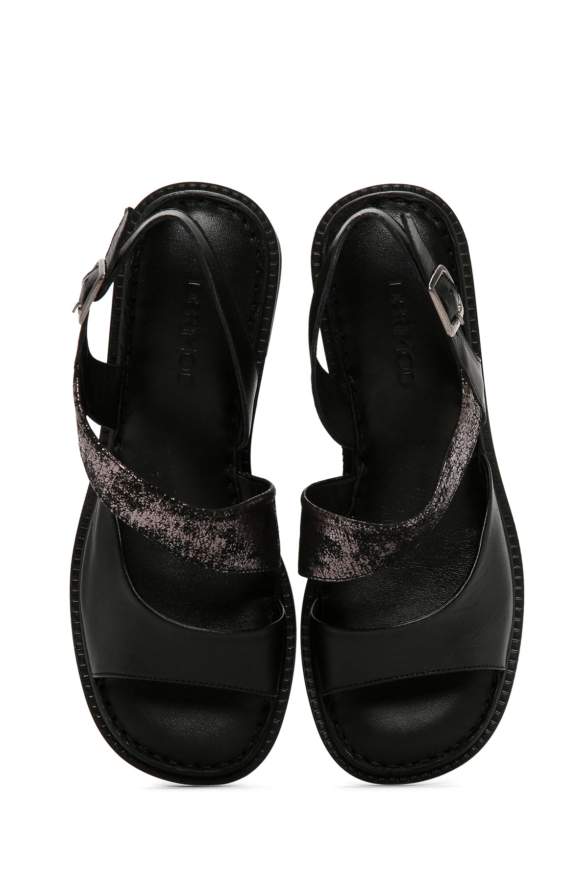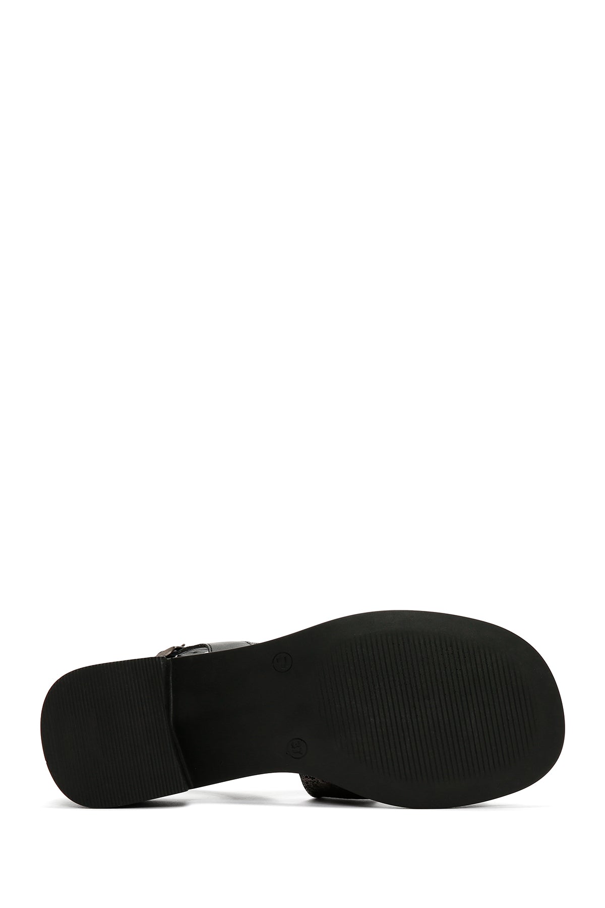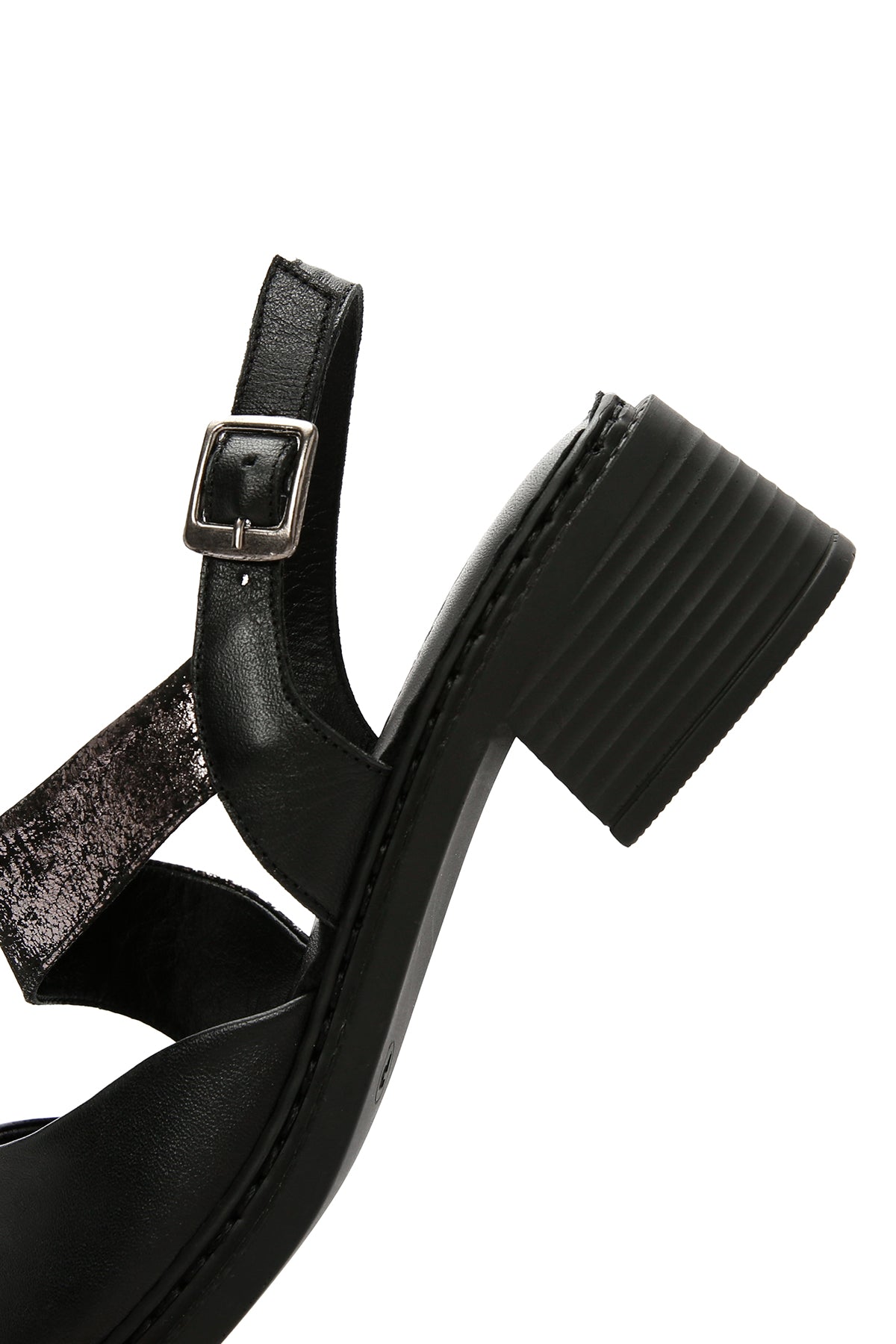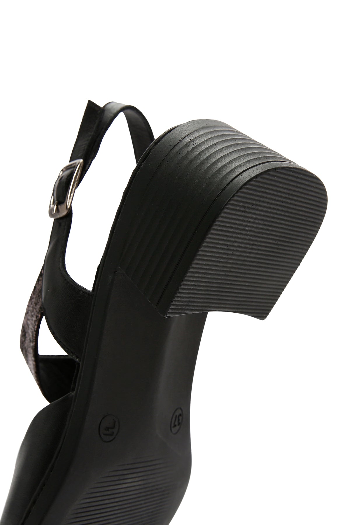 Kadın Siyah Kalın Kısa Topuklu Bilekten Bantlı Deri Sandalet