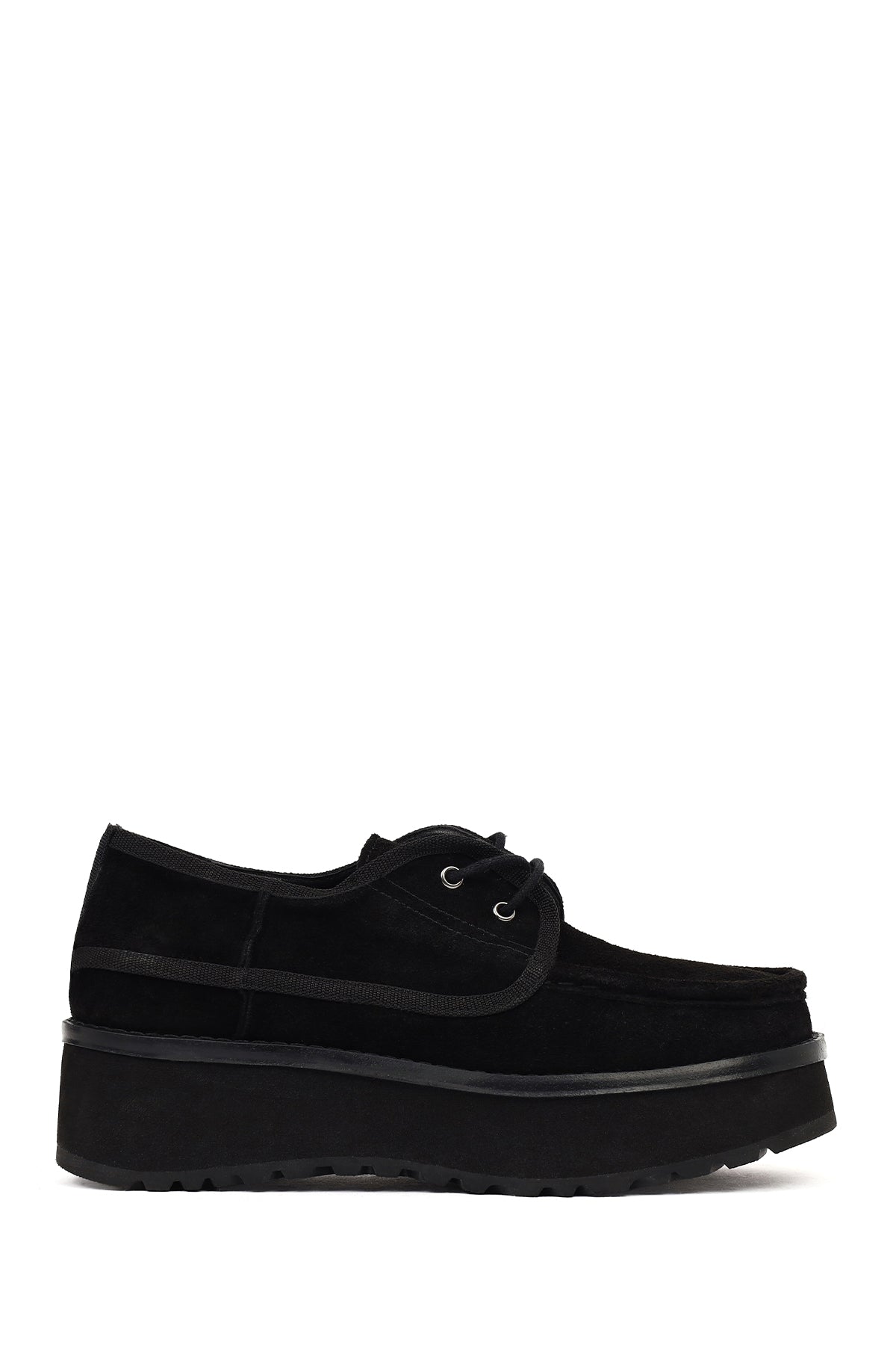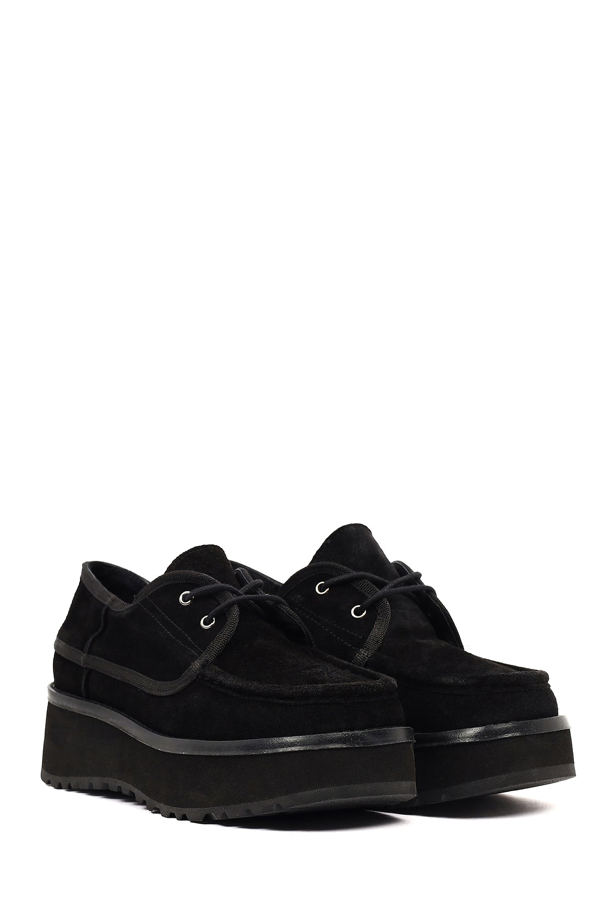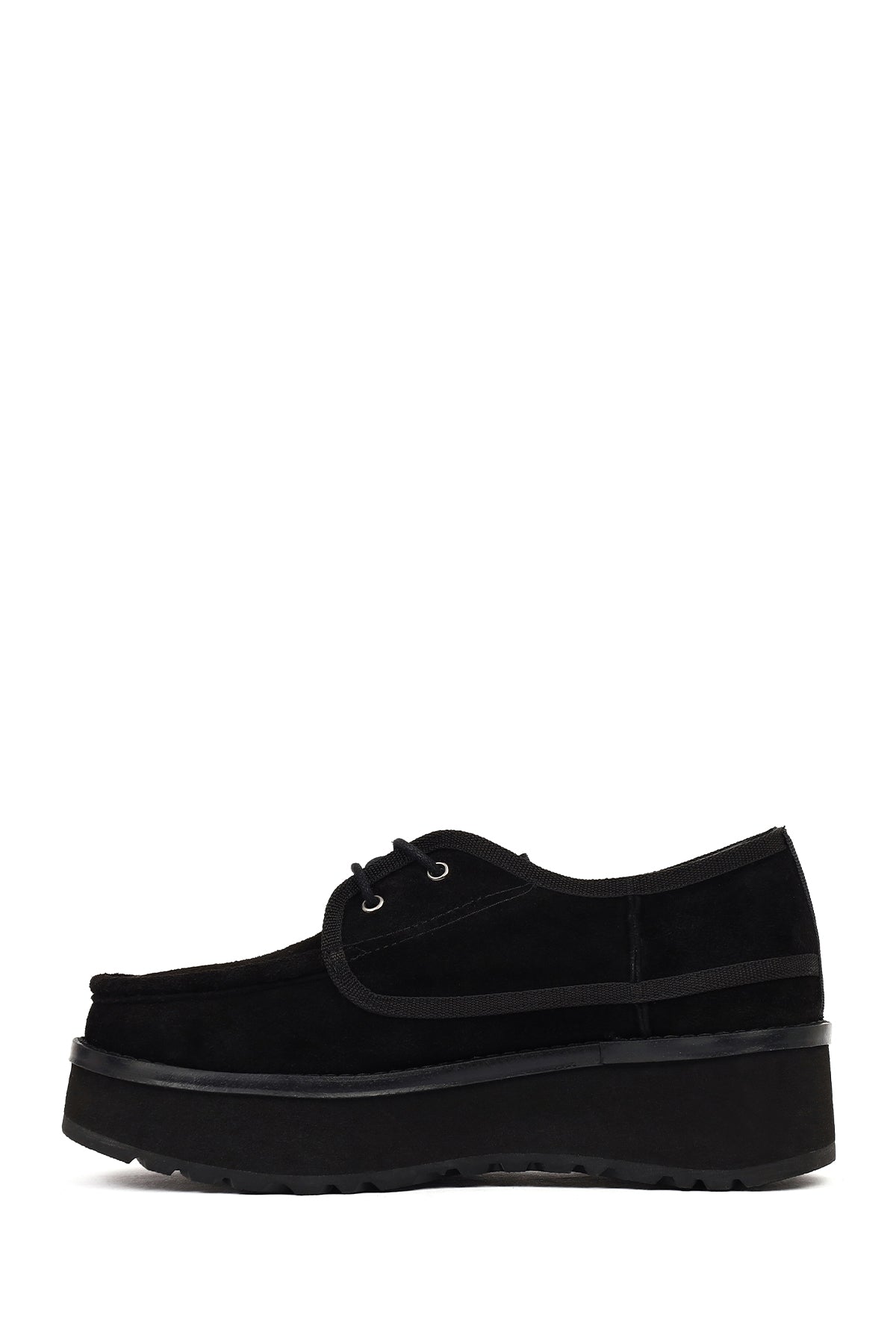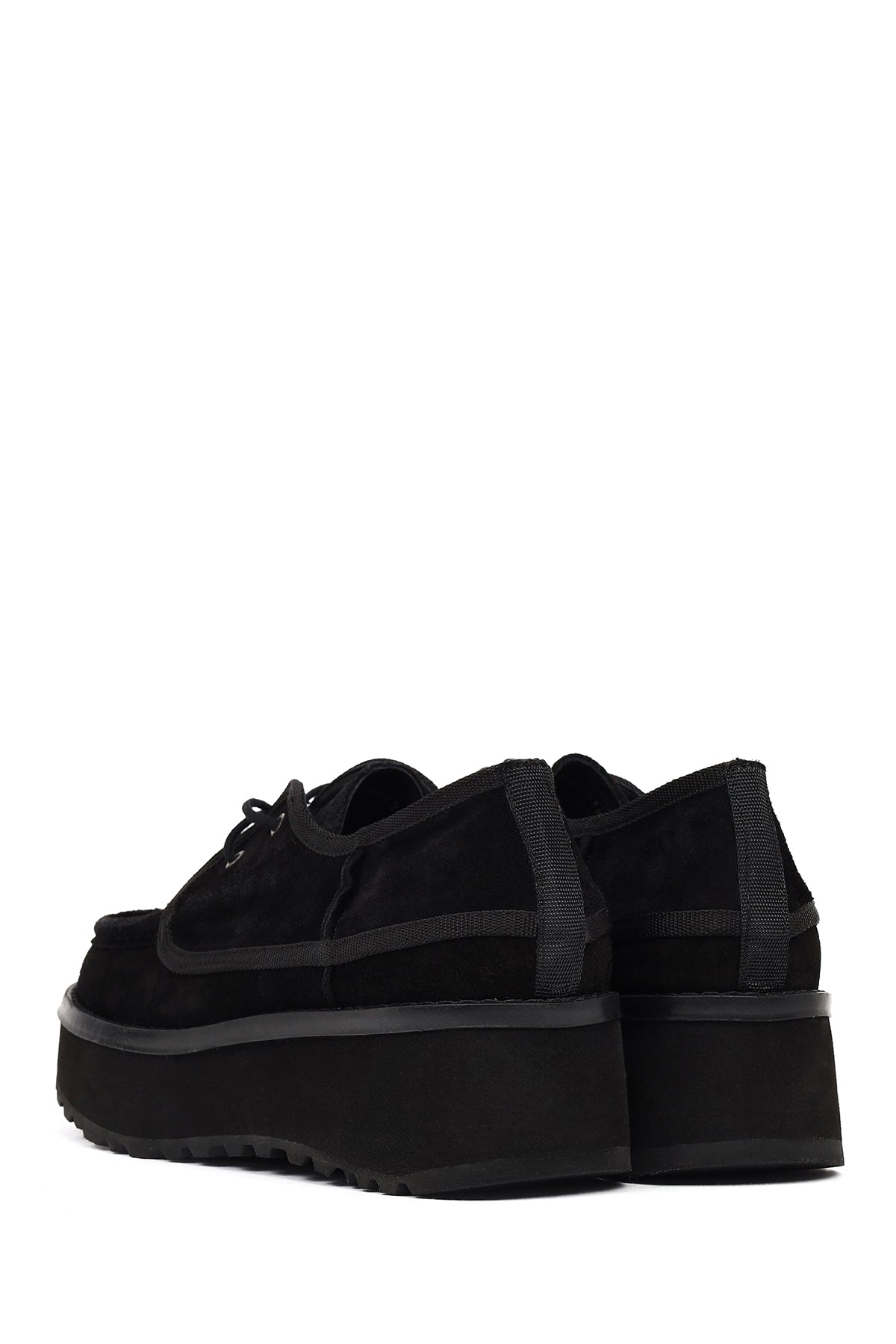Kadın Siyah Kalın Tabanlı Bağcıklı Süet Deri Teddy Casual Ayakkabı