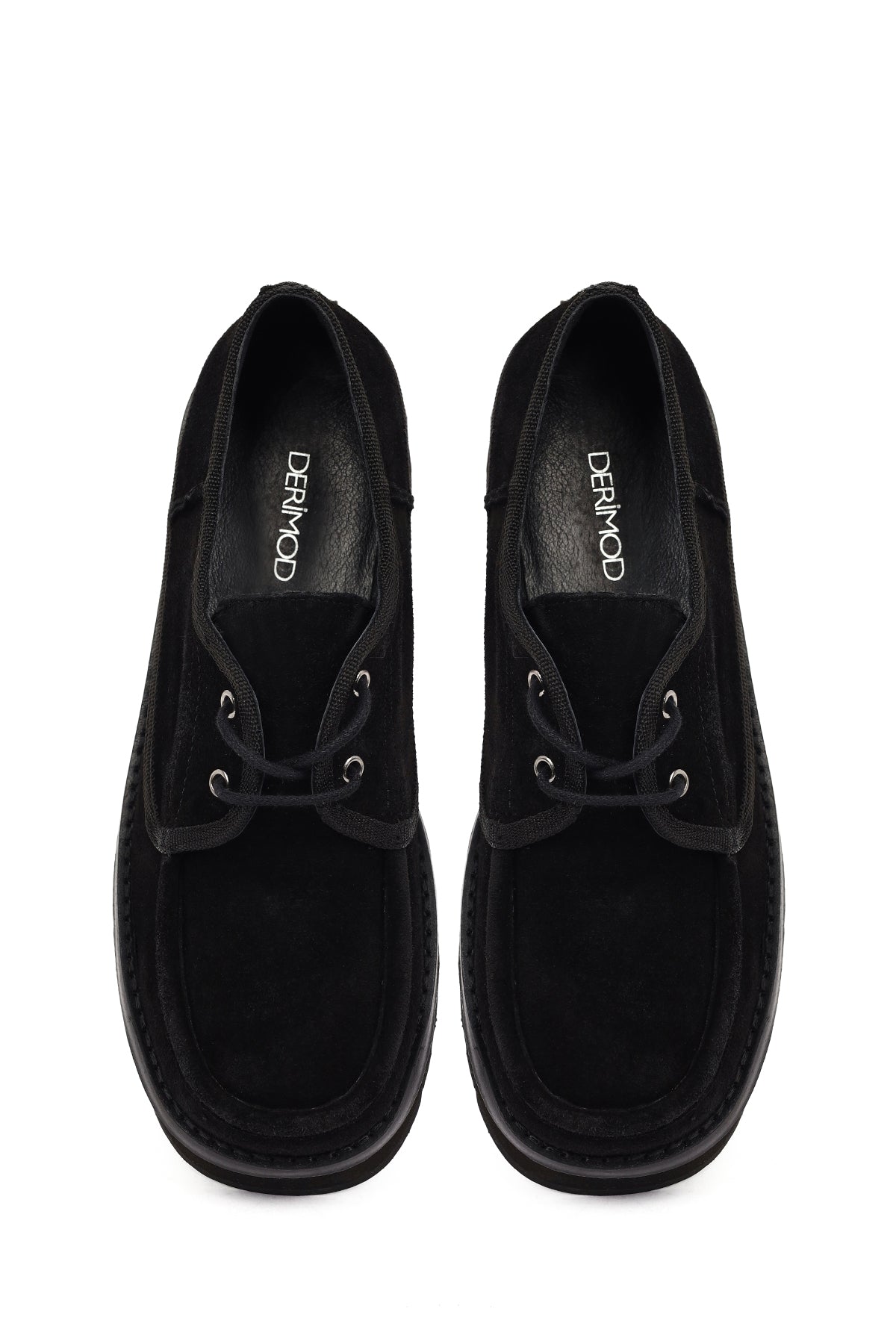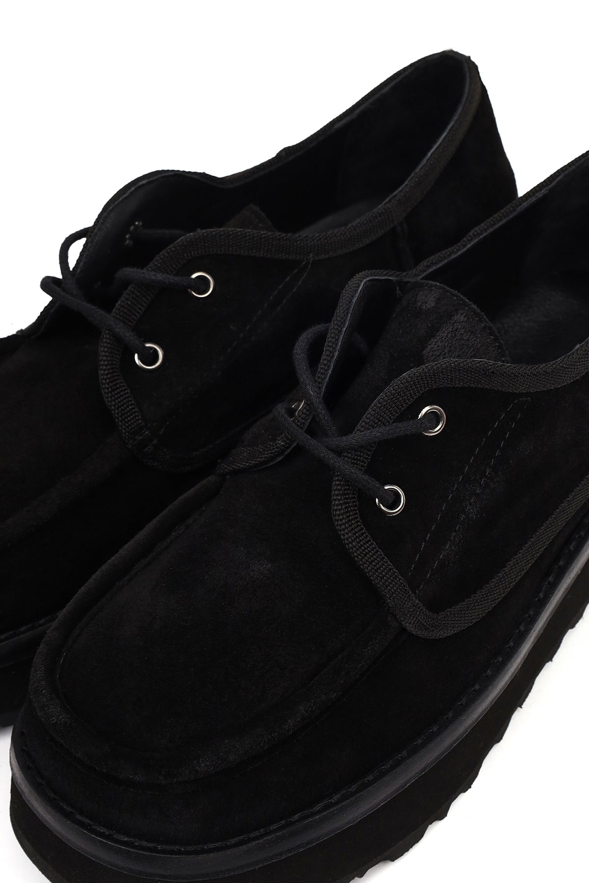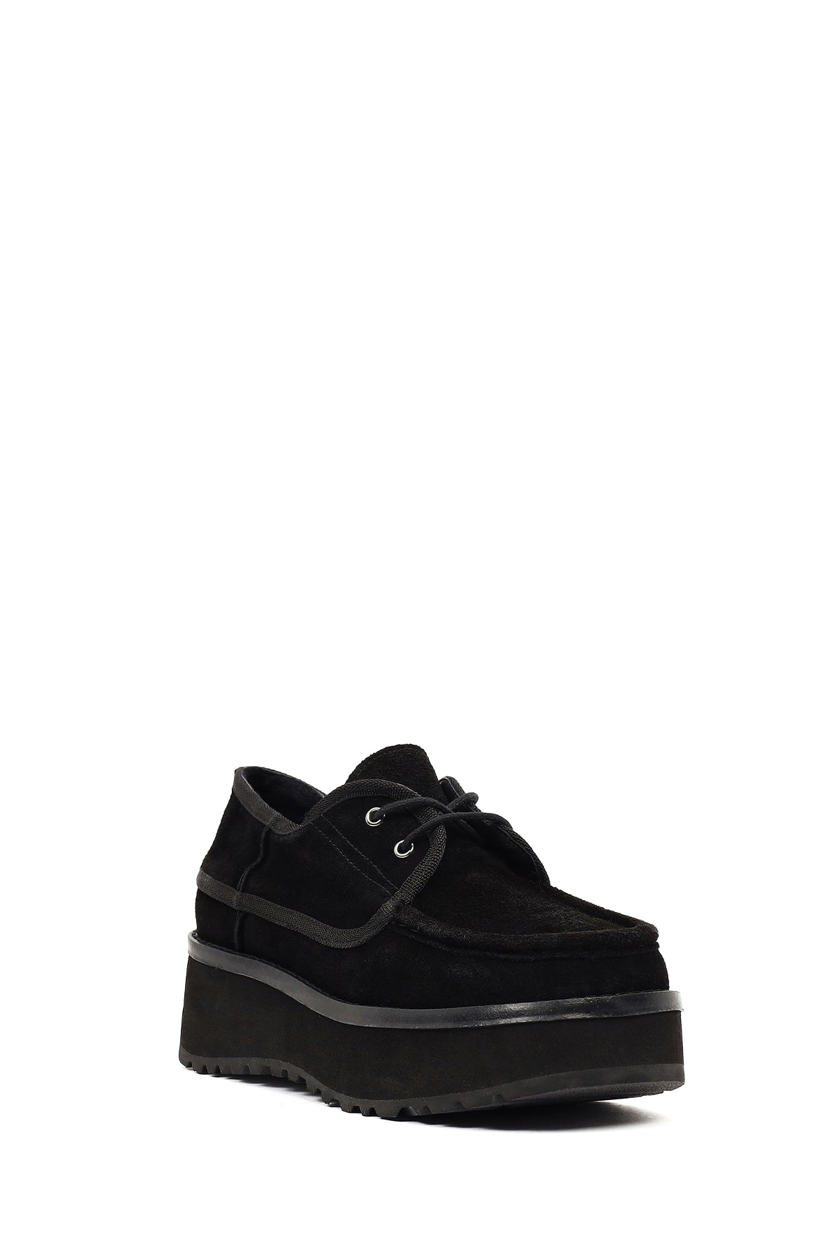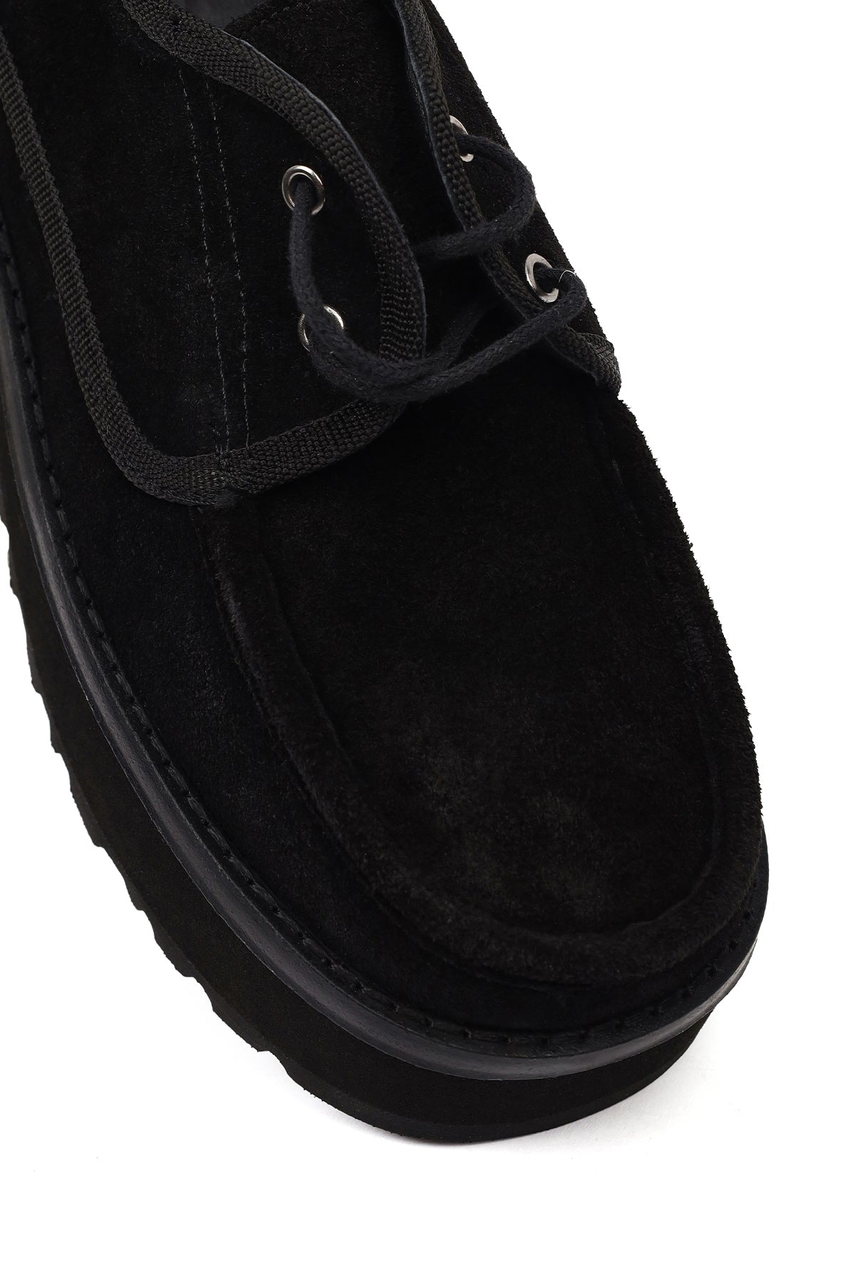 Kadın Siyah Kalın Tabanlı Bağcıklı Süet Deri Teddy Casual Ayakkabı