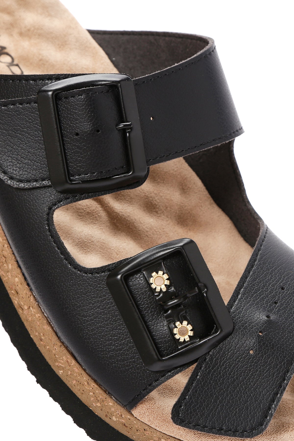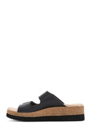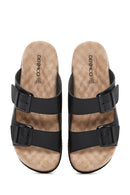 Kadın Siyah Kalın Tabanlı Çift Tokalı Comfort Terlik