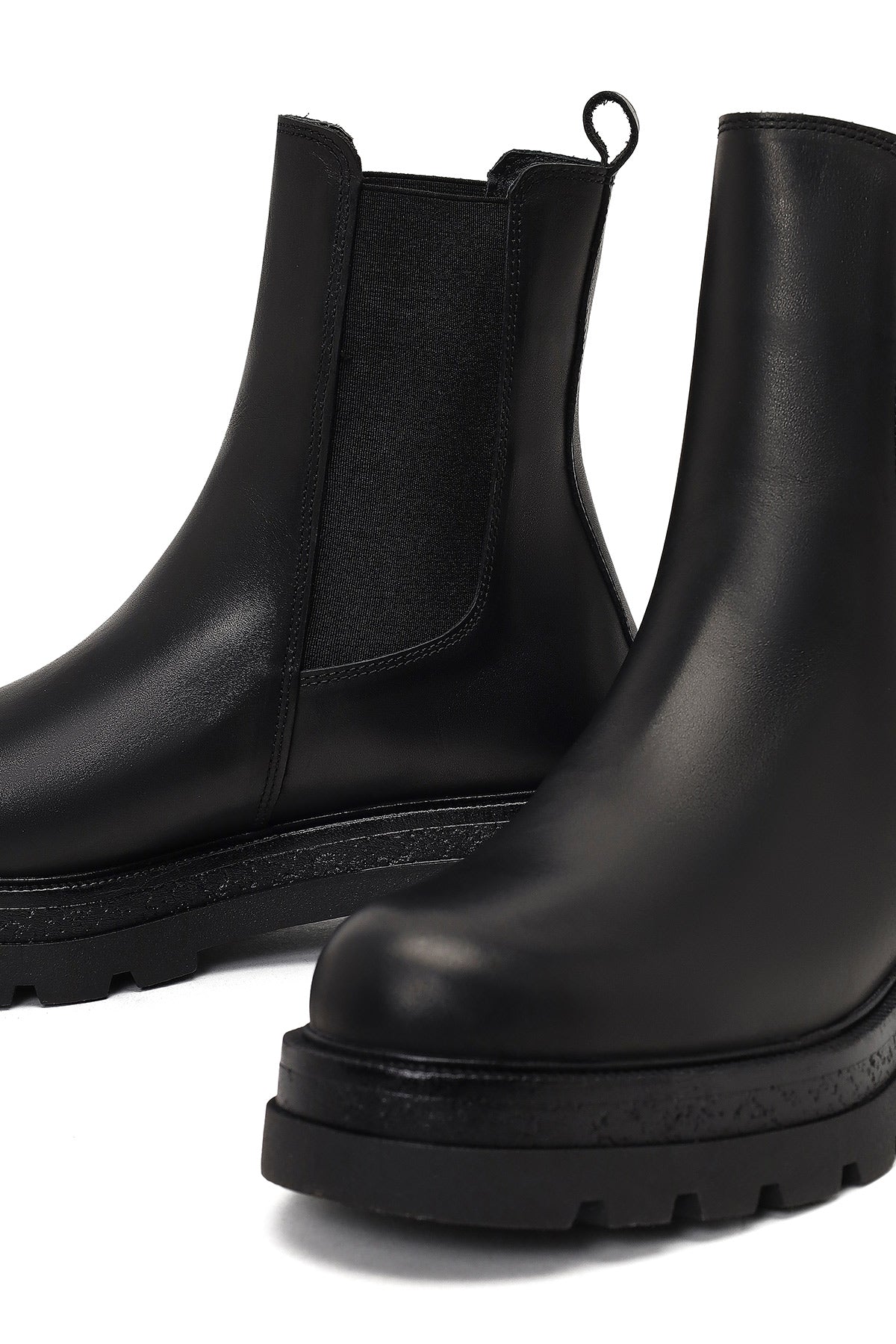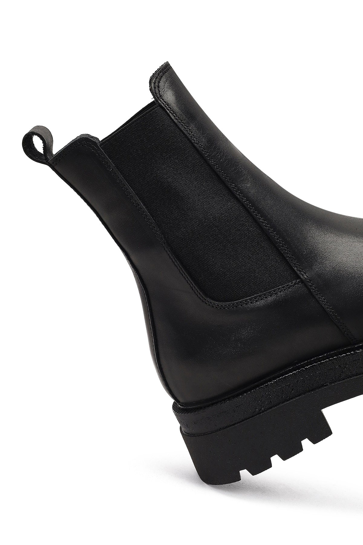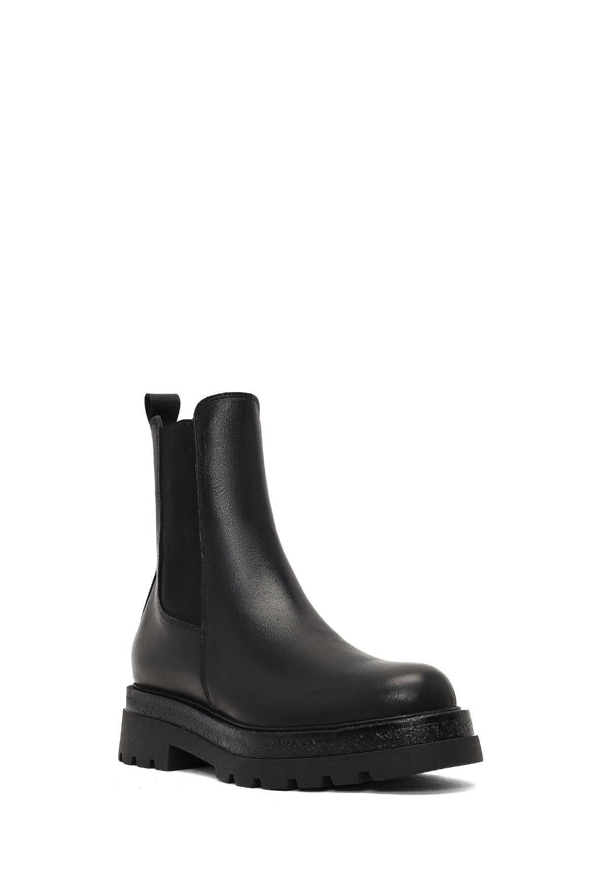 Kış koleksiyonunun modern chelsea bot modeli, siyah vidala deri üst yüzeyi ve kalın tabanlı tasarımıyla dikkat çekiyor. Deri astar kullanımı ayağın nefes almasını sağlarken, 2,5 cm yüksekliğindeki taban günlük kullanım için ideal. Klasik chelsea bot kesimi ve yanlardaki elastik detayları ile kolay giyim sağlıyor. Özellikle sonbahar ve kış aylarında, hem casual hem şık giyim kombinleriyle mükemmel uyum sağlıyor. Kullanım alanları: Ofis ortamı, günlük aktiviteler ve şehir gezmeleri için ideal. Ürün kodu: 25WFD187318
