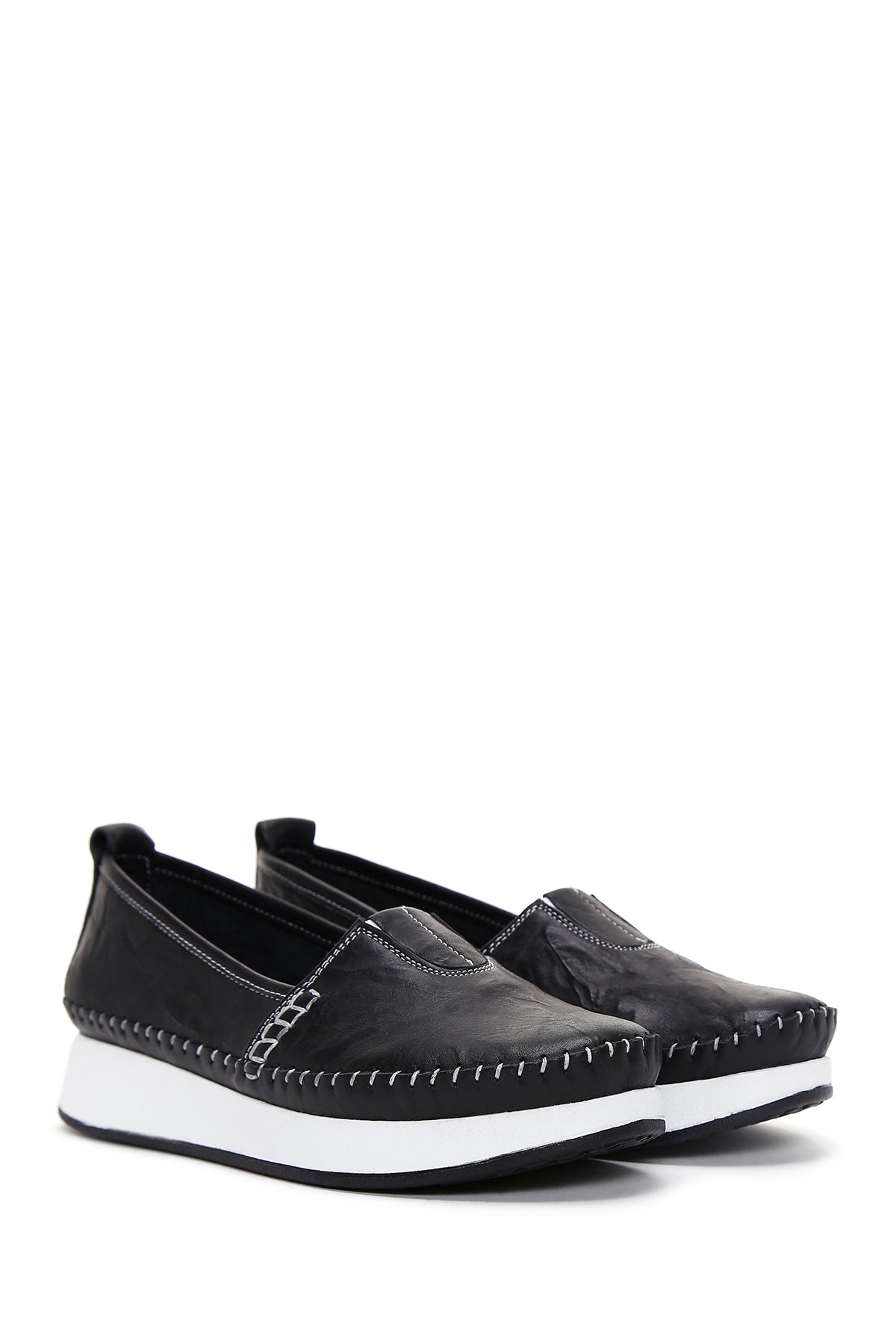 Kadın Siyah Kalın Tabanlı Deri Comfort Loafer