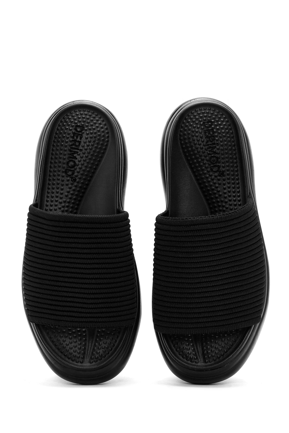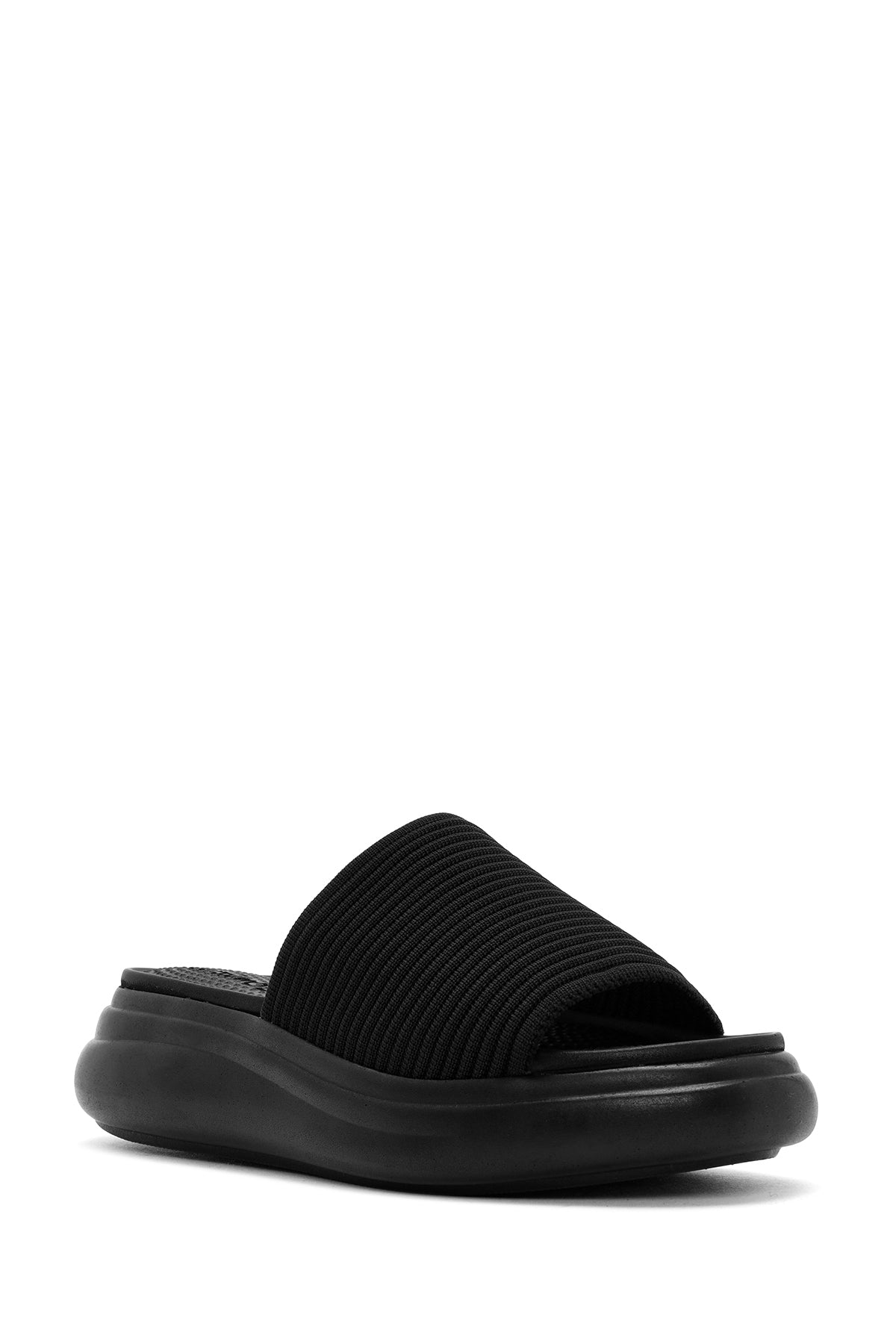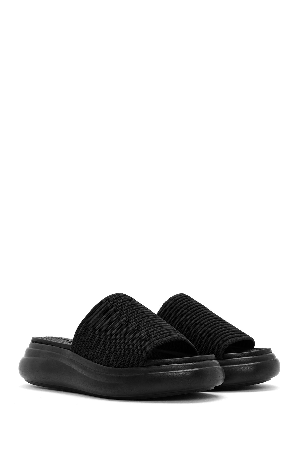 Kadın Siyah Kalın Tabanlı Kumaş Terlik
