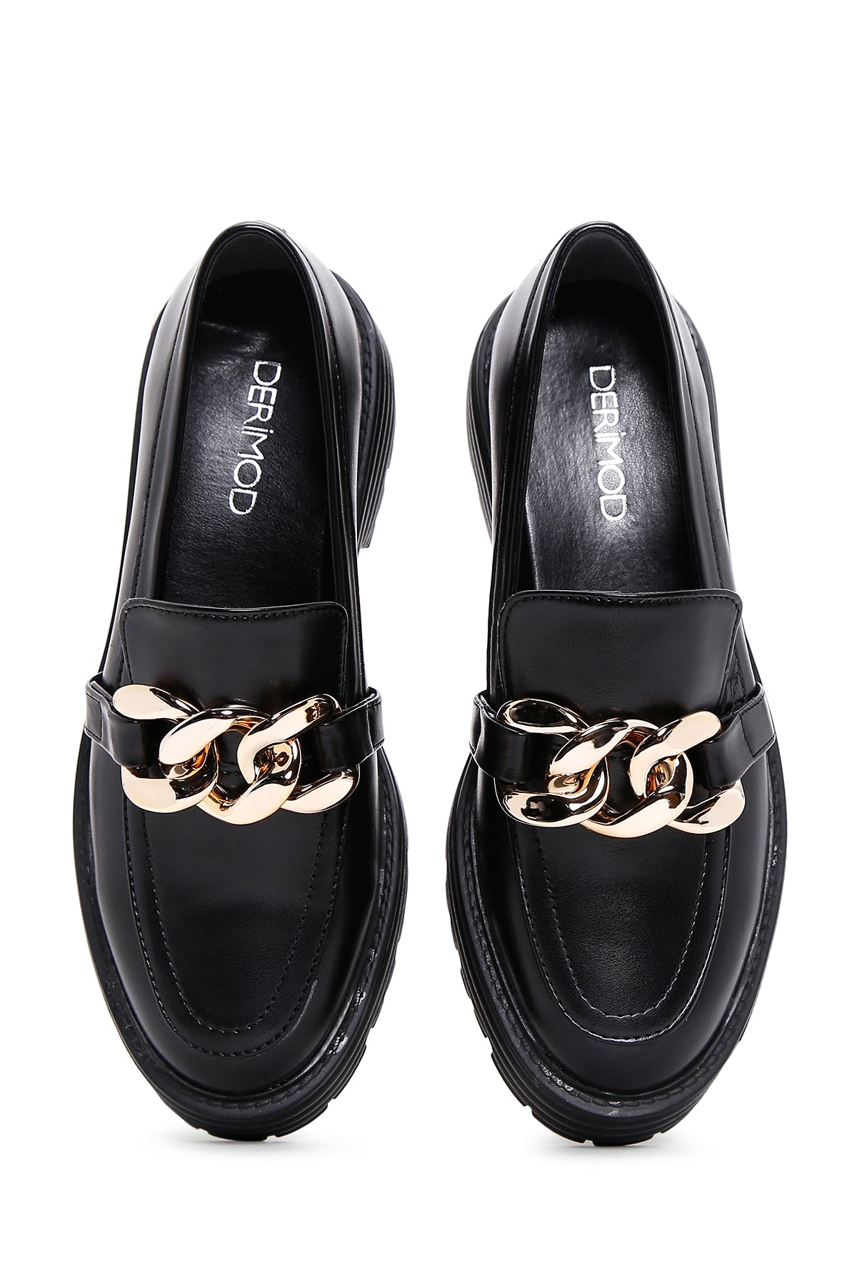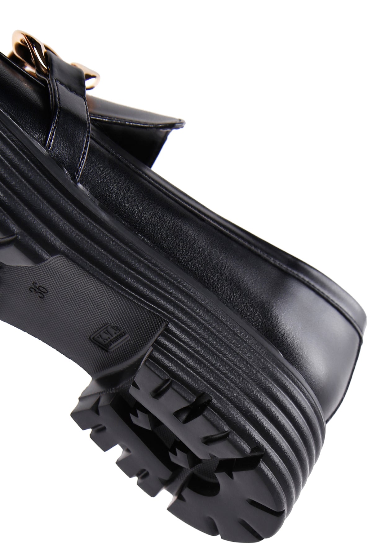 Kadın Siyah Kalın Tabanlı Maskülen Loafer