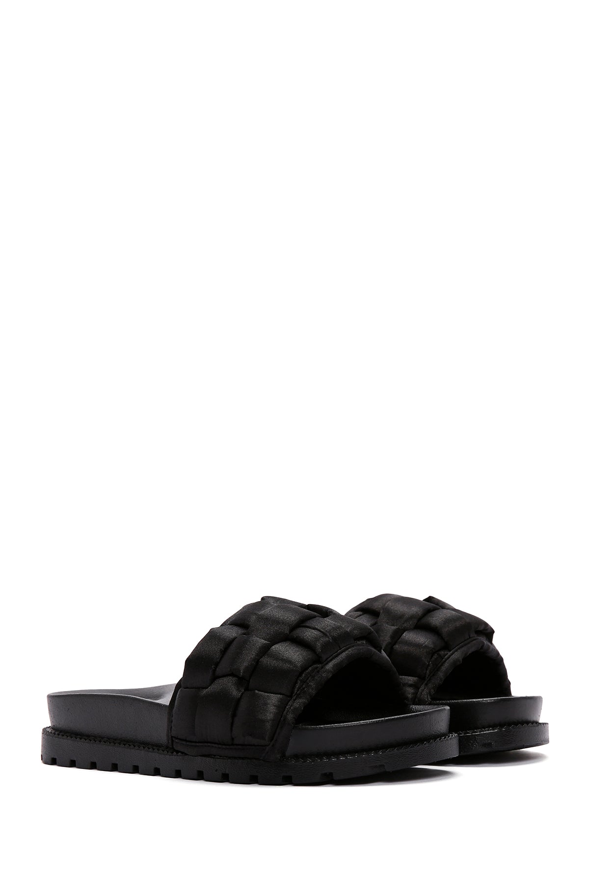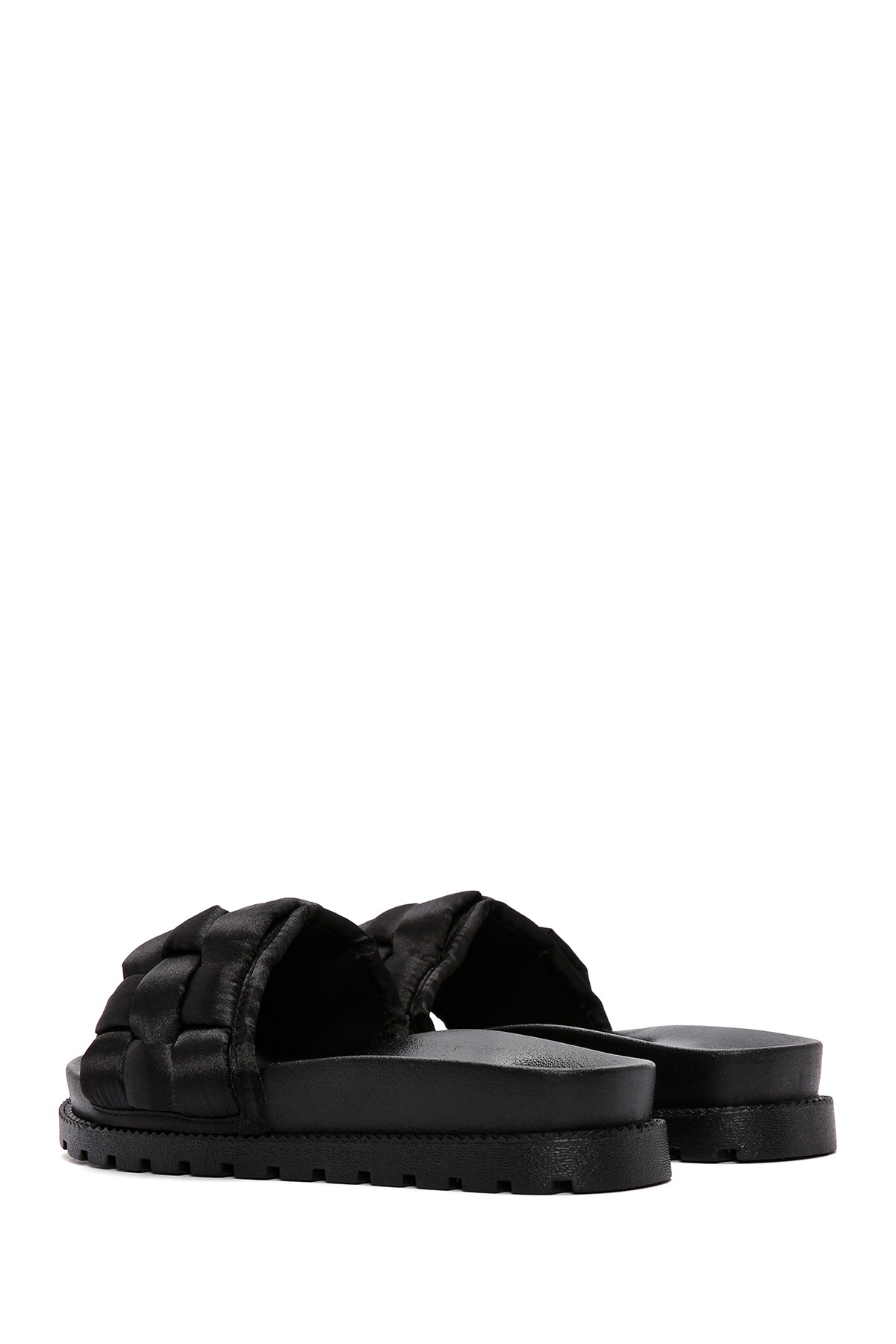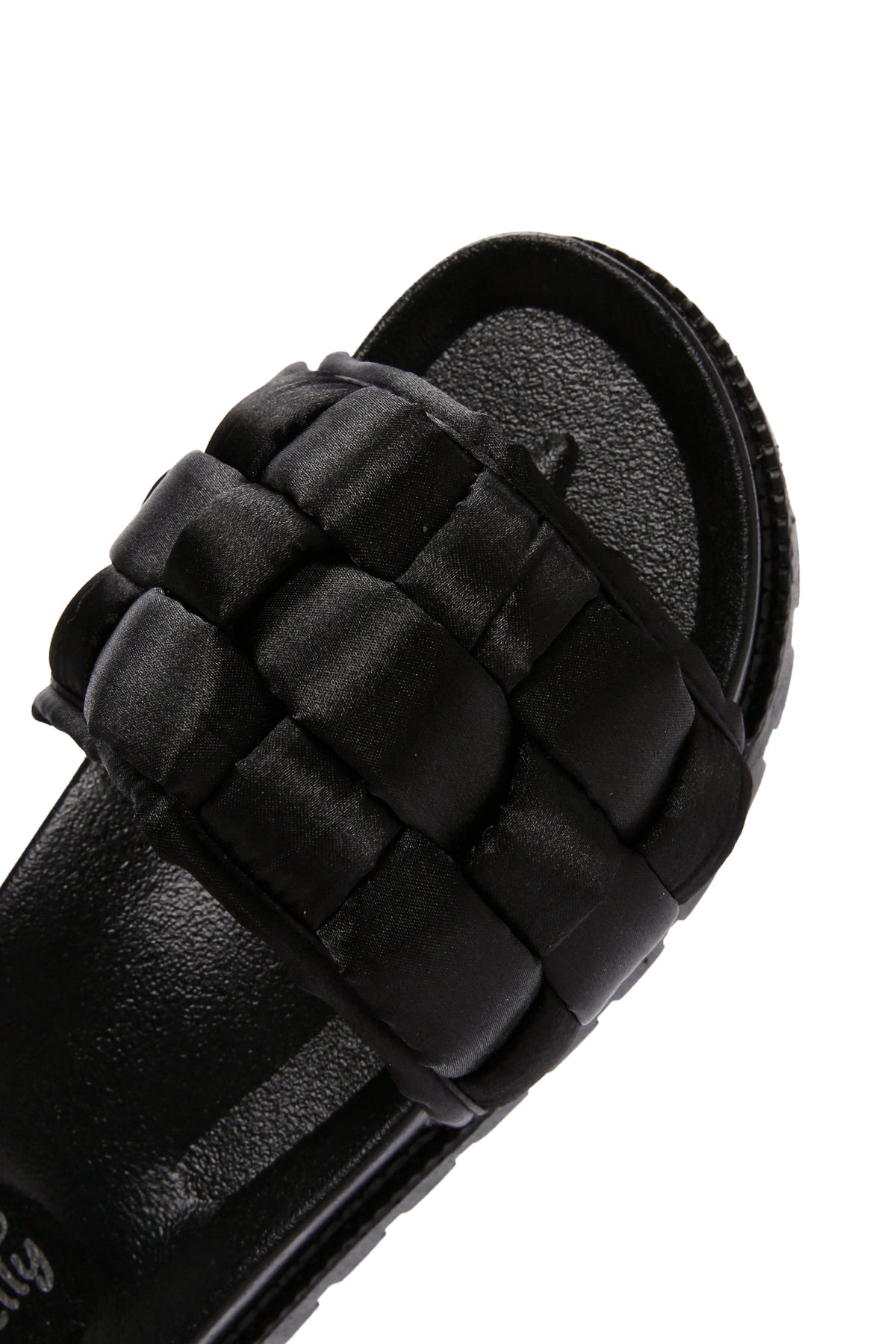 Kadın Siyah Kalın Tabanlı Örgü Desenli Terlik