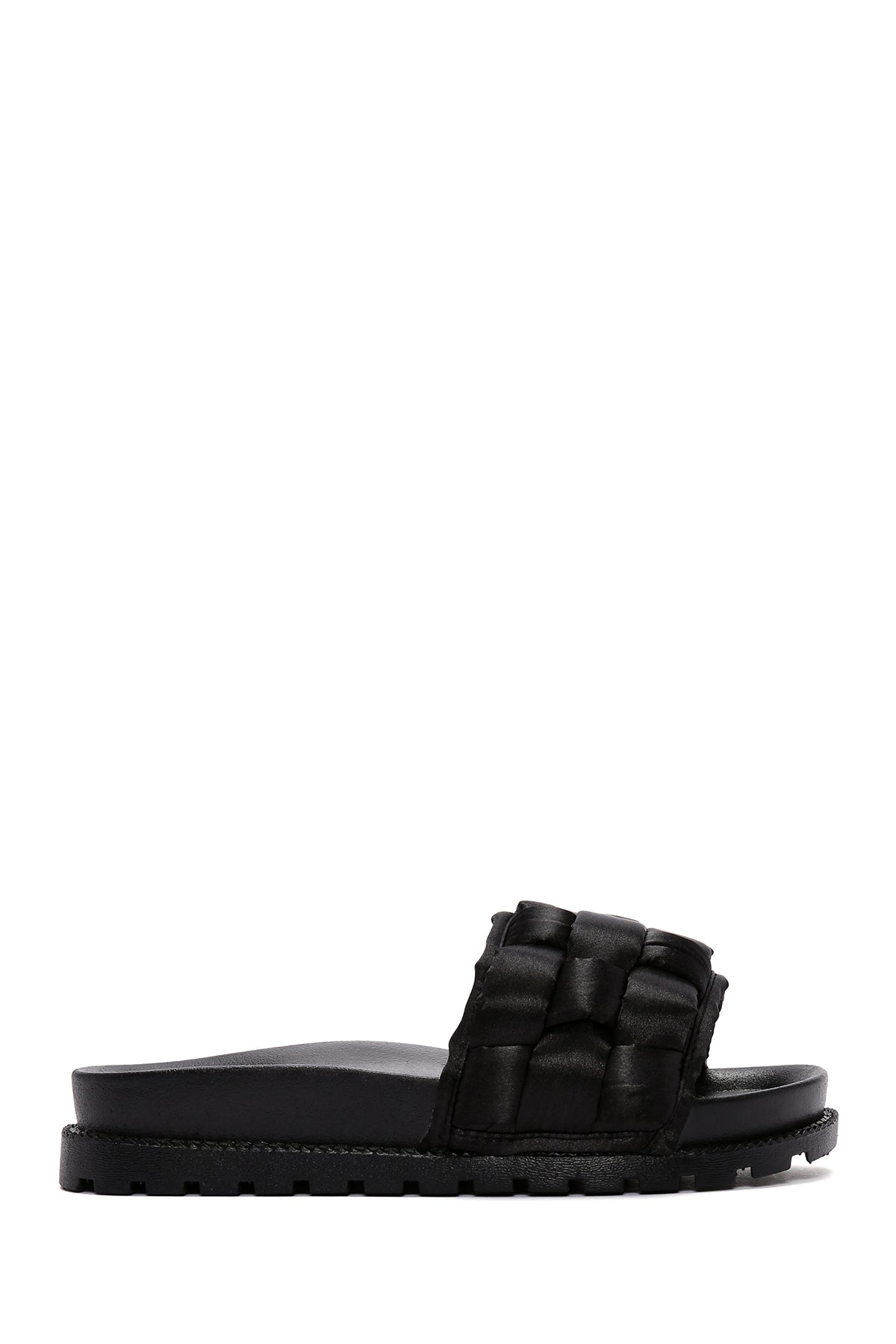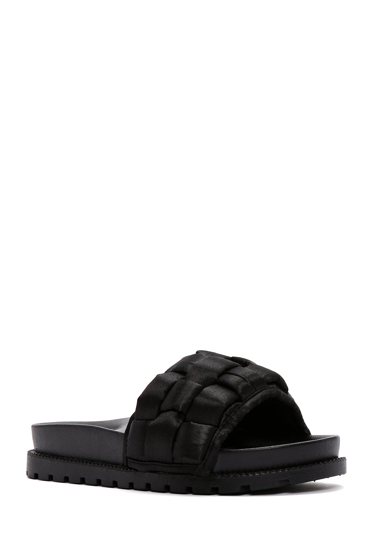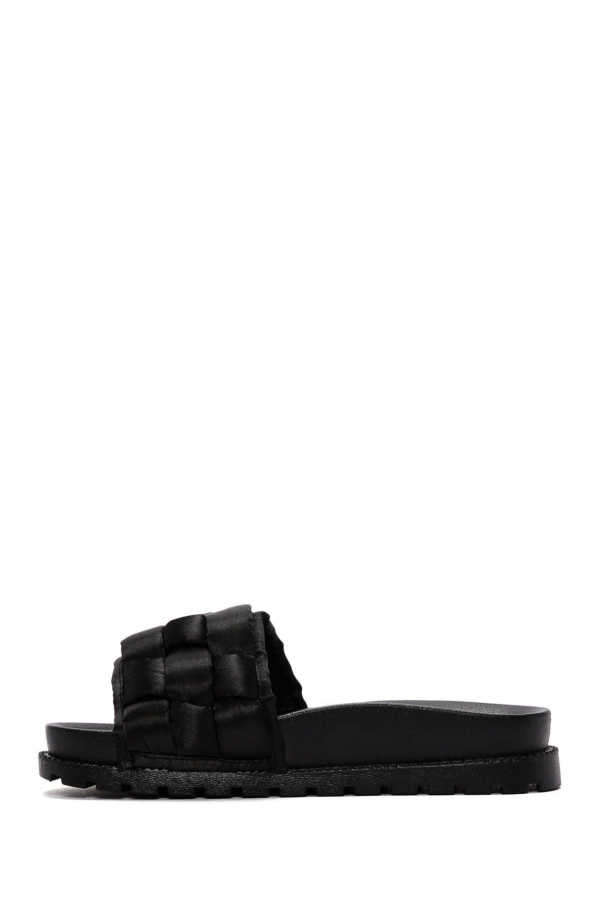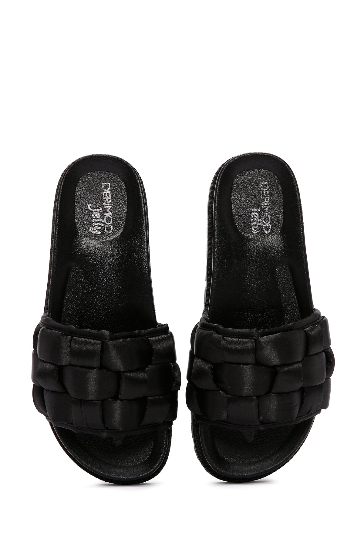 Kadın Siyah Kalın Tabanlı Örgü Desenli Terlik
