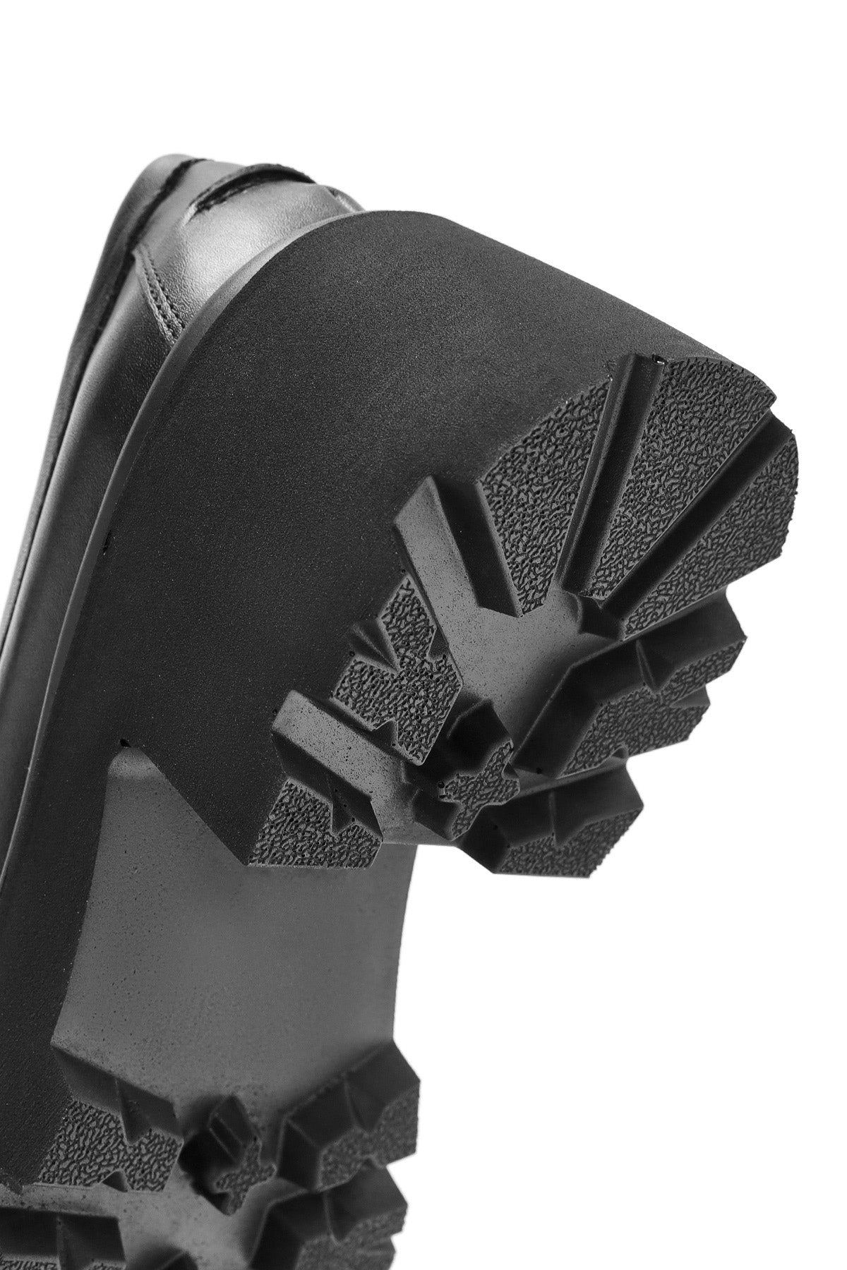 Kış koleksiyonunun modern maskülen loafer modeli, siyah vidala deri üst yüzeyi ve kalın platform tabanıyla dikkat çekiyor. Tekstil astar kullanımı ayağın nefes almasını sağlarken, 4 cm yüksekliğindeki taban şık bir görünüm sunuyor. Maskülen çizgileri ve platform tabanlı tasarımı ile günlük kullanıma uygun. Özellikle sonbahar ve kış aylarında, hem casual hem şık giyim kombinleriyle mükemmel uyum sağlıyor. Kullanım alanları: Ofis ortamı, günlük aktiviteler ve şehir gezmeleri için ideal. Ürün kodu: 24WFD201018