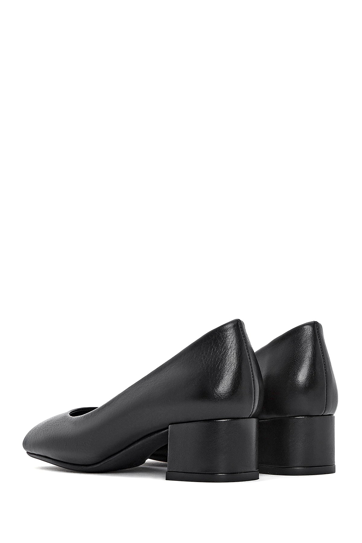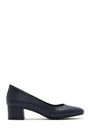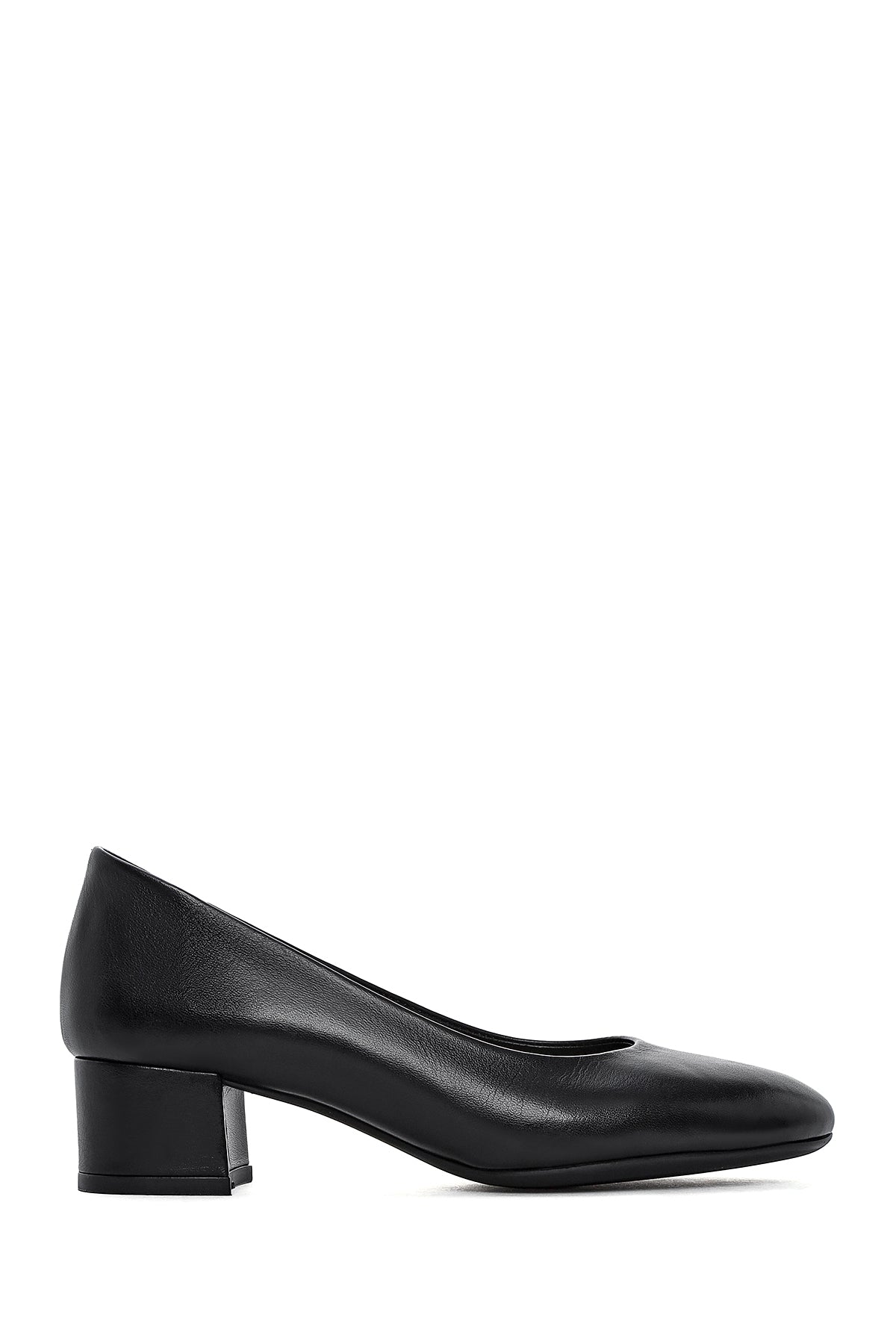 Kadın Siyah Kısa Kalın Topuklu Deri Ayakkabı