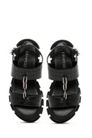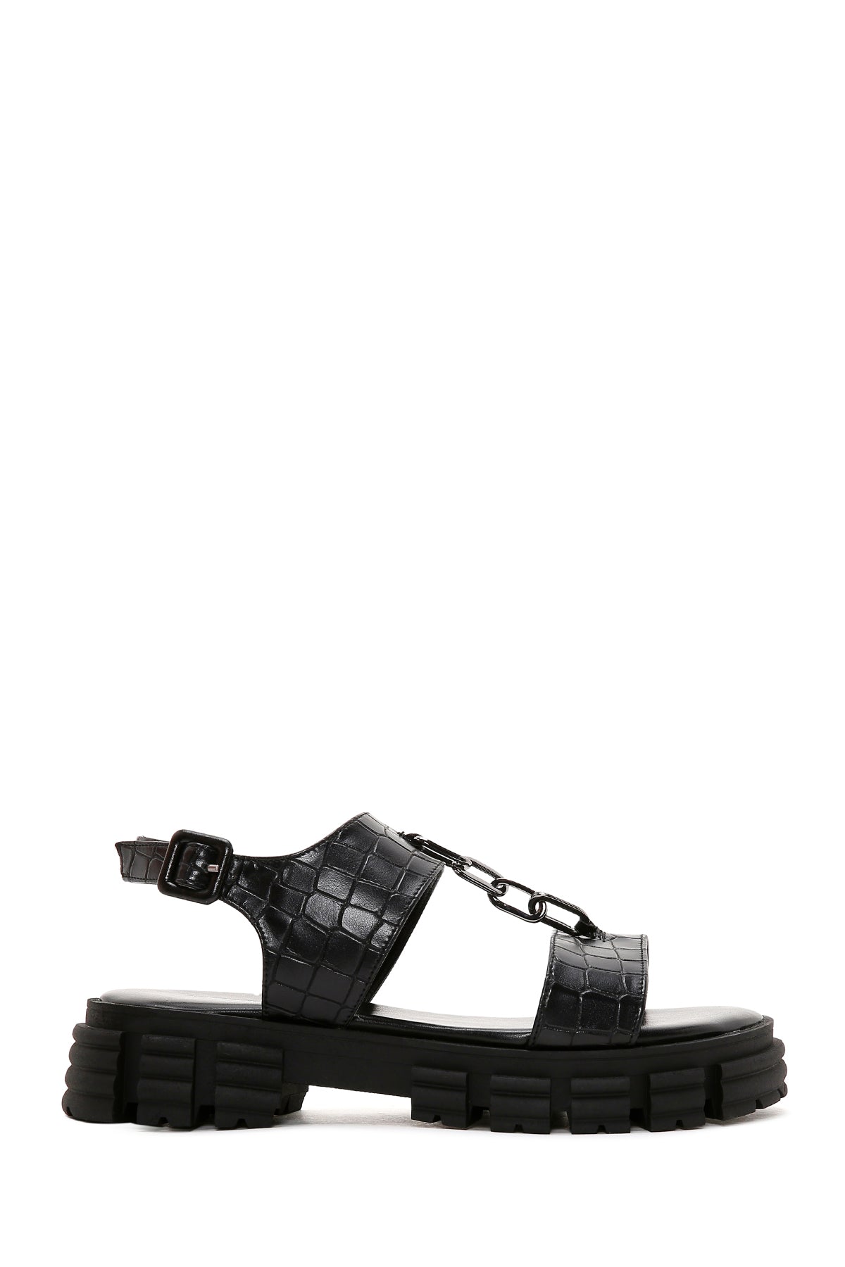 Derimod’un Zarif ve Şıklığı bir arada sunan Kadın Siyah Kroko Kalın Tabanlı Sandalet ile tarzınızı konuşturun. Ürünün kodu: 23SFE4008E3 11