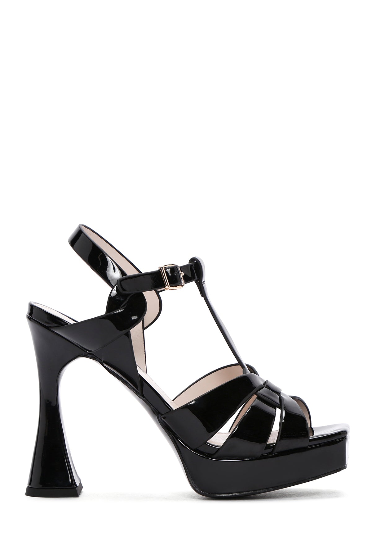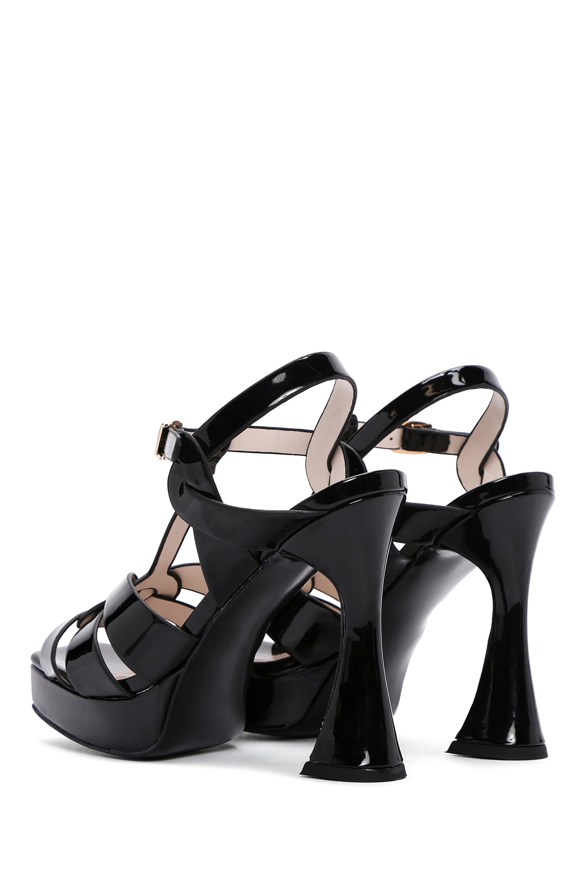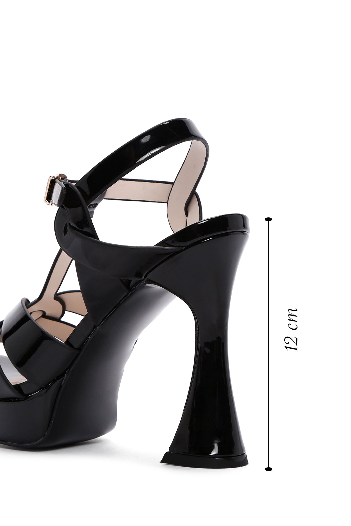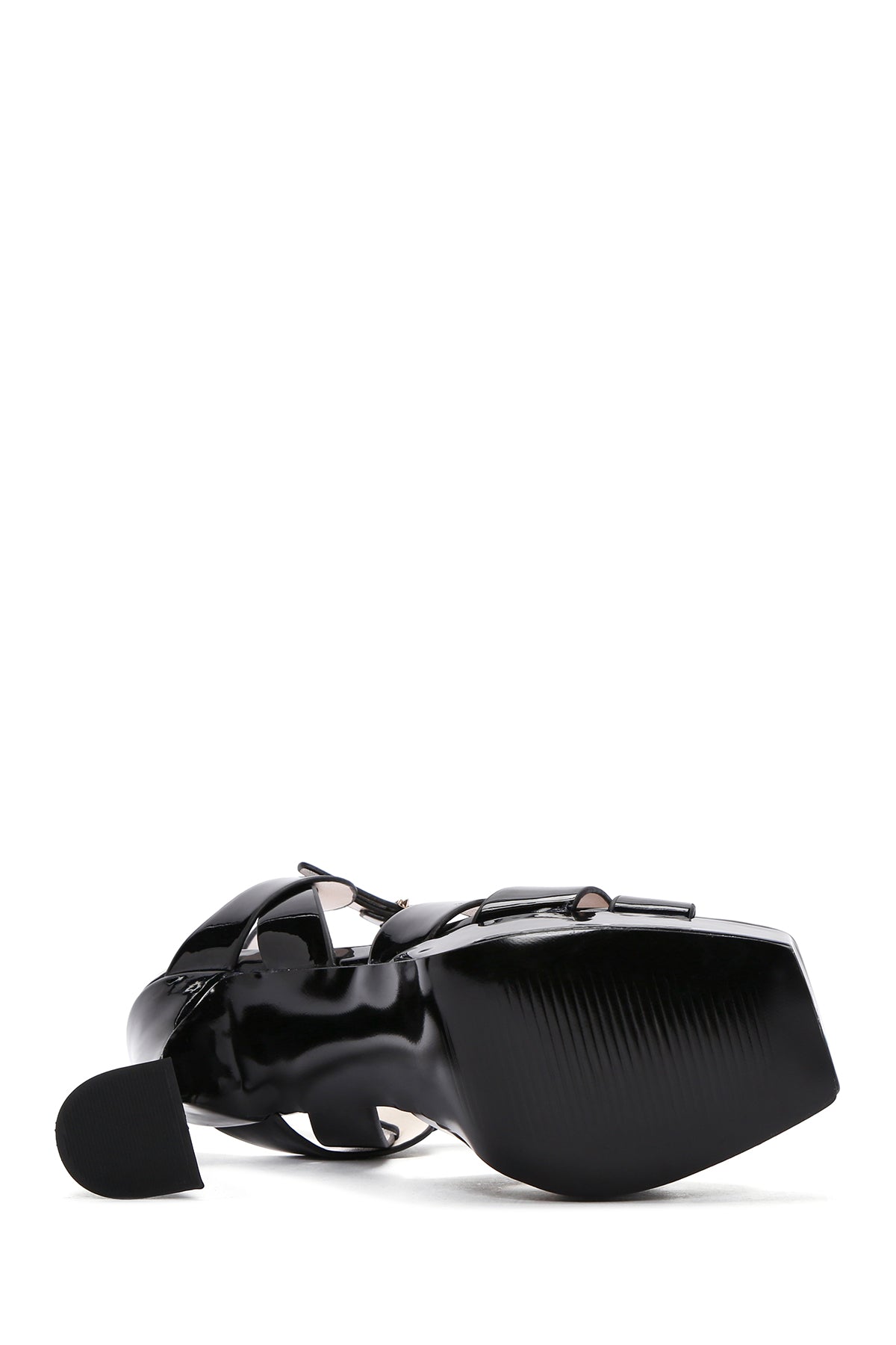 Kadın Siyah Platform Topuklu Bilekten Bantlı Sandalet