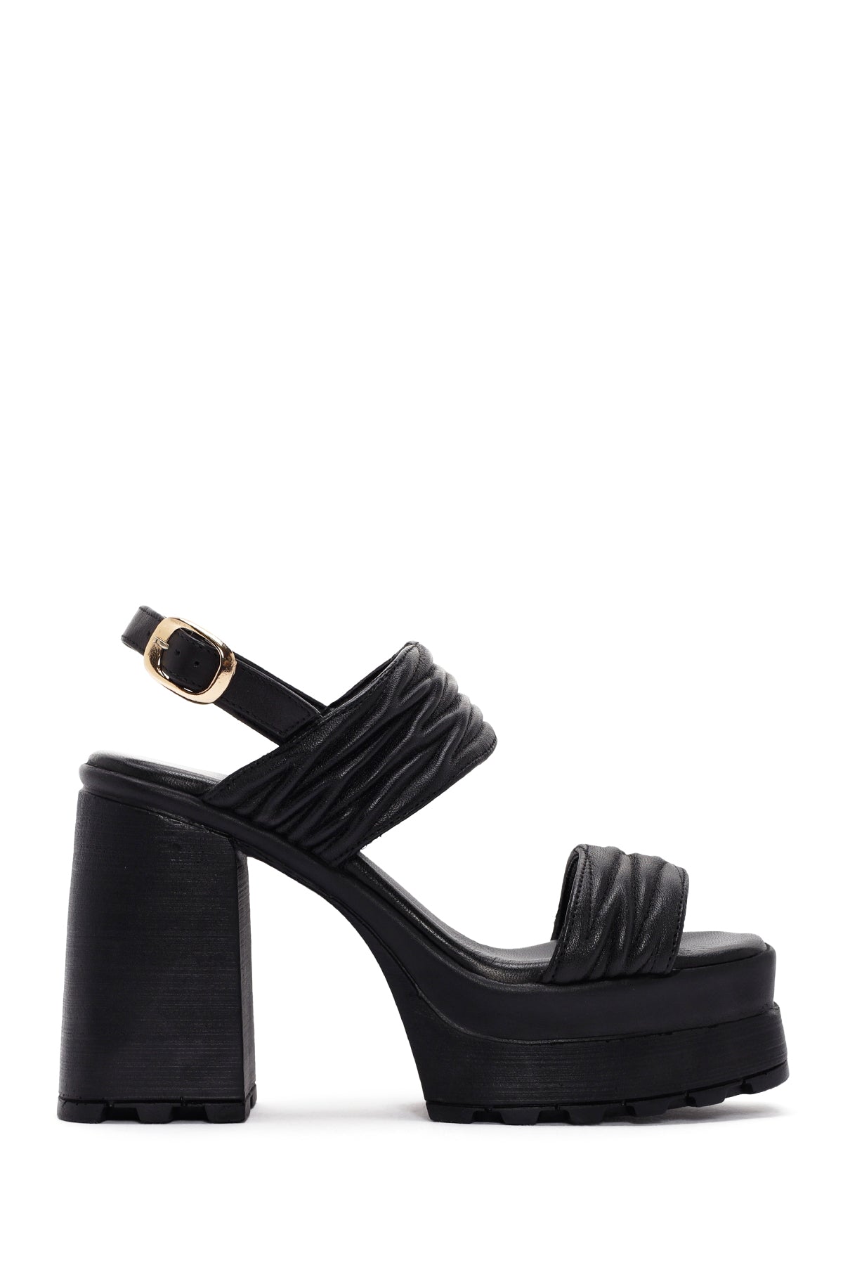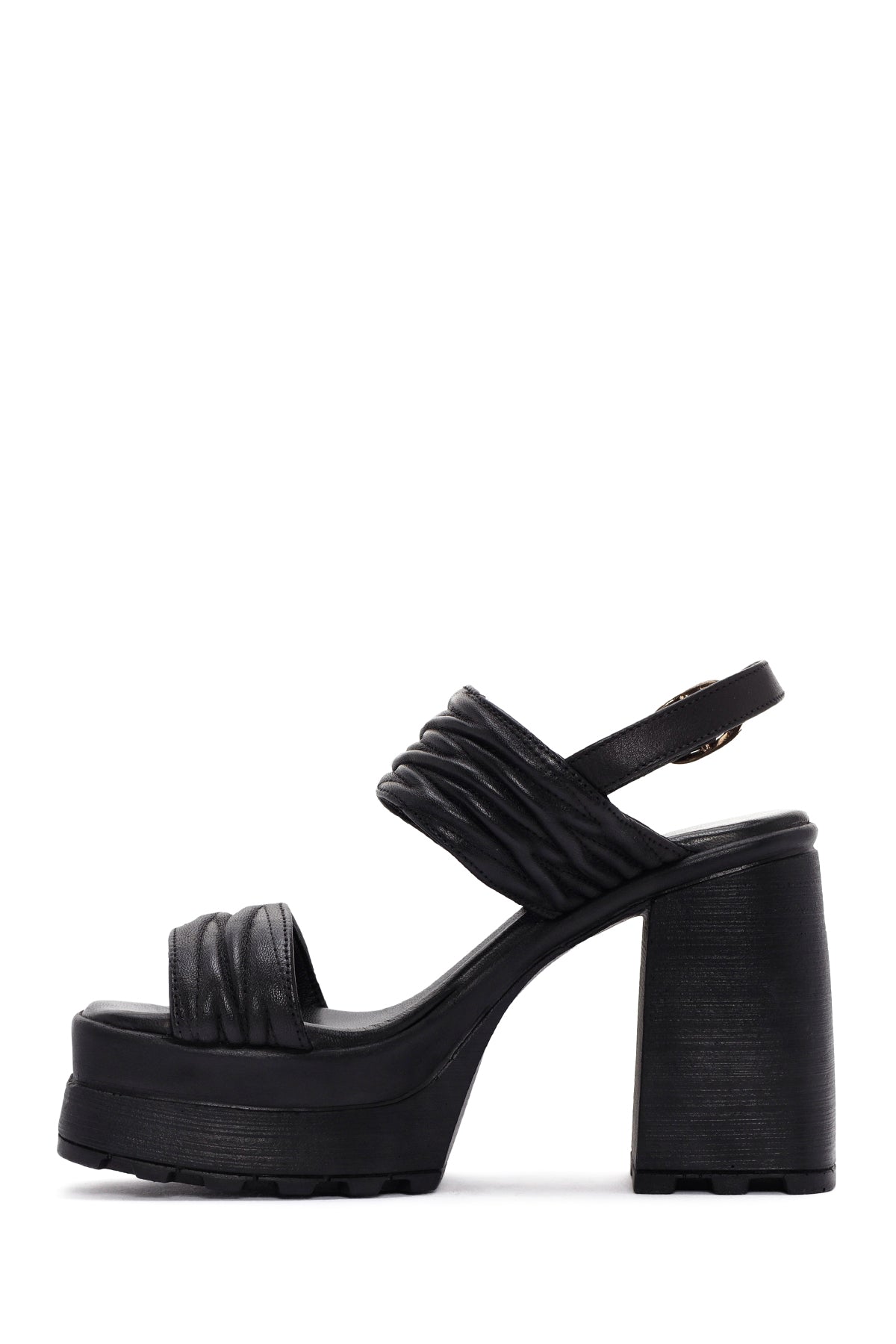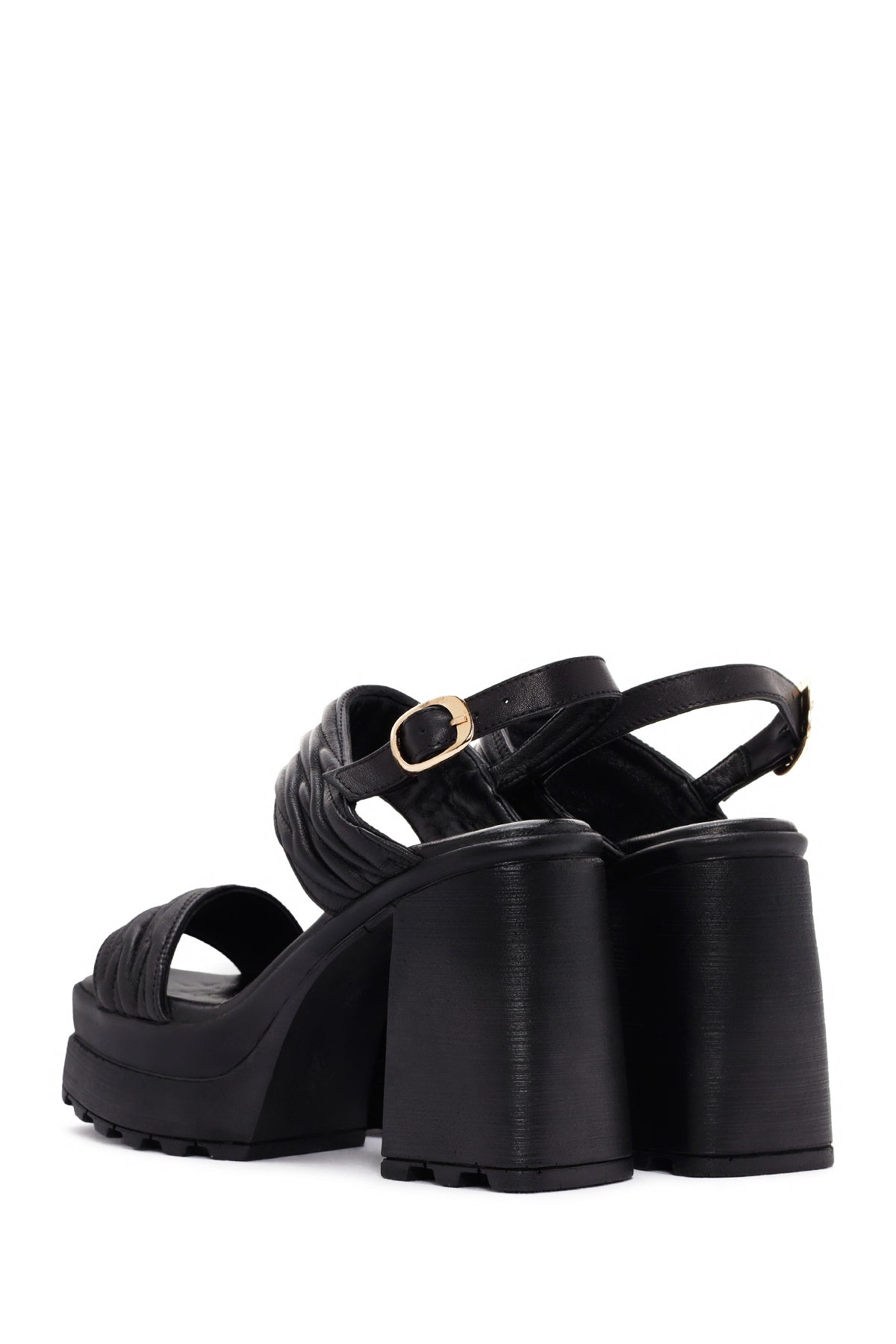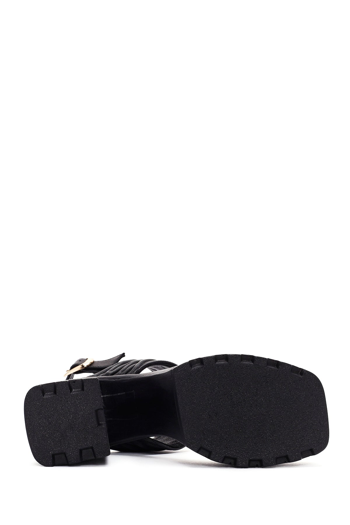 Kadın Siyah Platform Yüksek Topuklu Deri Sandalet