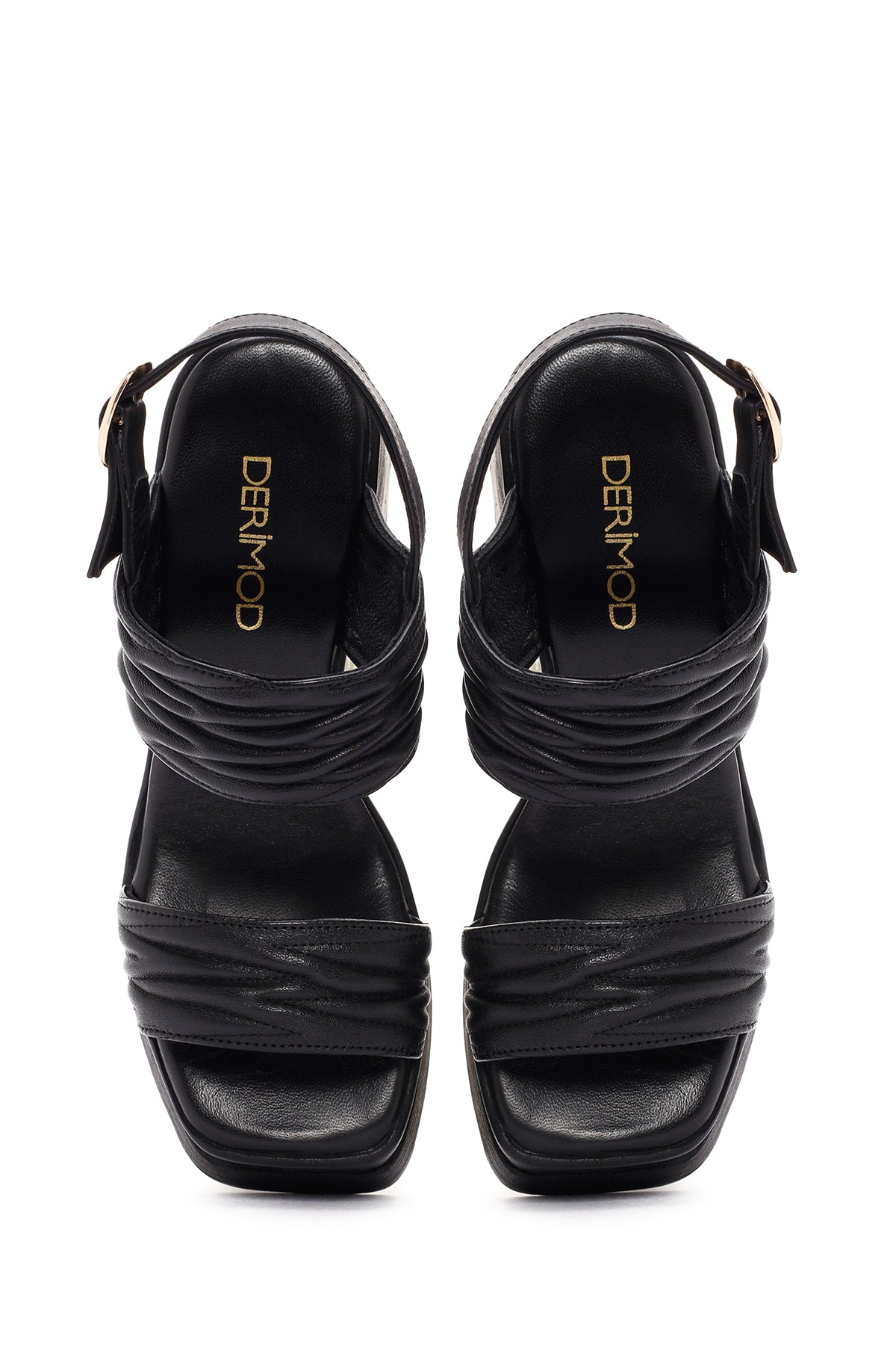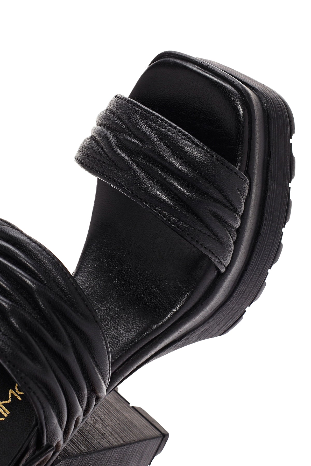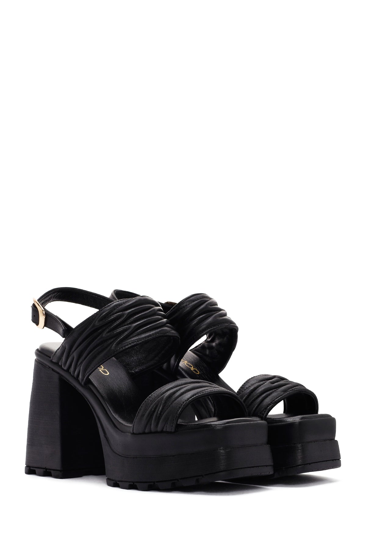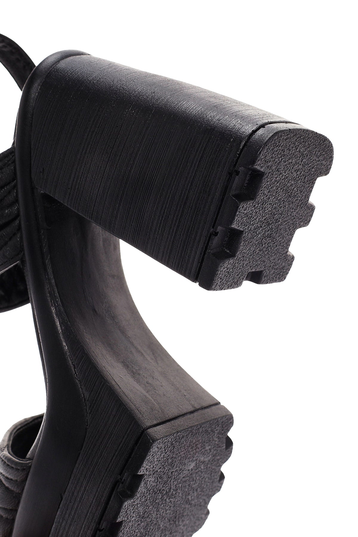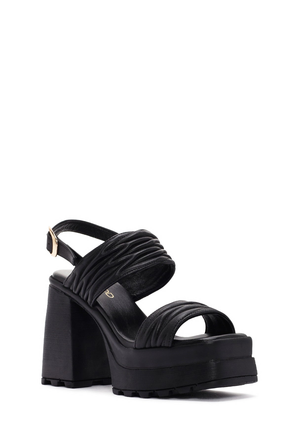 Kadın Siyah Platform Yüksek Topuklu Deri Sandalet