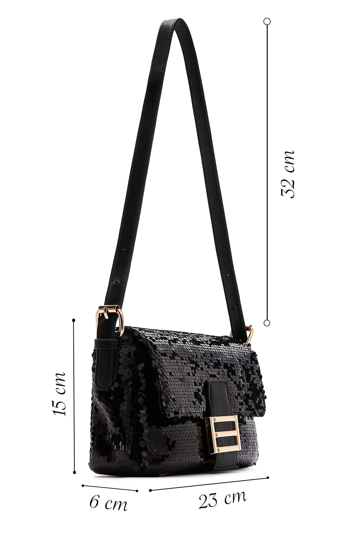 Derimod’un Zarif ve Şıklığı bir arada sunan Kadın Siyah Pullu Omuz Çantası ürünü ile tarzınızı konuşturun. Ürünün kodu: 23SBD276146 11
