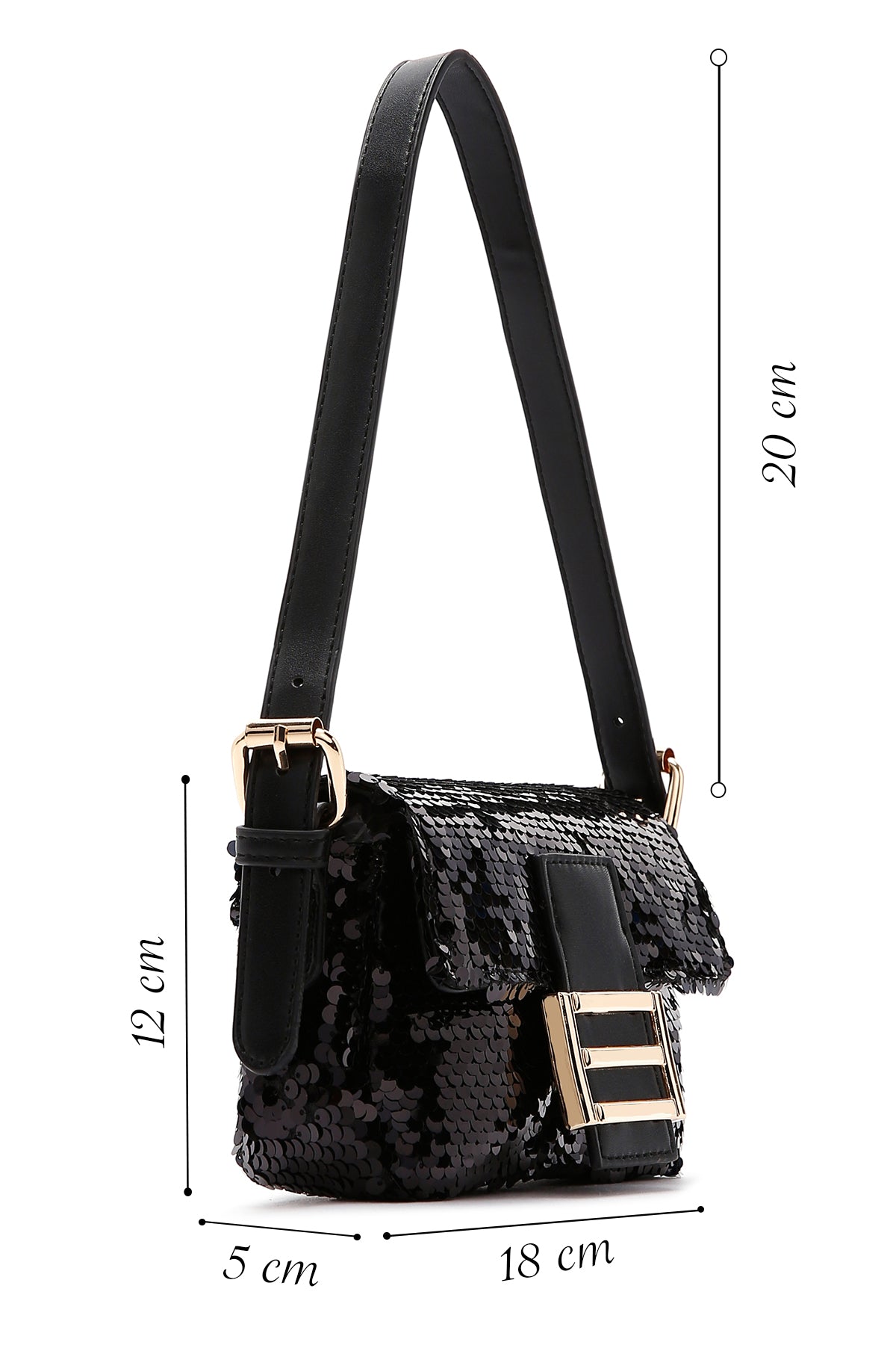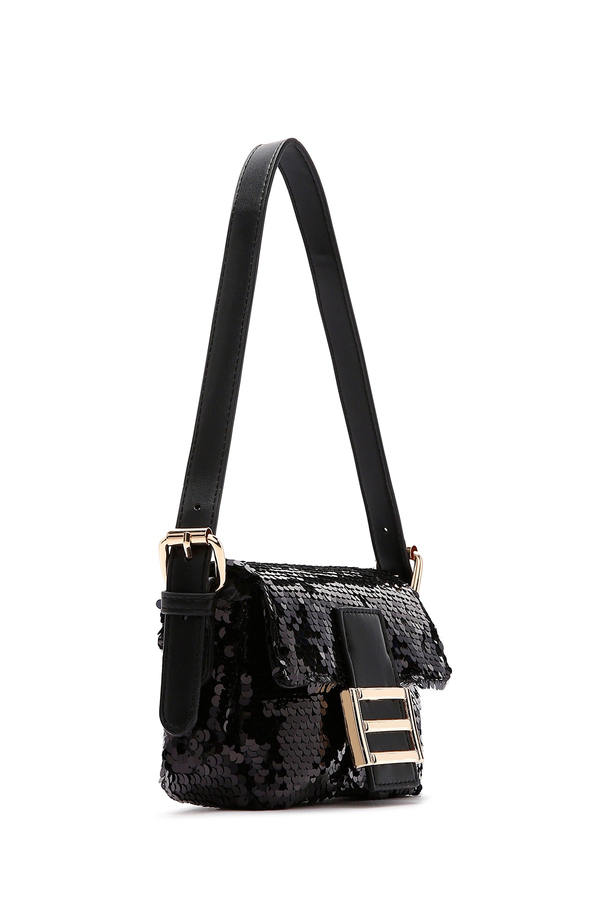 Derimod’un Zarif ve Şıklığı bir arada sunan Kadın Siyah Pullu Omuz Çantası ürünü ile tarzınızı konuşturun. Ürünün kodu: 23SBD276246 11