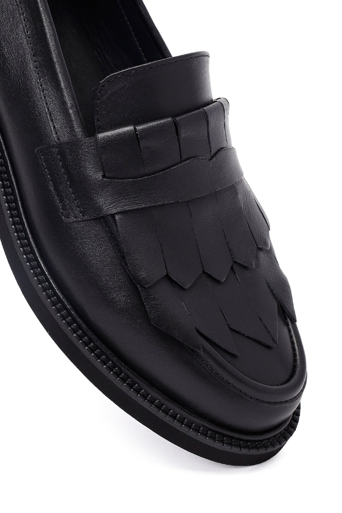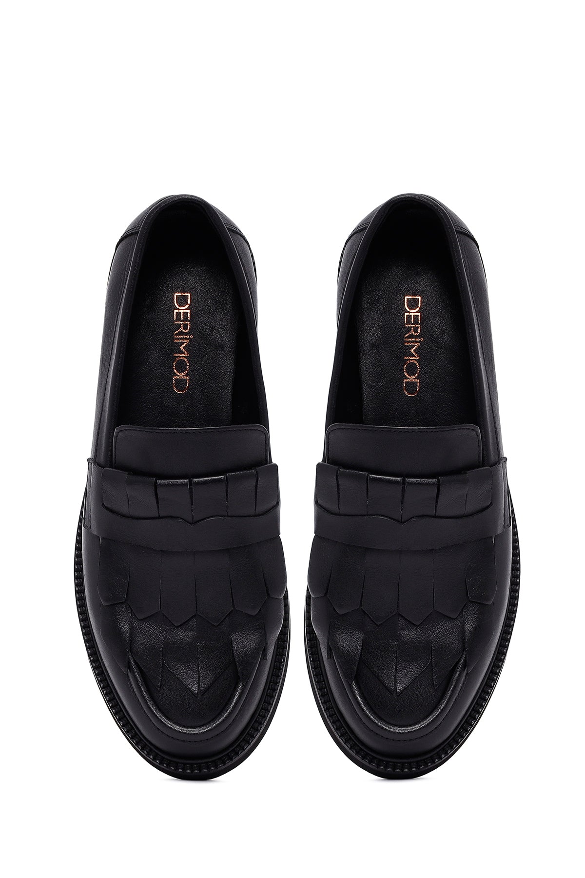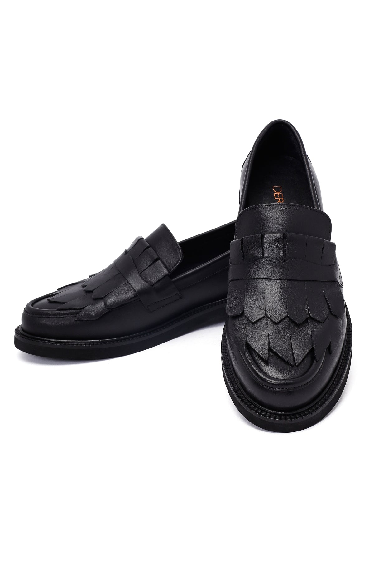 Derimod'un sonbahar koleksiyonundan, vidala deri ile üretilen siyah maskülen loafer modeli, 1,5 cm yüksekliğindeki tabanı ile günlük kullanıma uygun bir tasarım sunuyor. Ön kısmındaki püskül detayı ve maskülen çizgileriyle klasik bir görünüm sergileyen model, deri iç astarı sayesinde ayağınızı ferah tutuyor. Slip-on tarzı yapısı ile kolay giyim sağlayan loafer, ofis kombinlerinden günlük giyime, klasik takımlardan smart casual görünümlere kadar geniş bir kullanım alanı sunuyor. İlkbahar ve sonbahar mevsimlerinde günün her saatinde kullanılabilir. Ürün kodu: 25AFD260018
