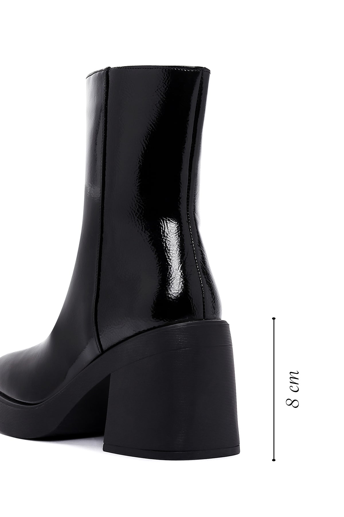 Derimod’un Zarif ve Şıklığı bir arada sunan Kadın Siyah Rugan Topuklu Fermuarlı Casual Bot ile tarzınızı konuşturun. Ürünün kodu: 23WFE401816 11