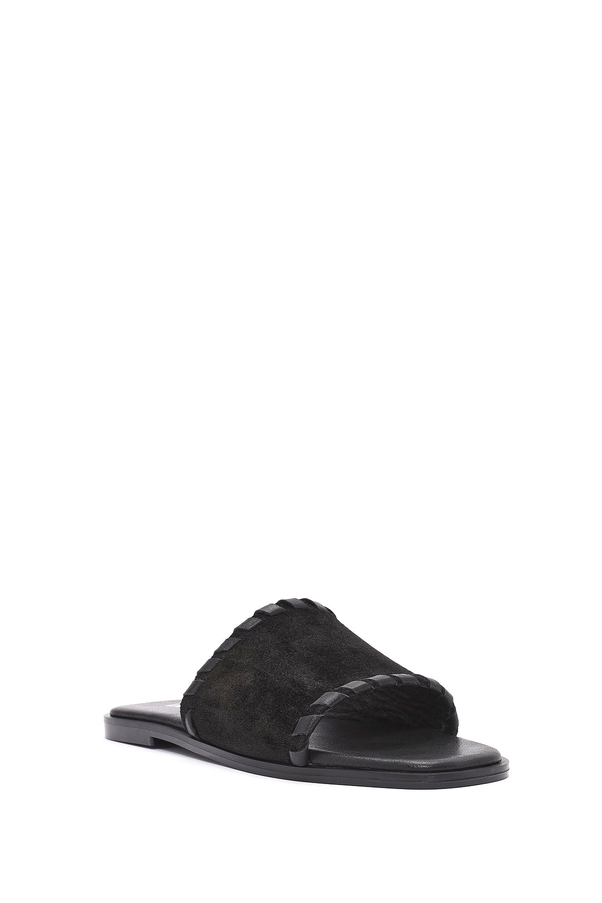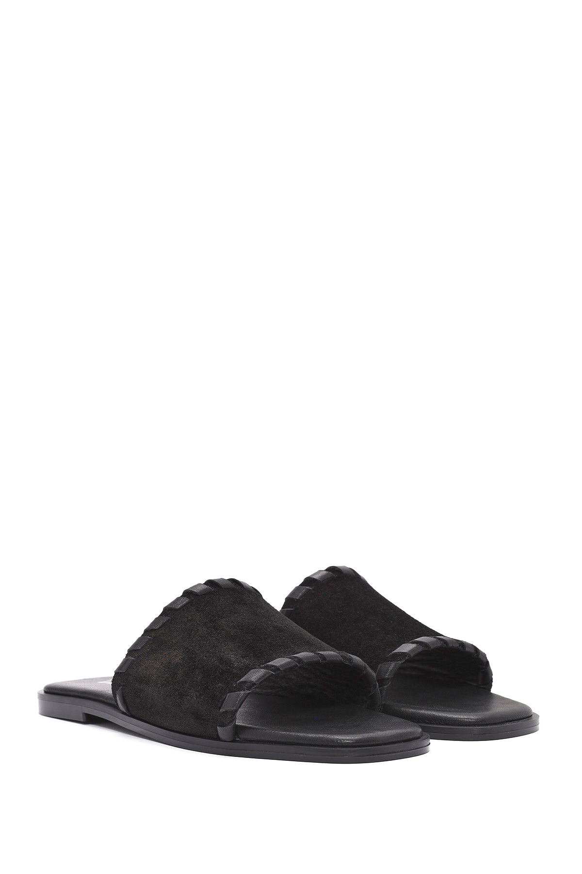 Derimod’un Zarifliği ve Şıklığı bir arada sunan Kadın Siyah Süet Deri Terlik ile tarzınızı konuşturun. Ürünün kodu: 25SFD152110 11