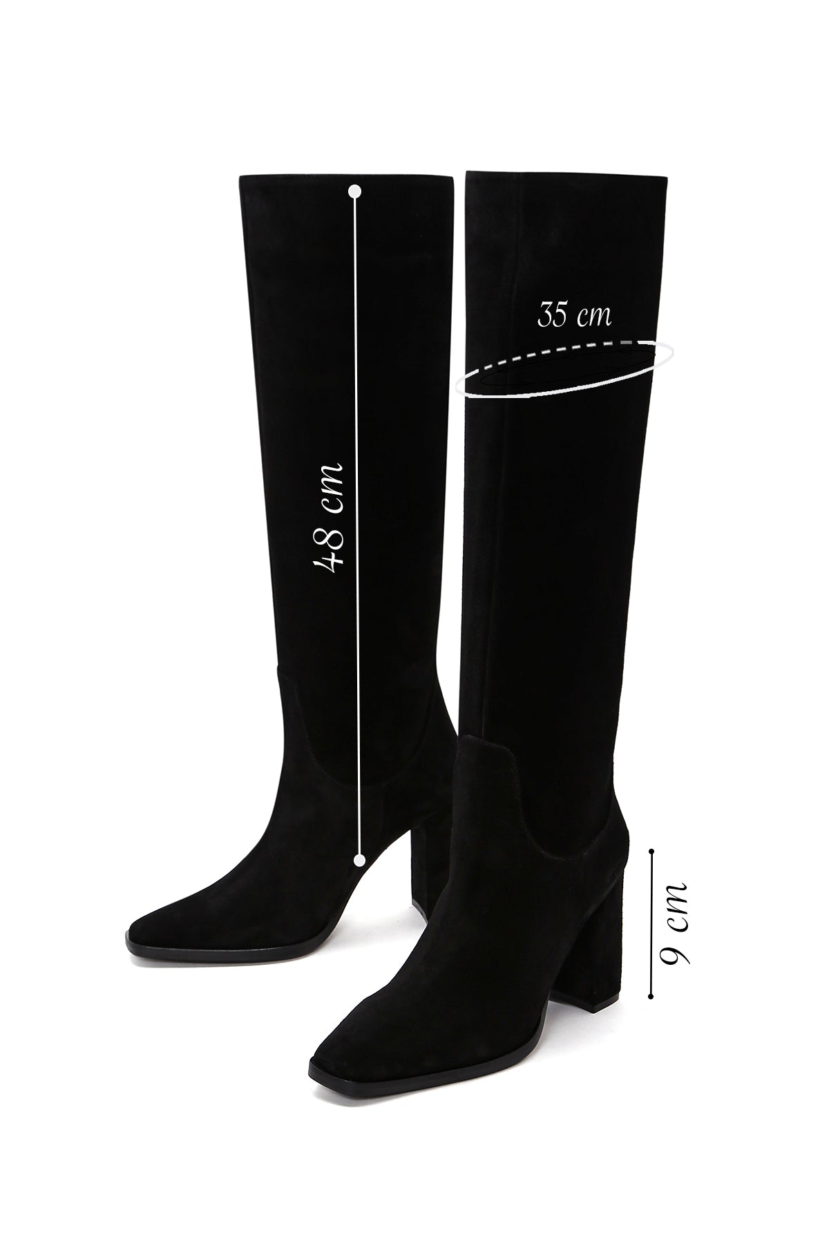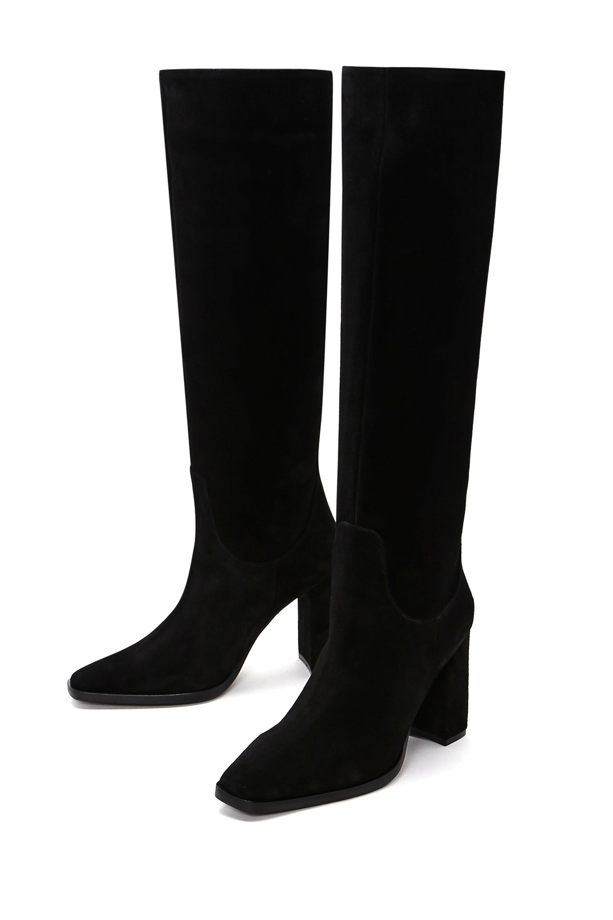 Derimod’un Zarif ve Şıklığı bir arada sunan Kadın Siyah Süet Deri Topuklu Çizme ile tarzınızı konuşturun. Ürünün kodu: 23WFD134310 11