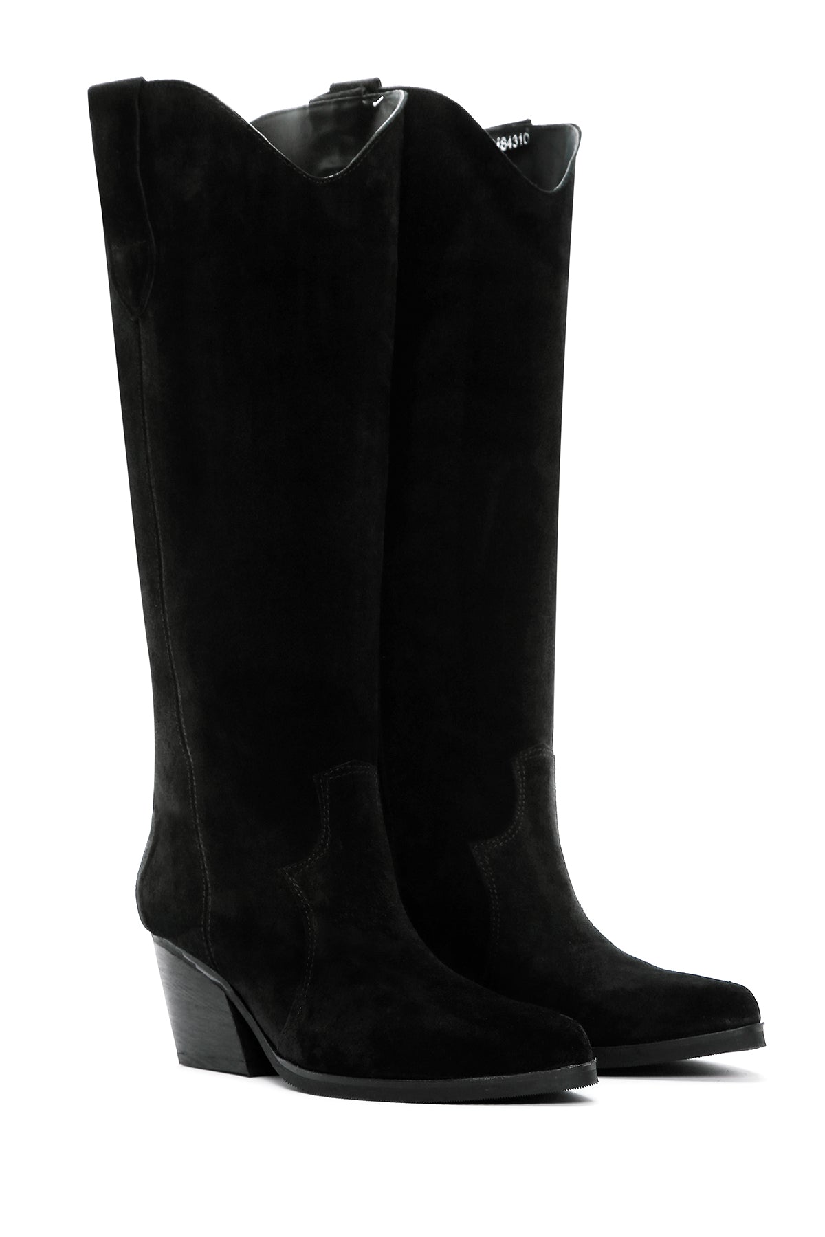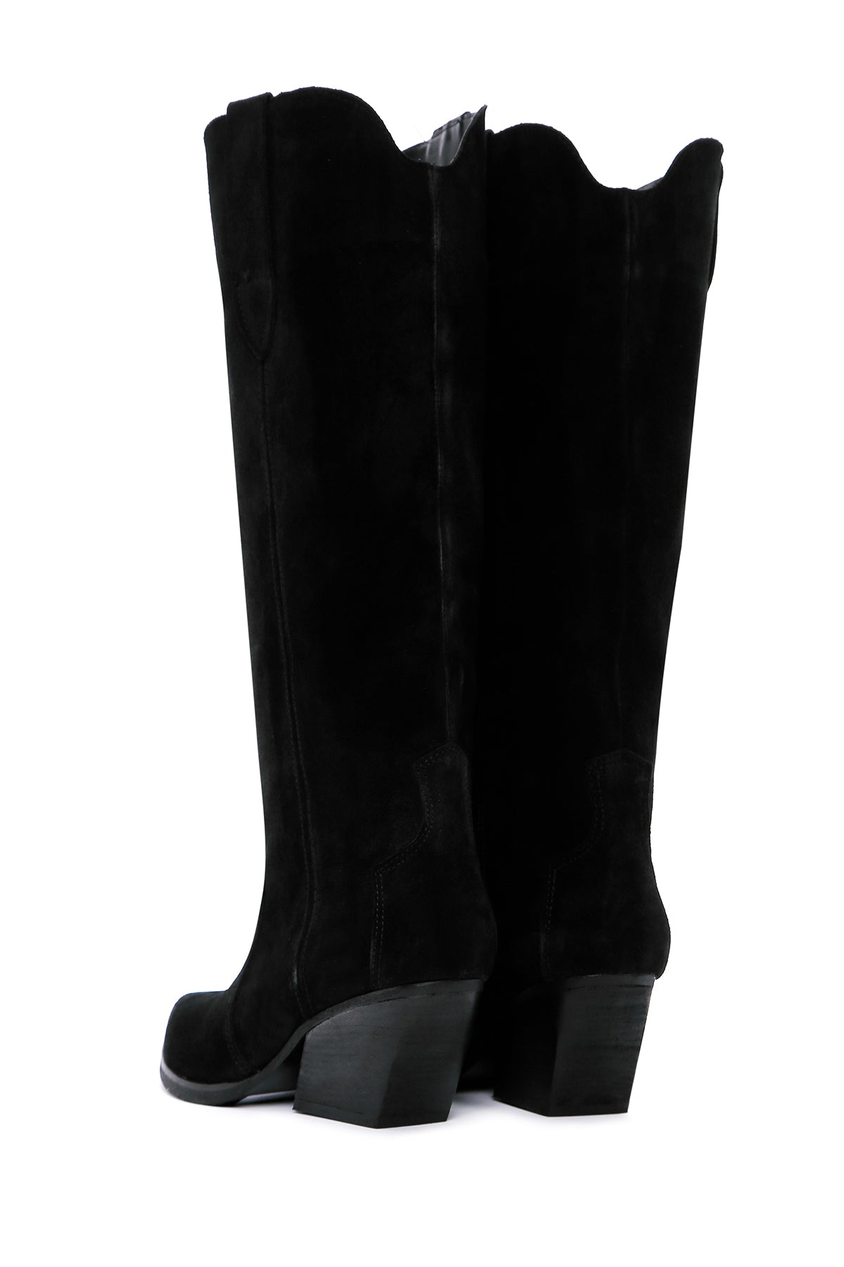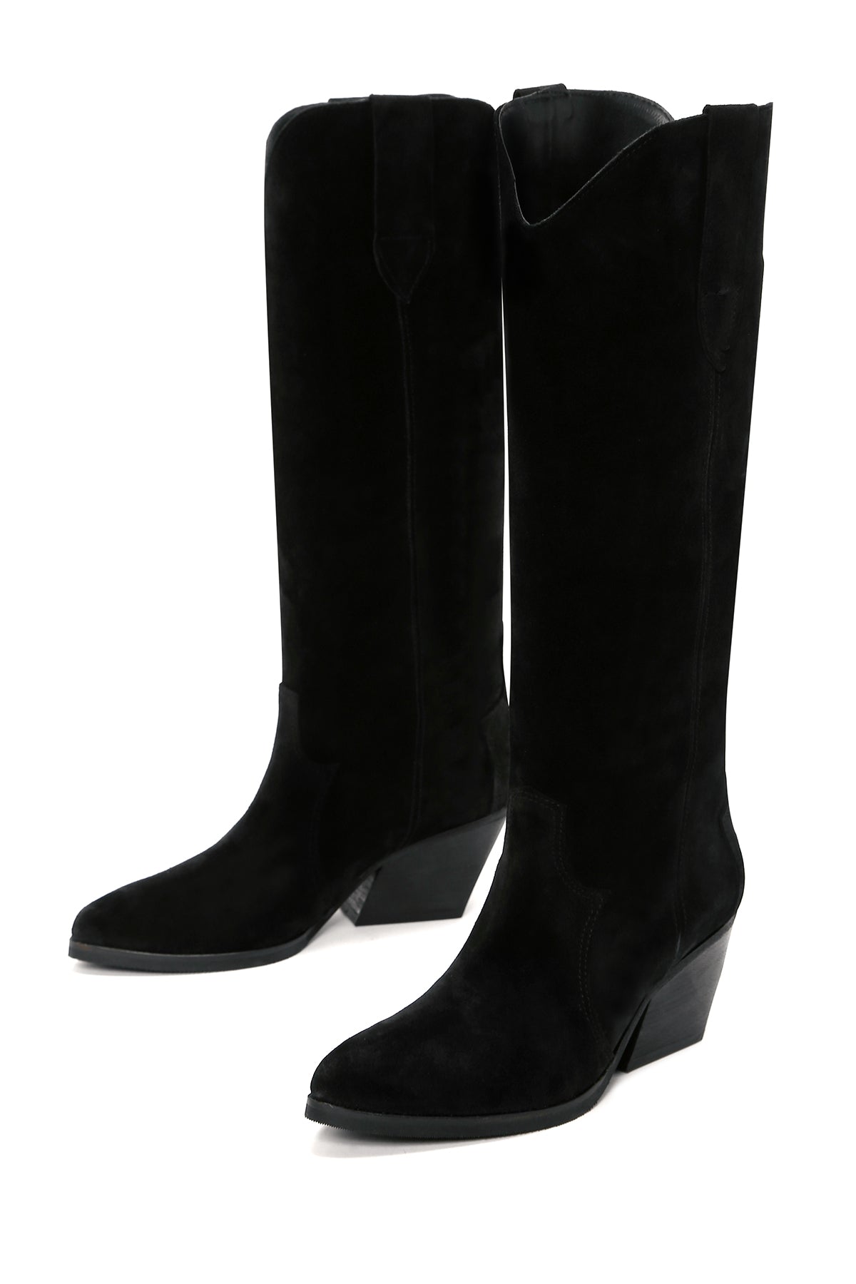Derimod’un Zarif ve Şıklığı bir arada sunan Kadın Siyah Süet Deri Topuklu Kovboy Çizme ile tarzınızı konuşturun. Ürünün kodu: 23WFD184310 11