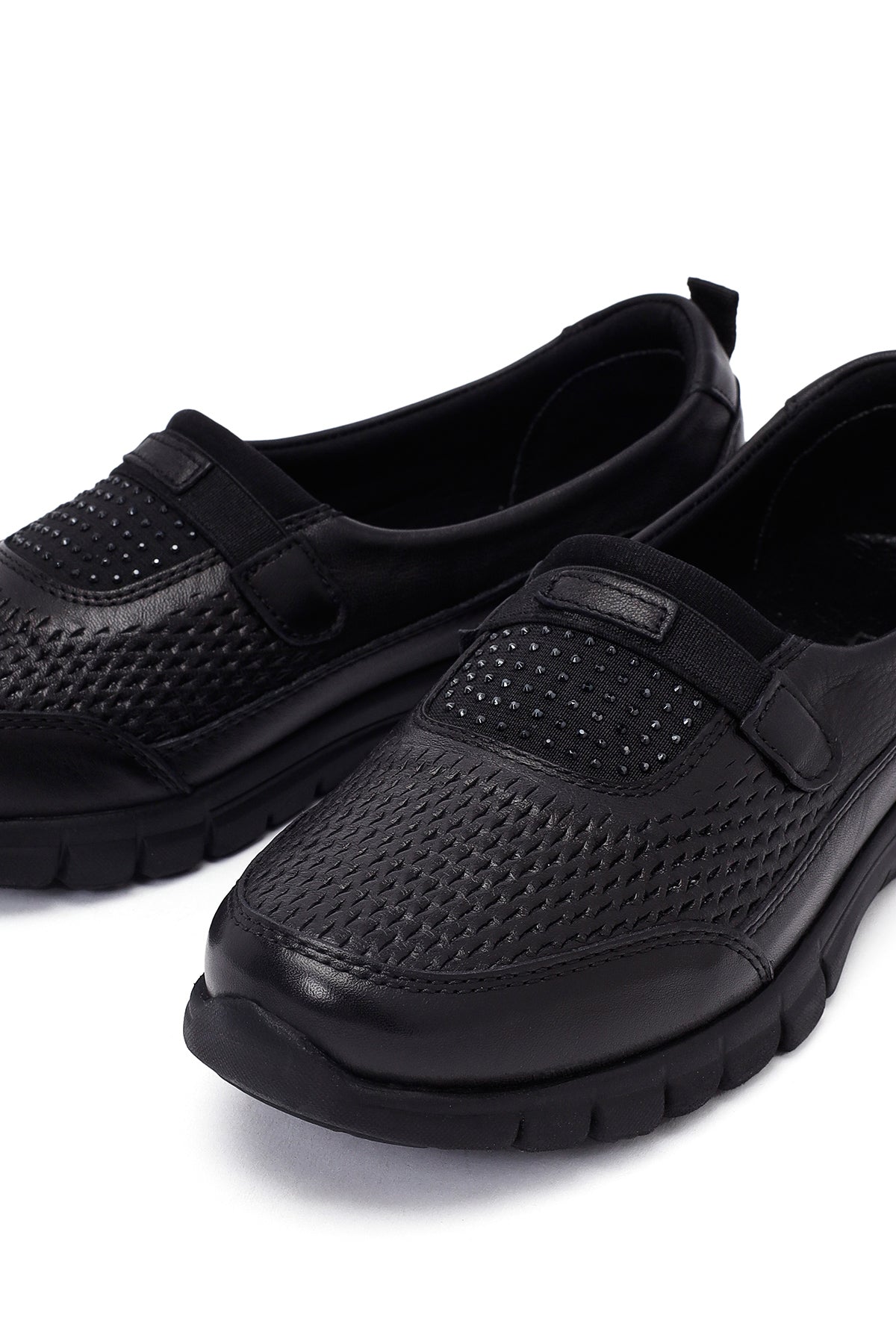 Sonbahar koleksiyonunun konfor ayakkabı modeli, siyah vidala deri üst yüzeyi ve zarif taş detaylarıyla dikkat çekiyor. Deri astar kullanımı ayağın nefes almasını sağlarken, 2,5 cm yüksekliğindeki taban rahatlık sunuyor. Esnek yapısı ve şık tasarımı ile günlük kullanıma uygun. Özellikle sonbahar aylarında, hem casual hem şık giyim kombinleriyle mükemmel uyum sağlıyor. Kullanım alanları: Ofis ortamı, günlük aktiviteler ve şehir gezmeleri için ideal. Ürün kodu: 25AFD500918