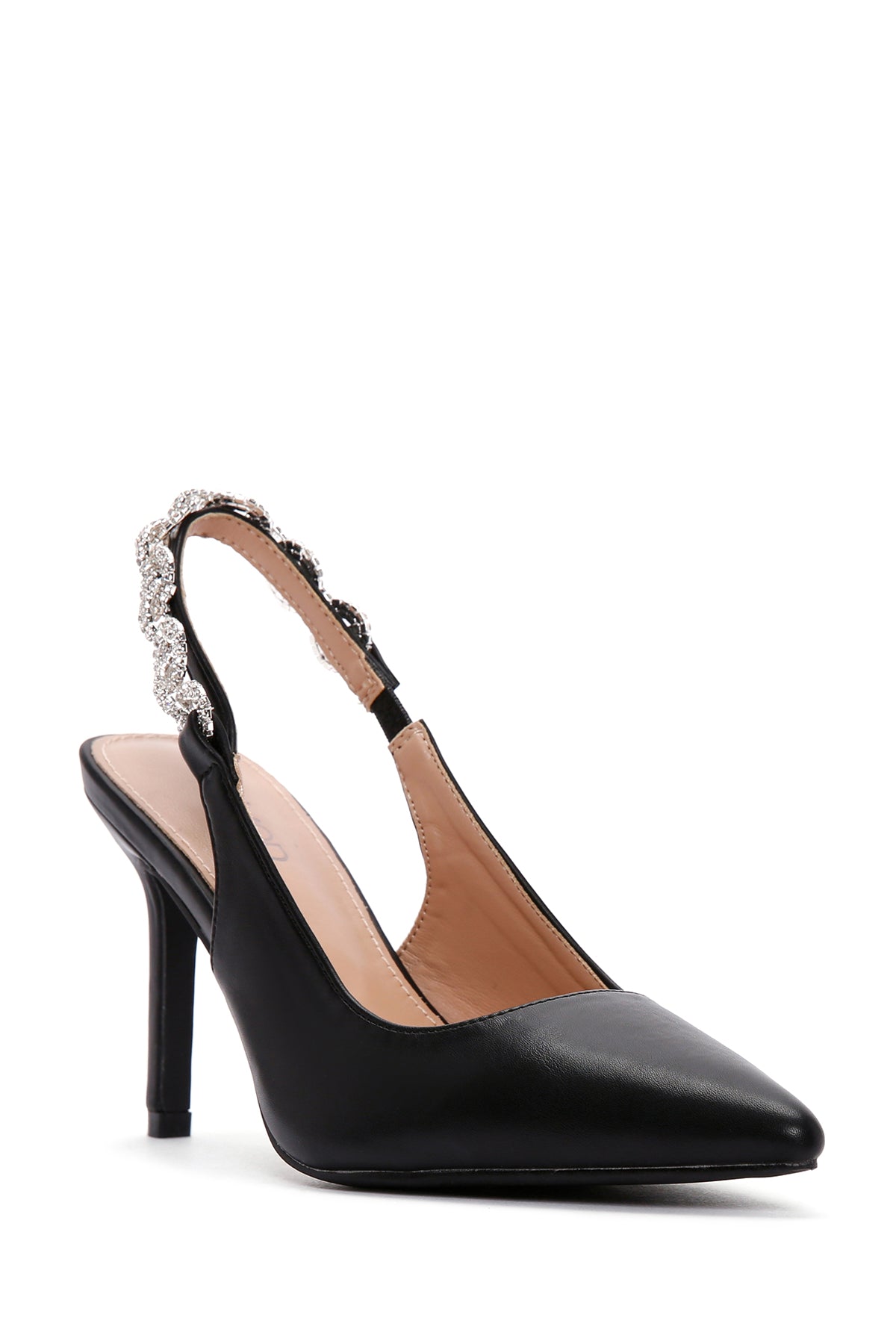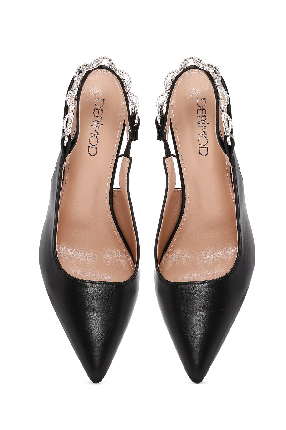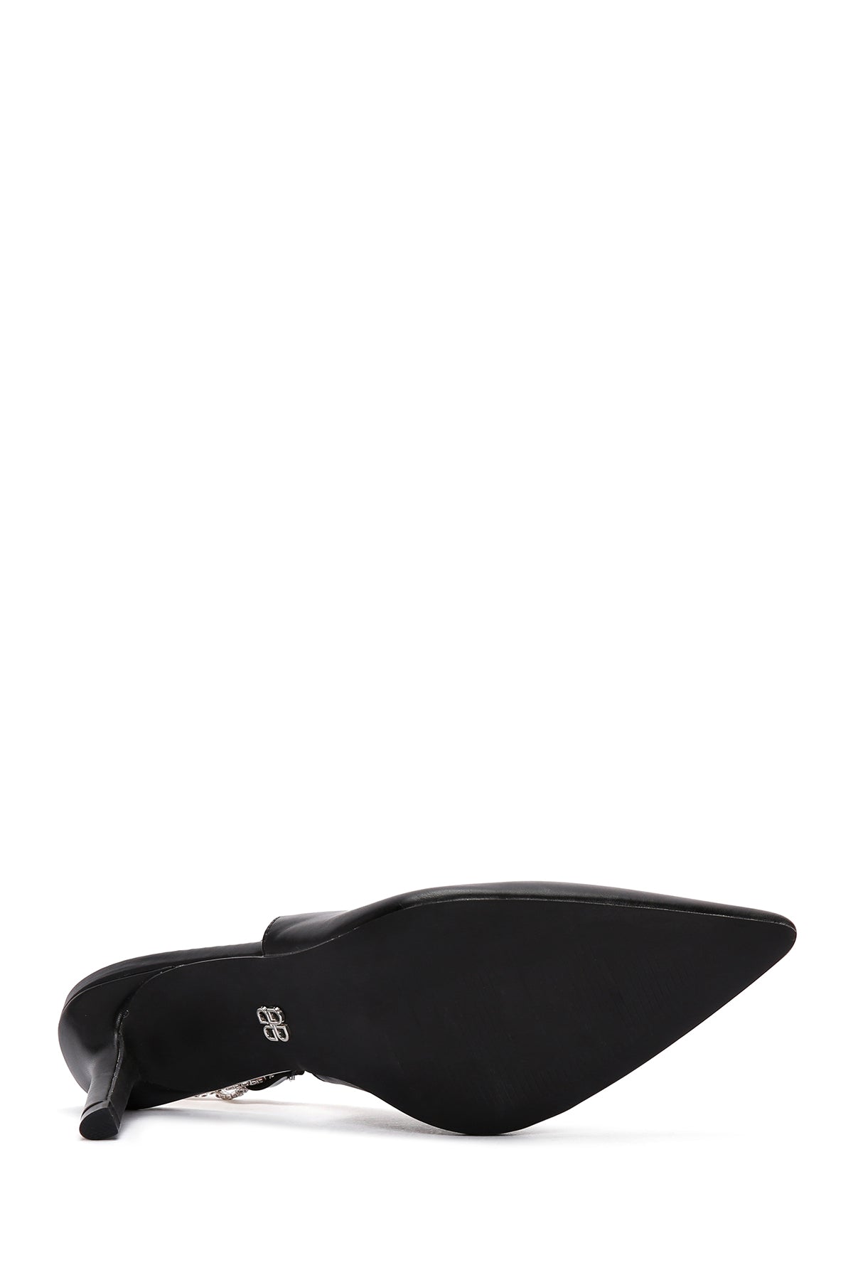 Kadın Siyah Taşlı Arkası Açık İnce Topuklu Ayakkabı