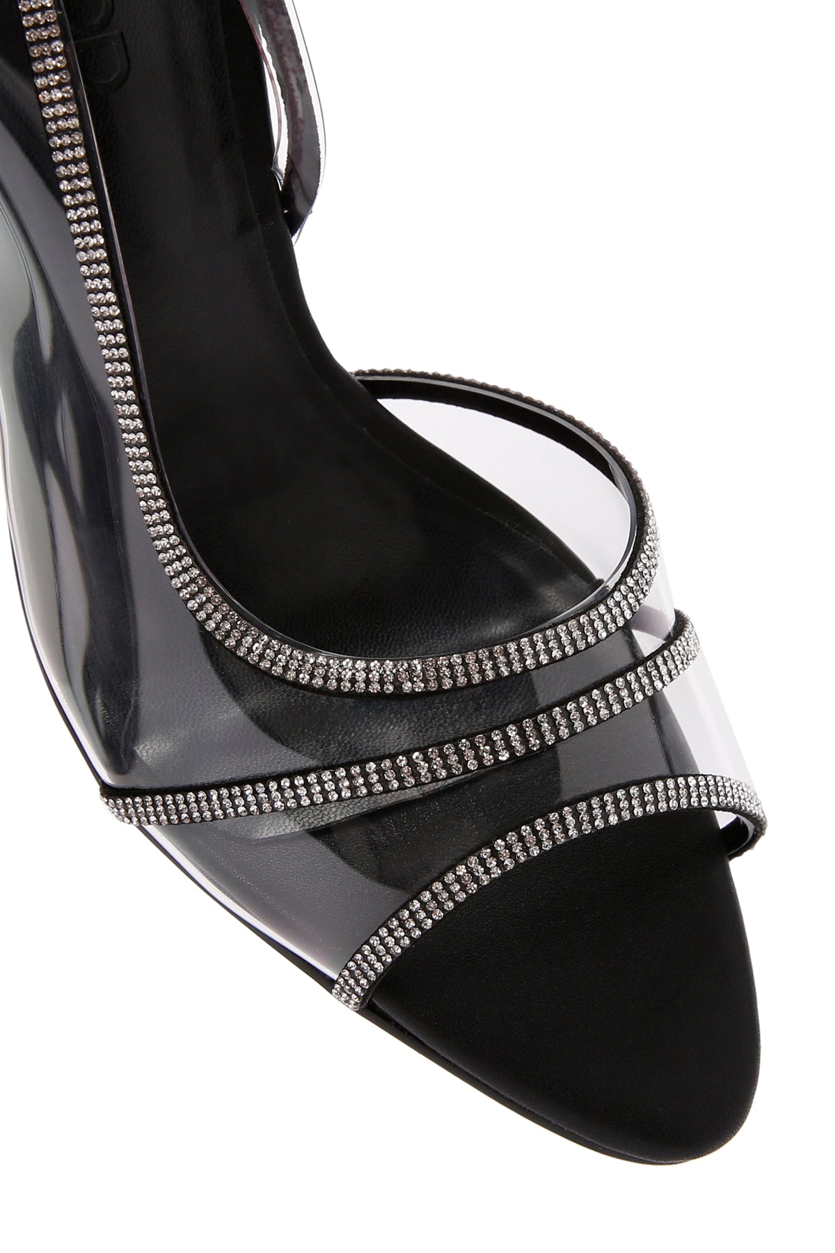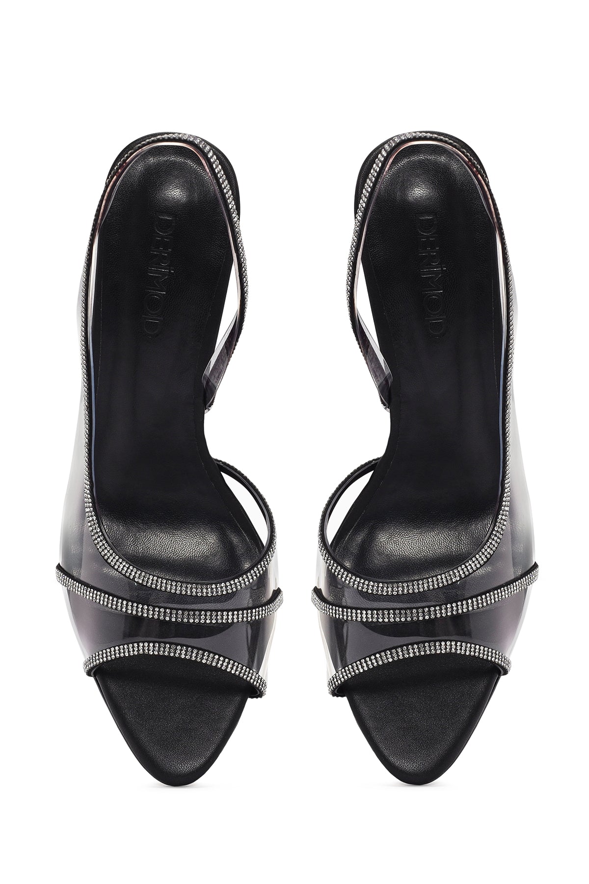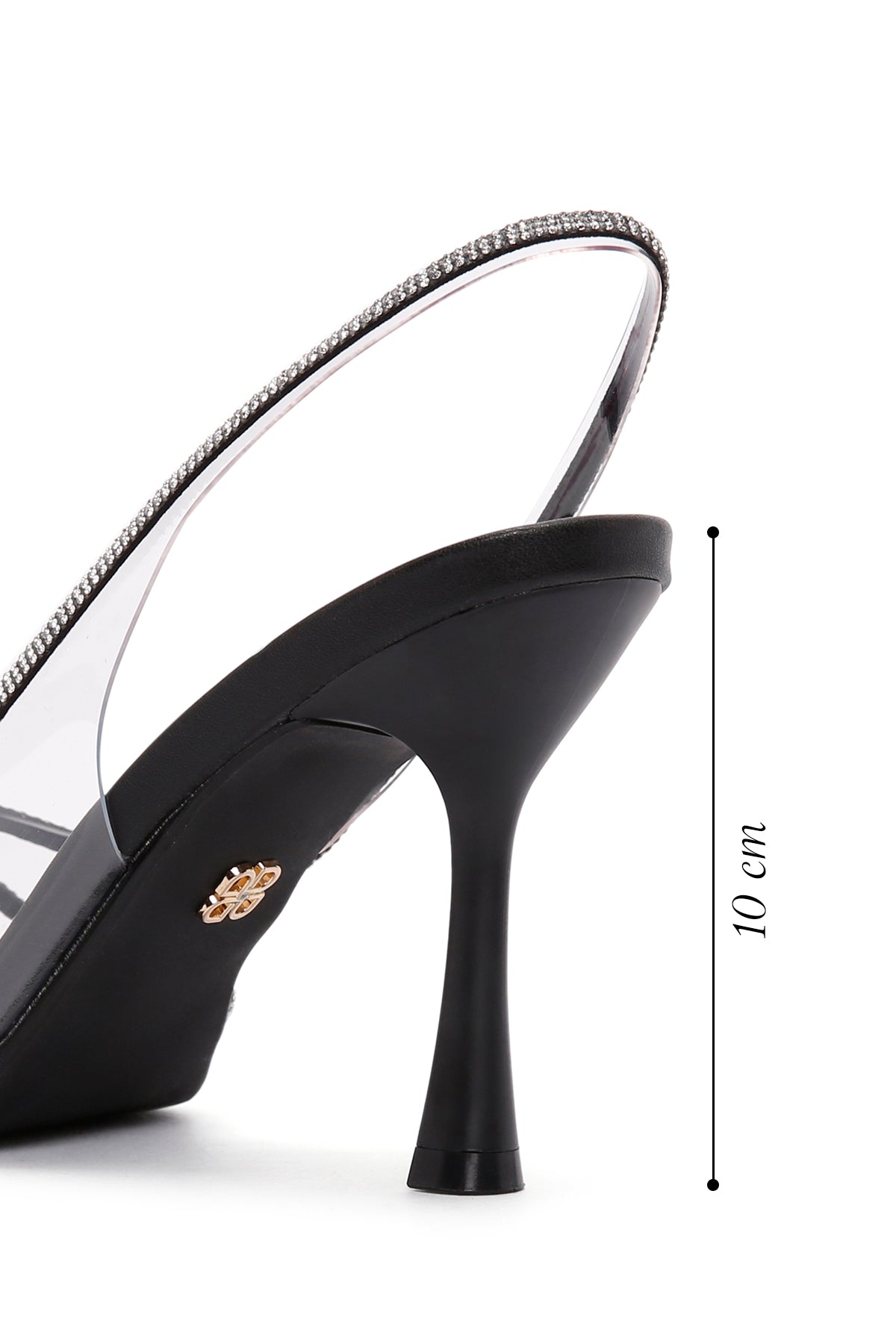 Kadın Siyah Taşlı İnce Topuklu Sandalet