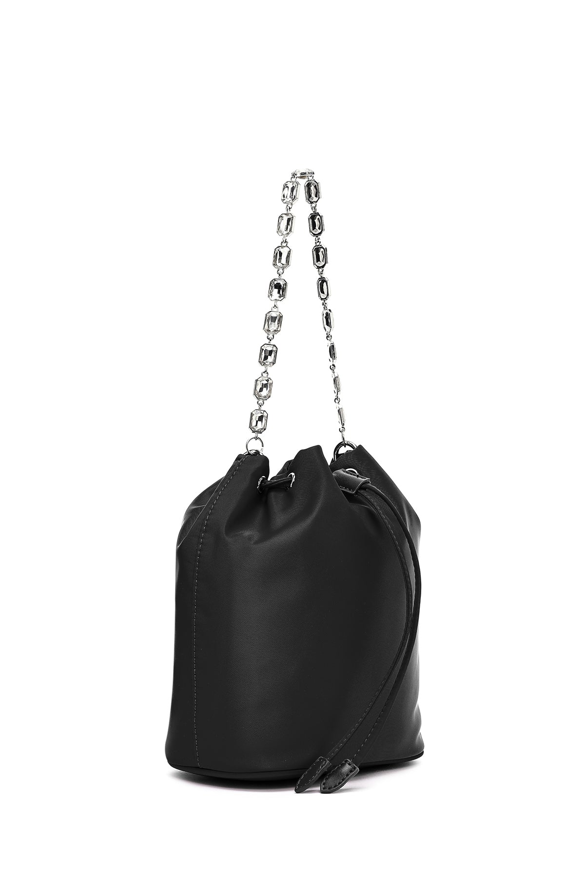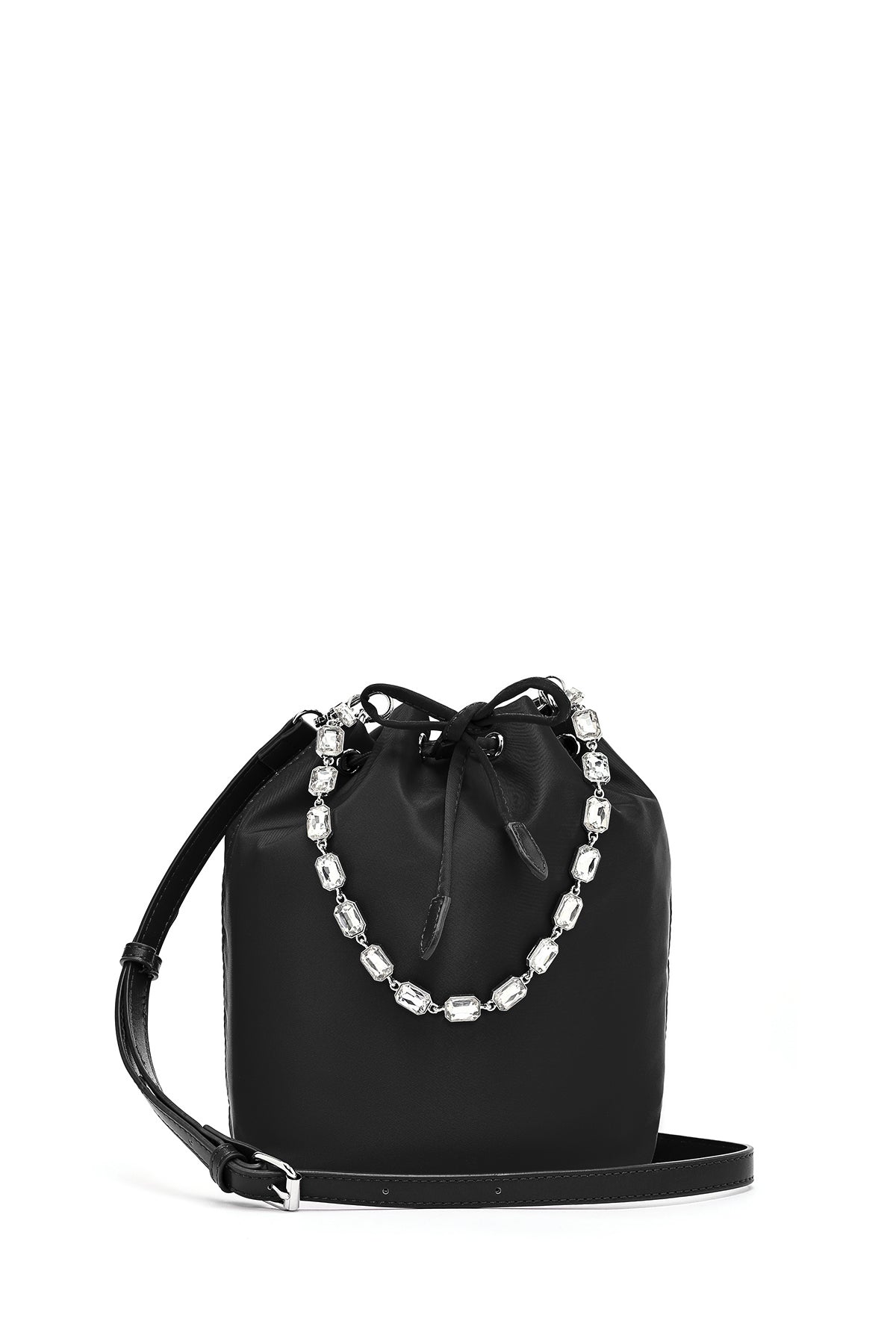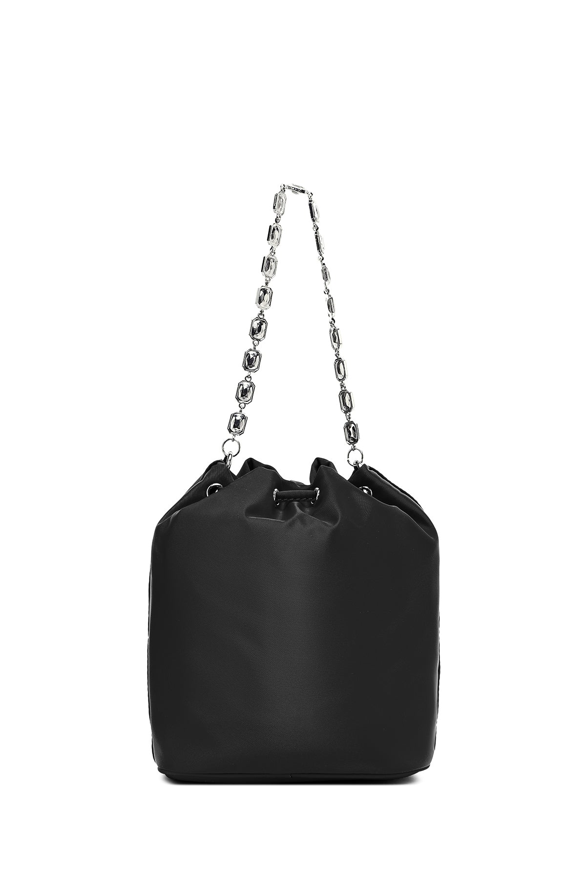 Kadın Siyah Taşlı Kumaş Omuz Çantası