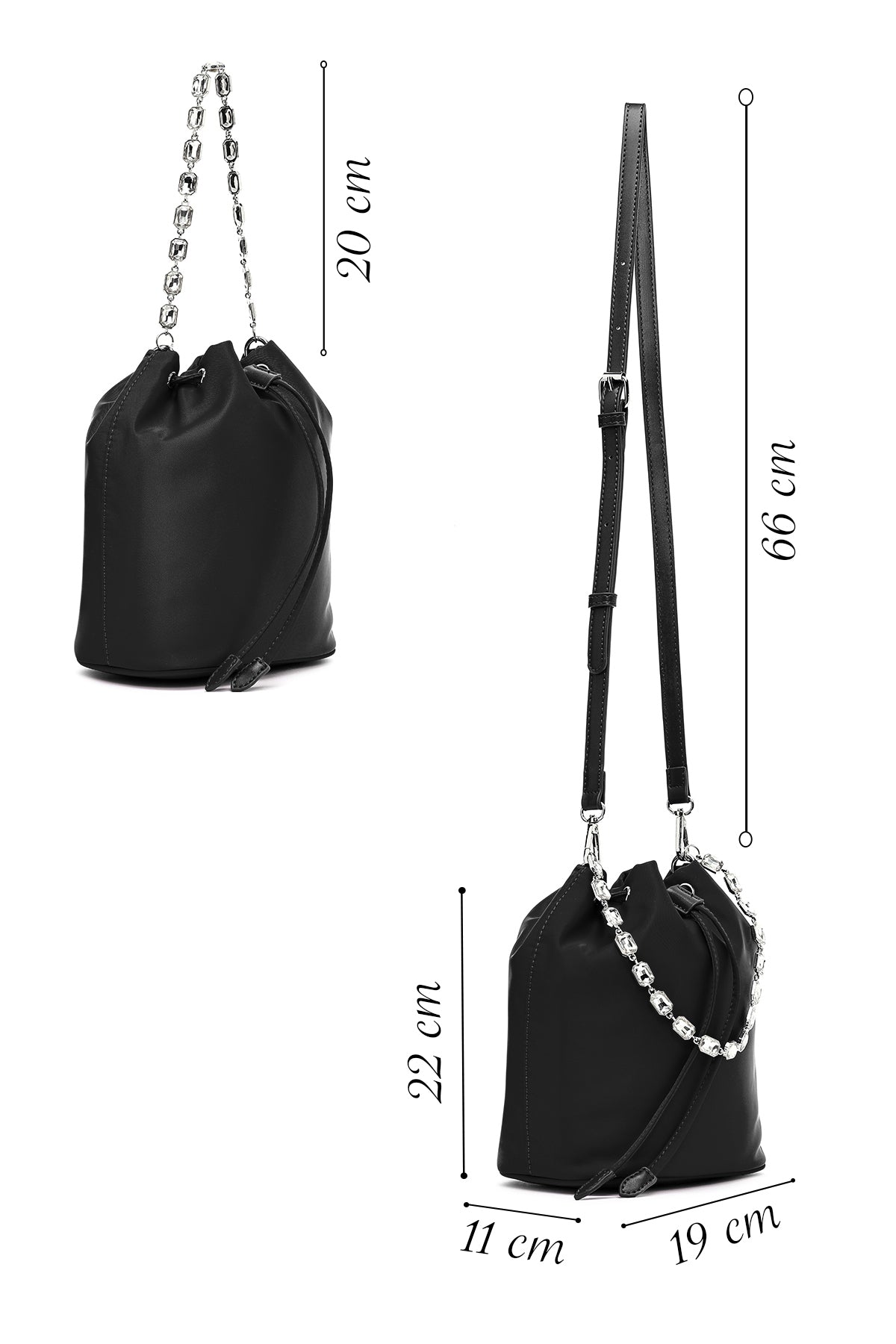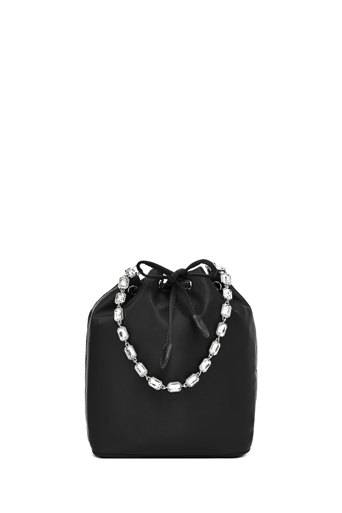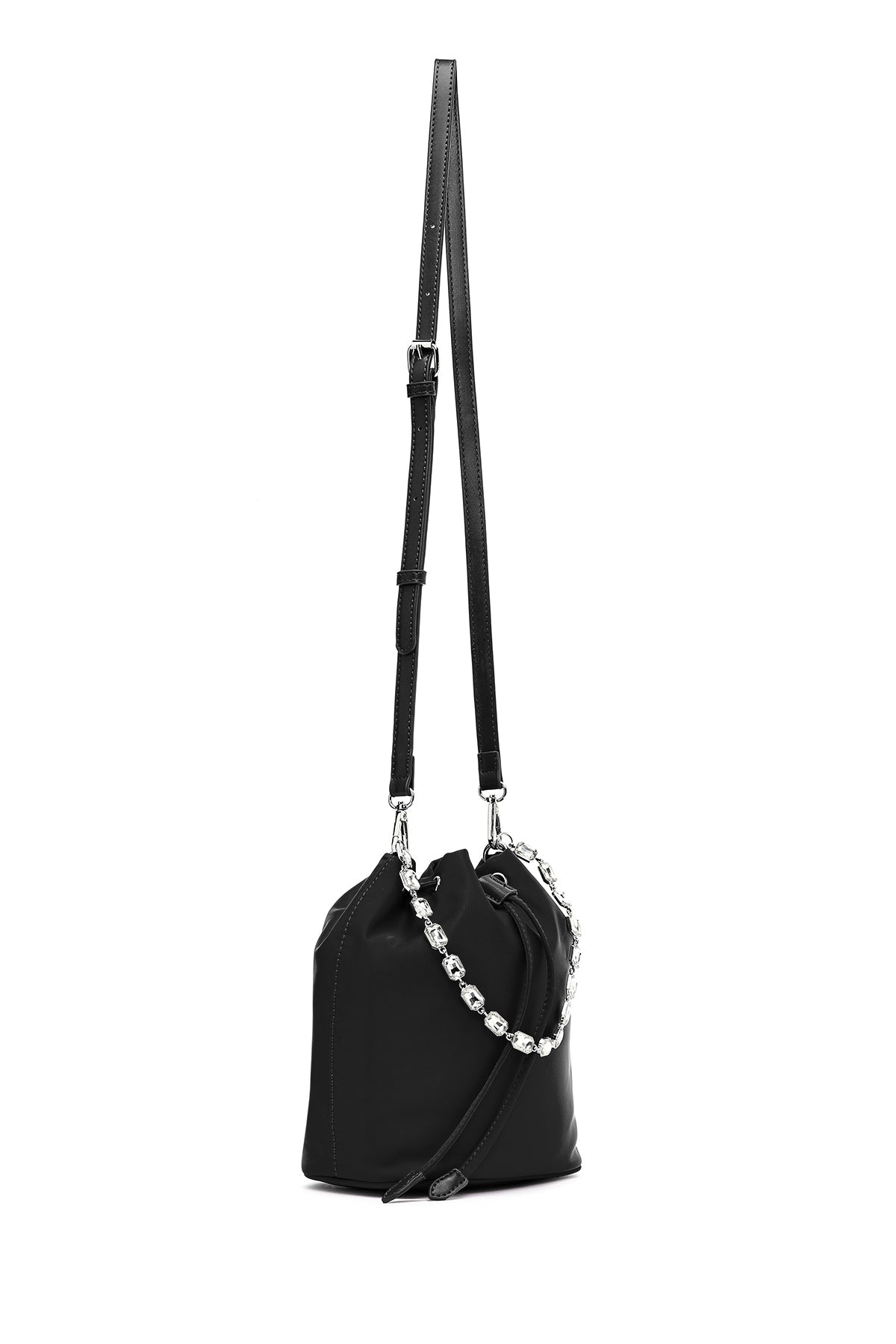 Kadın Siyah Taşlı Kumaş Omuz Çantası