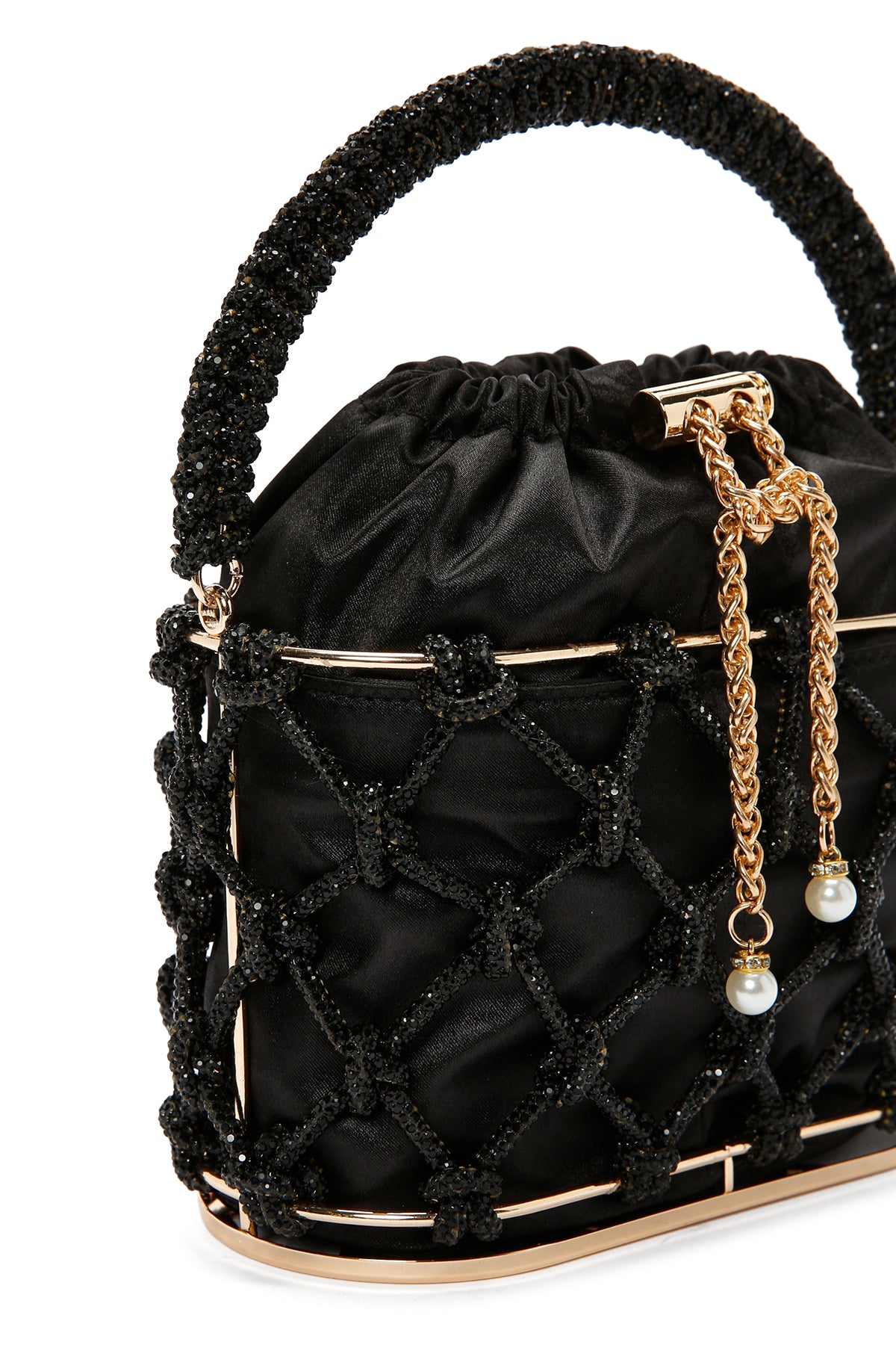 Kadın Siyah Taşlı Kutu Kol Çantası