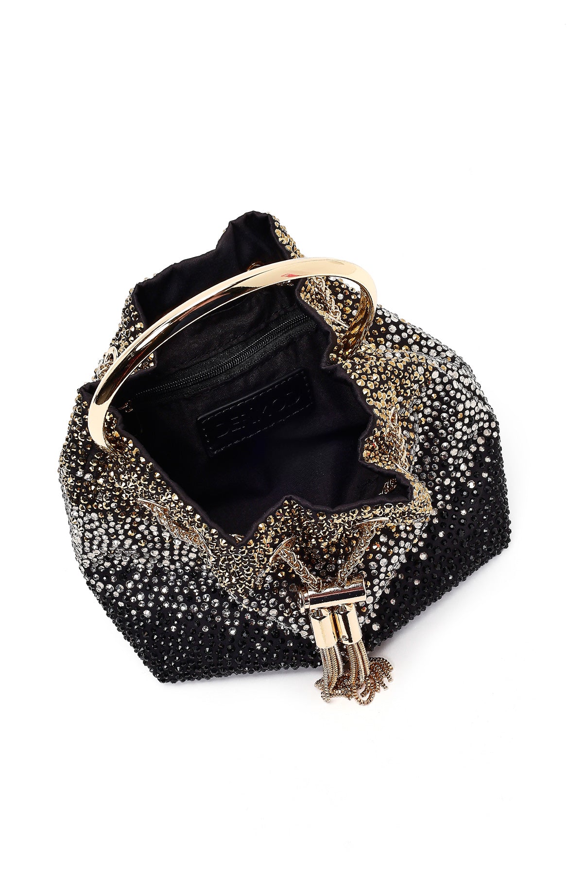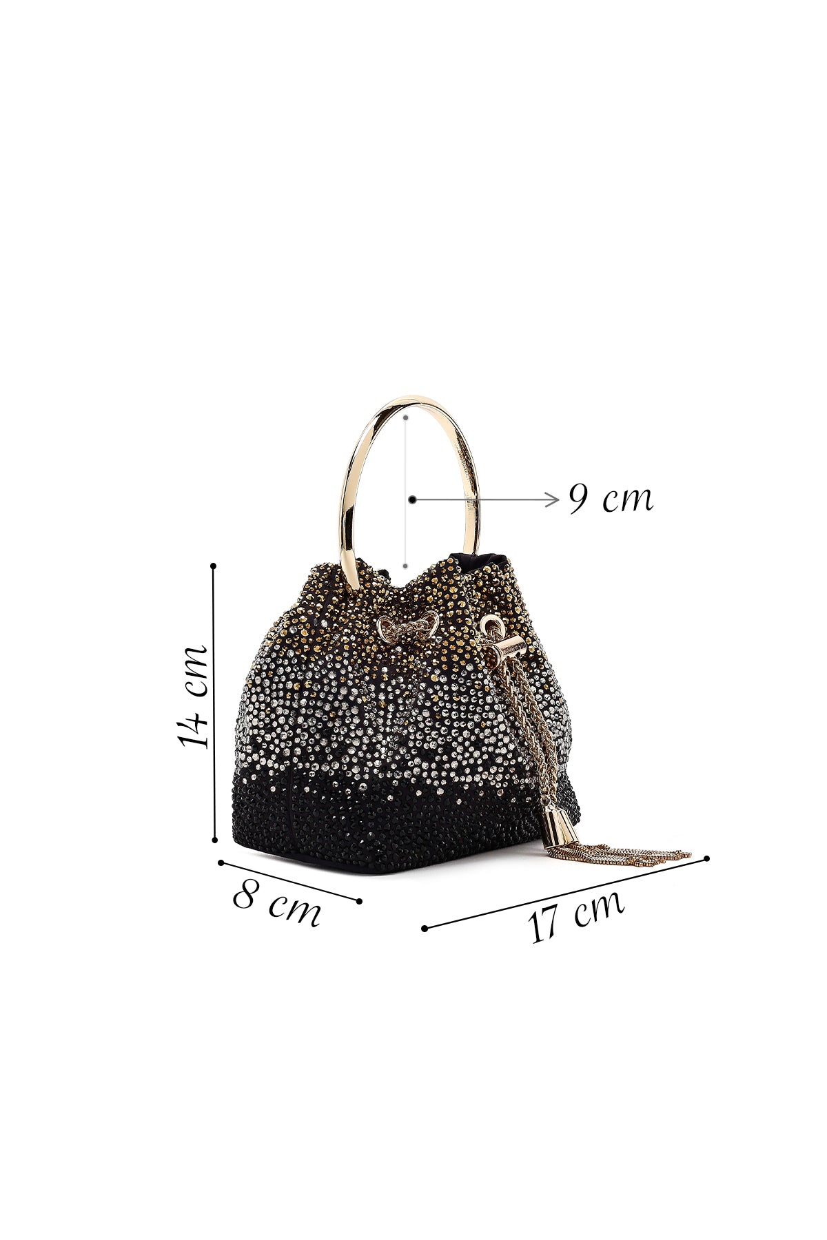 Kadın Siyah Taşlı Mini Abiye Kol Çantası