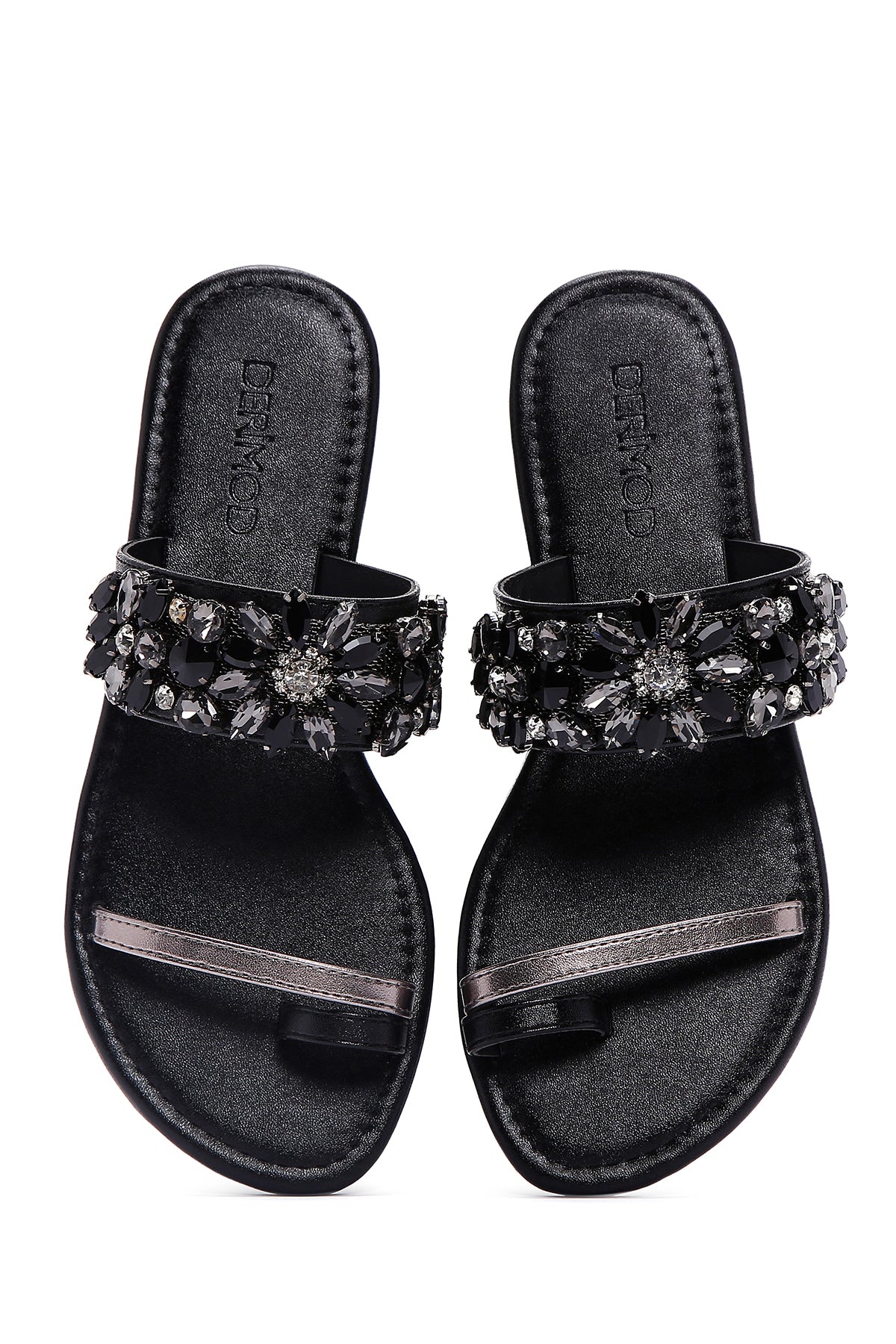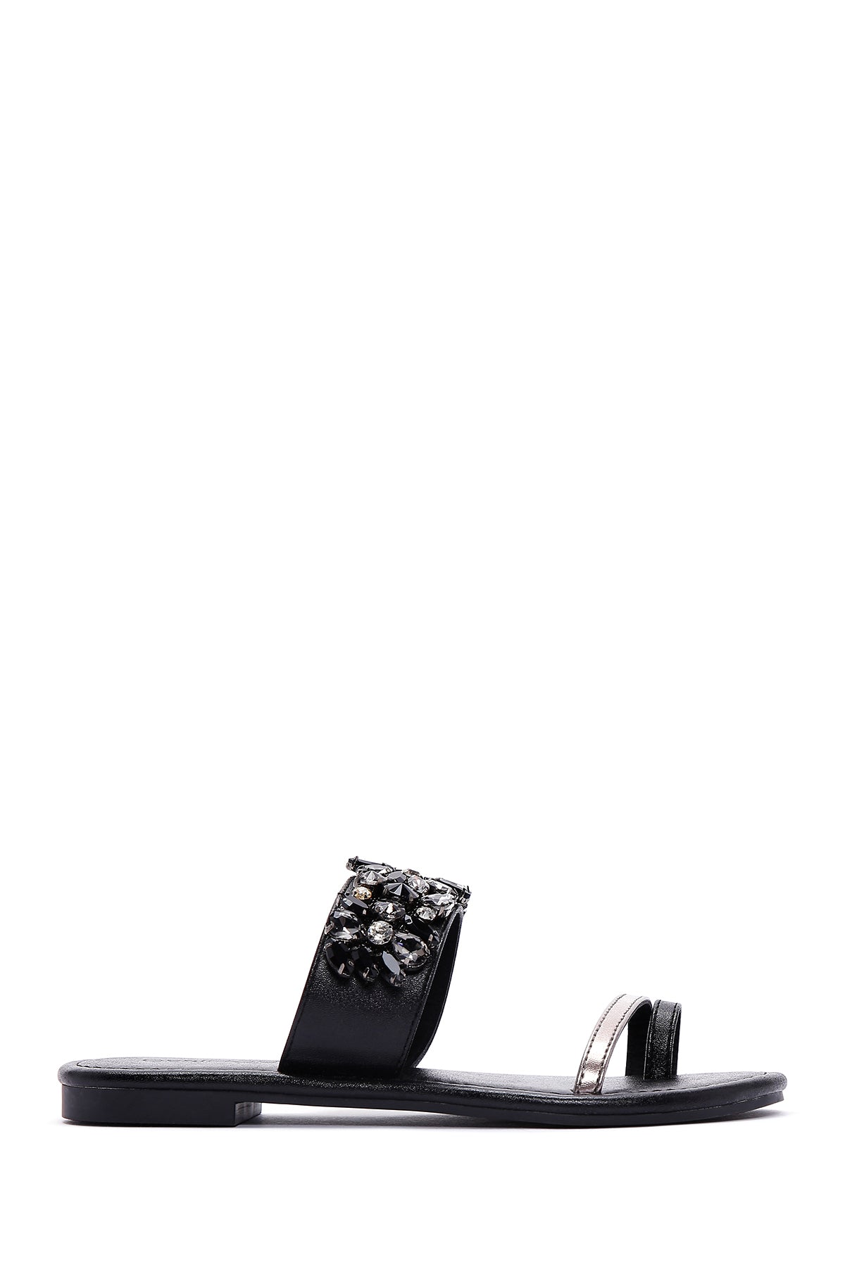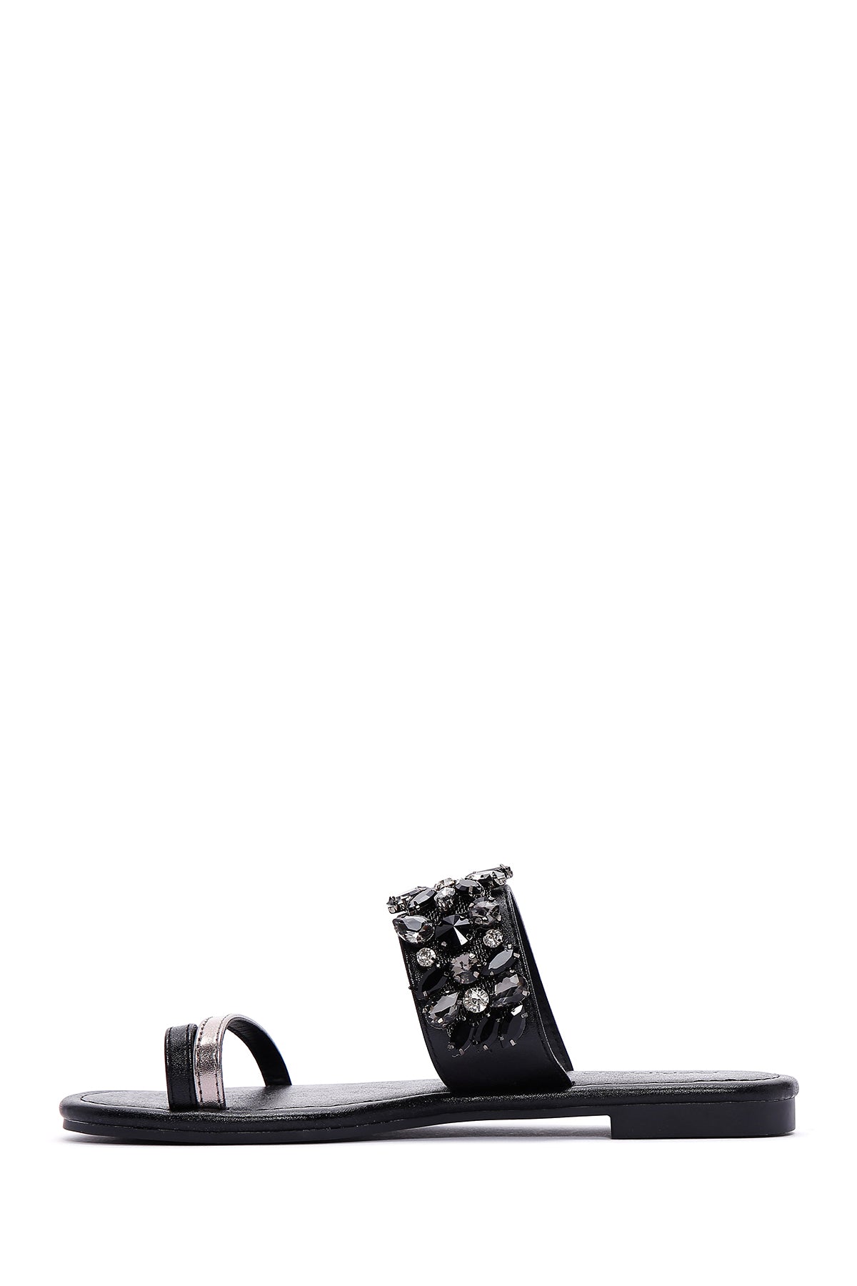 Derimod’un Zarif ve Şıklığı bir arada sunan Kadın Siyah Taşlı Parmak Arası Düz Terlik ile tarzınızı konuşturun. Ürünün kodu: 23SFE451114 11