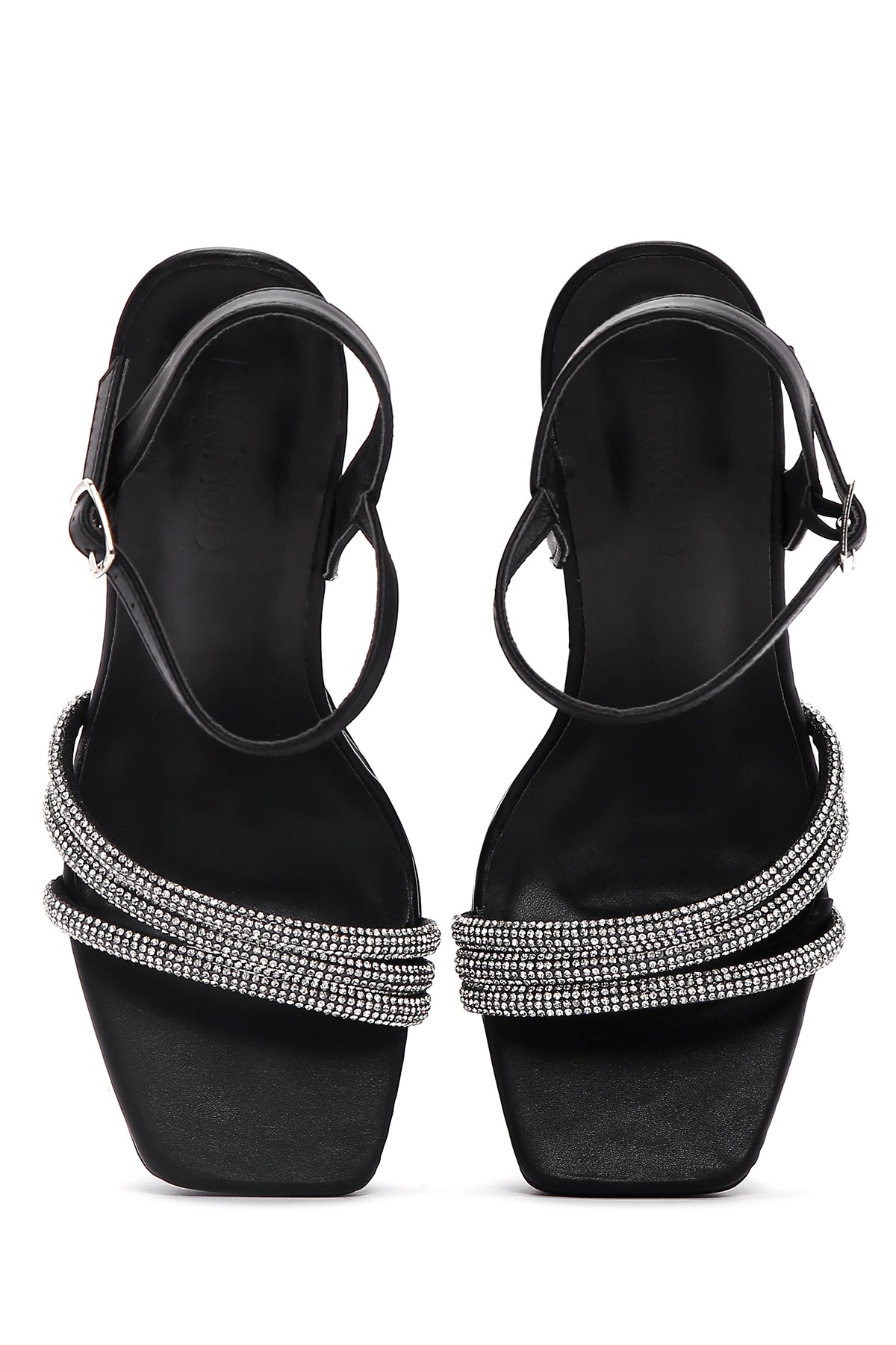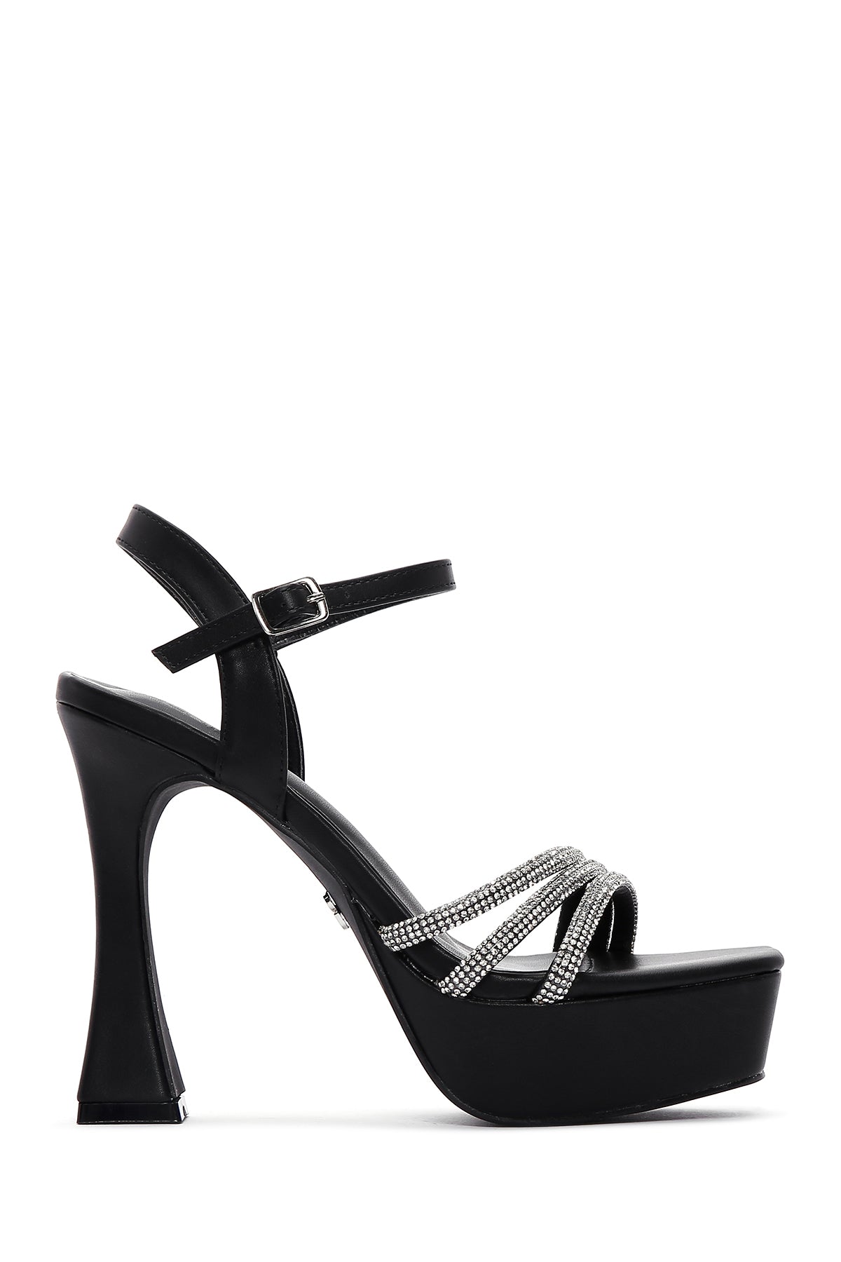 Derimod’un Zarif ve Şıklığı bir arada sunan Kadın Siyah Taşlı Platform Topuklu Sandalet ile tarzınızı konuşturun. Ürünün kodu: 23SFE493514 11