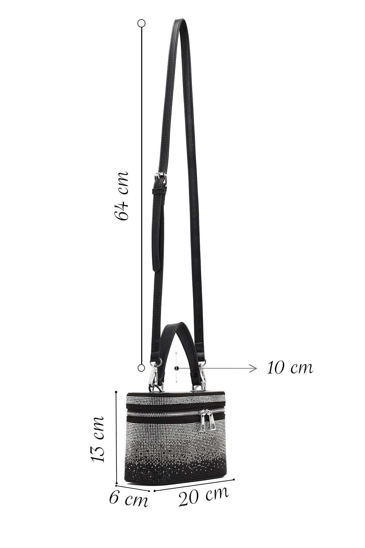 Kadın Siyah Taşlı Uzun Askılı Mini Abiye Kol Çantası