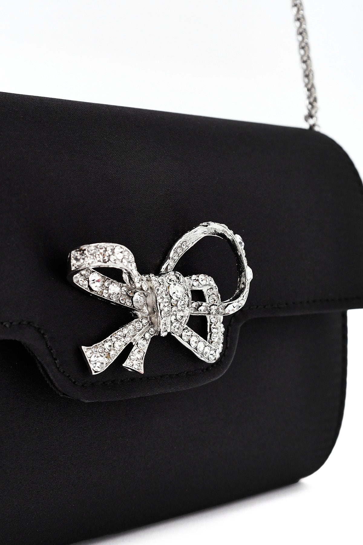Kadın Siyah Taşlı Uzun Zincir Askılı Abiye Kutu Çanta