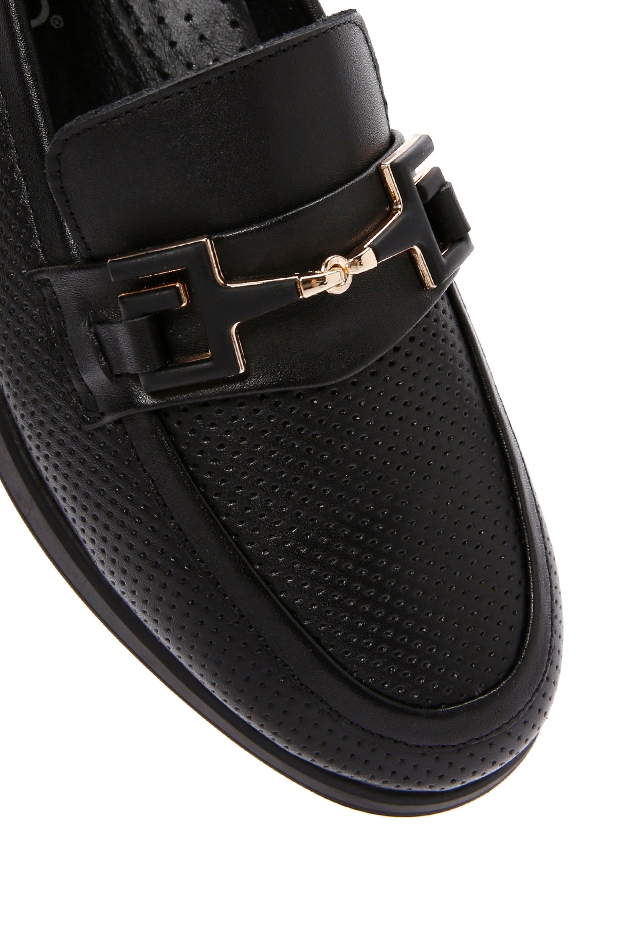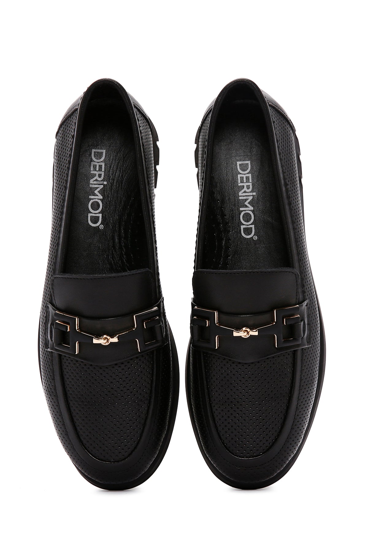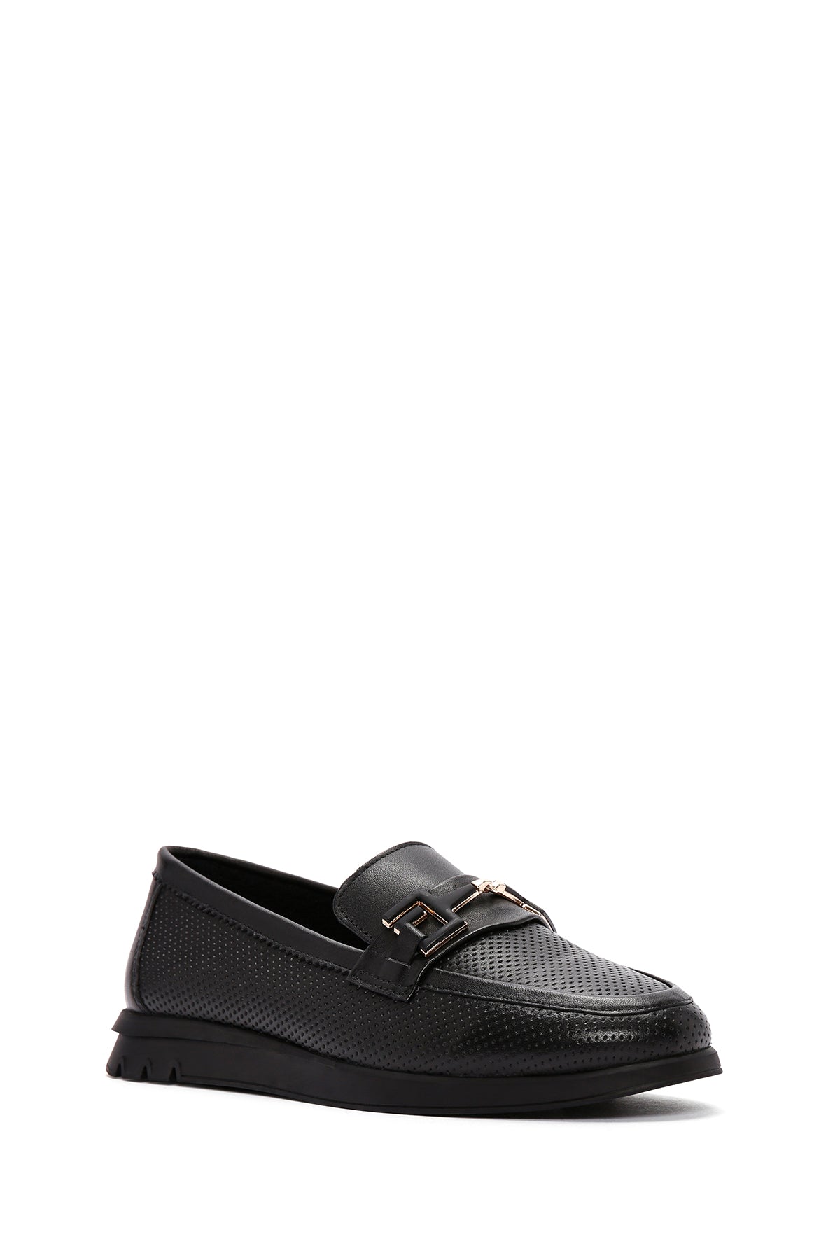 Kadın Siyah Toka Detaylı Deri Comfort Loafer