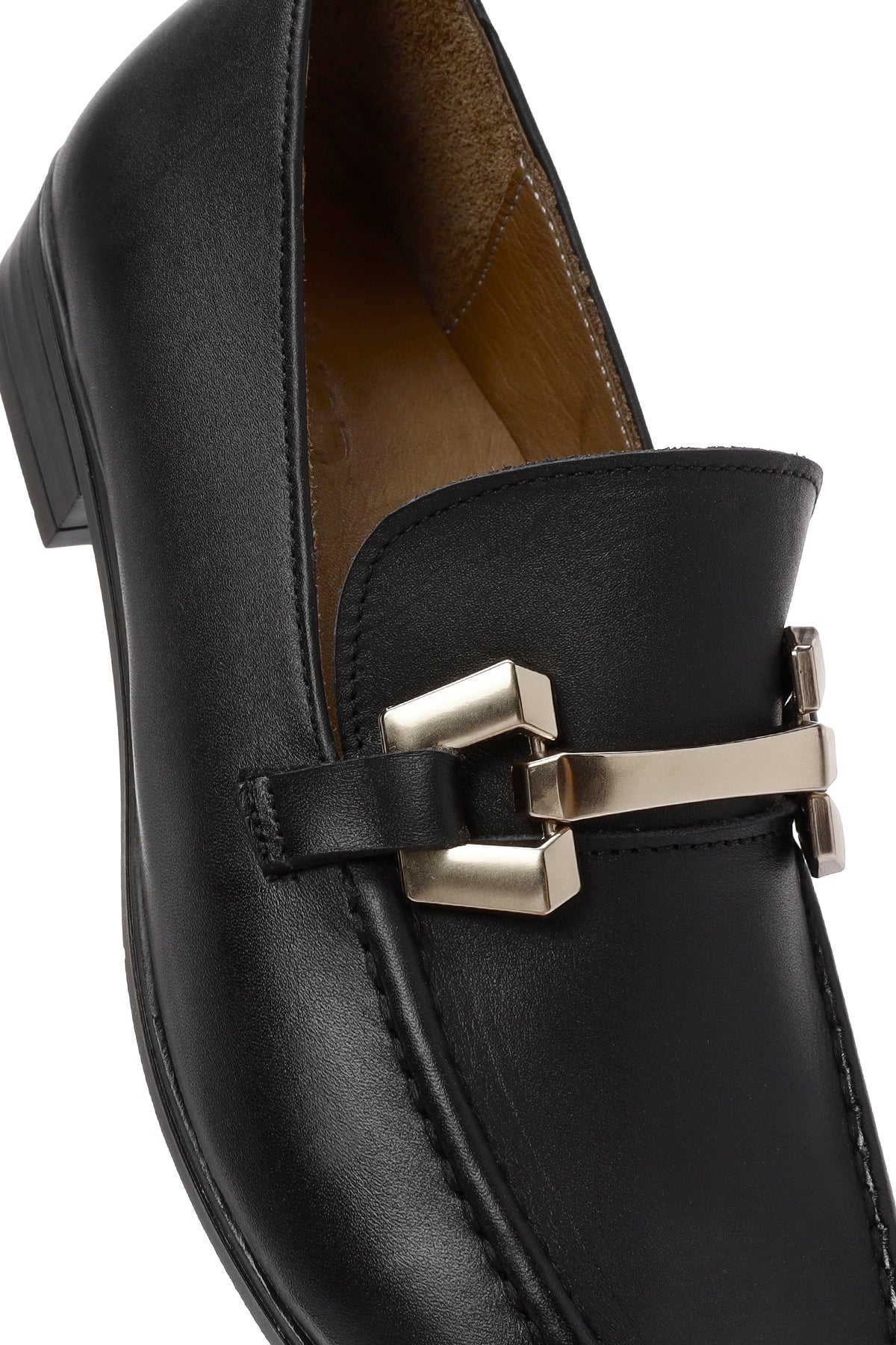 Maskülen tarzın modern yorumu olan siyah vidala deri loafer, minimal tasarımıyla dikkat çekiyor. 1,5 cm yüksekliğindeki topuğu dengeli bir duruş sağlarken, astarsız yapısı sayesinde ayağa tam oturuyor. Üzerindeki gümüş toka detayı klasik görünüme modern bir dokunuş katıyor. Kış koleksiyonunun bu şık parçası, ofis kombinlerinden günlük kullanıma kadar geniş bir yelpazede tercih edilebilir. Özellikle pantolon ve eteklerle mükemmel uyum sağlayan model, sonbahar ve kış aylarında şehir şıklığını tamamlıyor. Ürün kodu: 24WFD360618