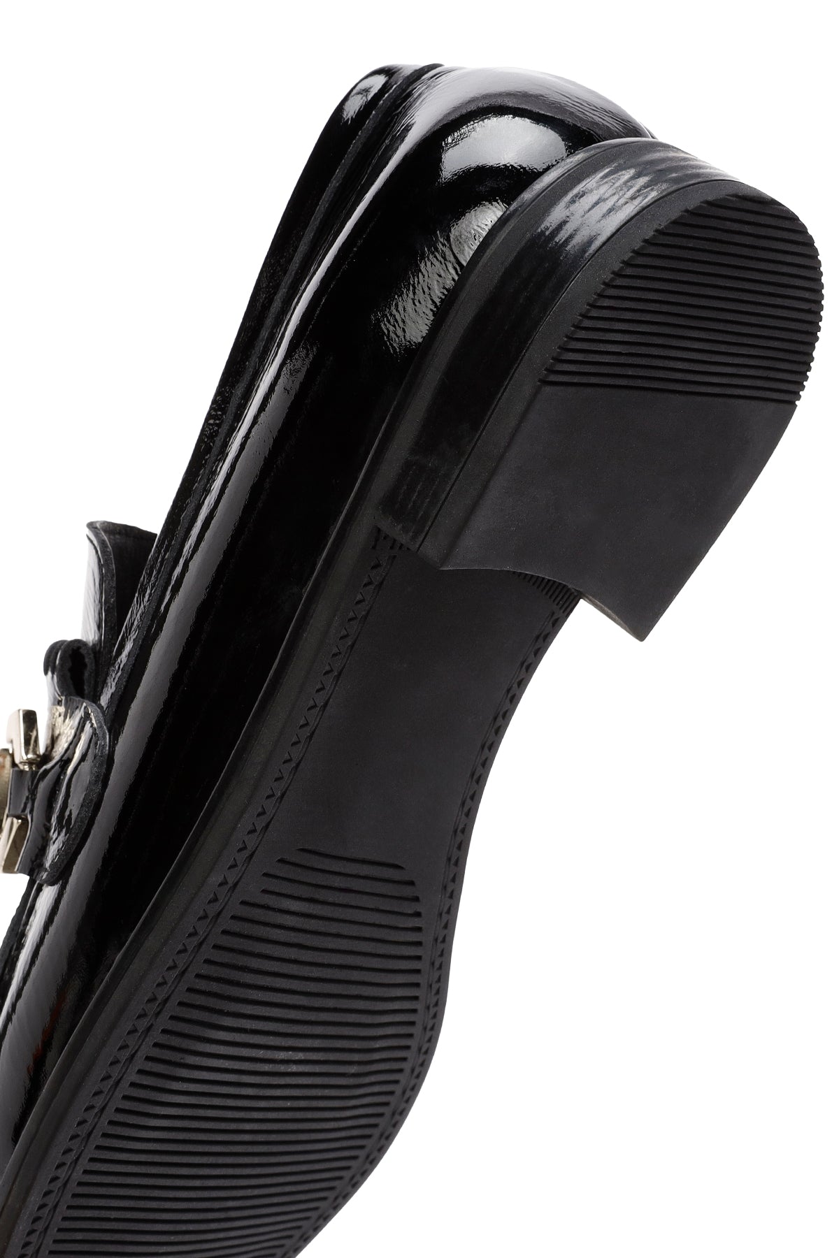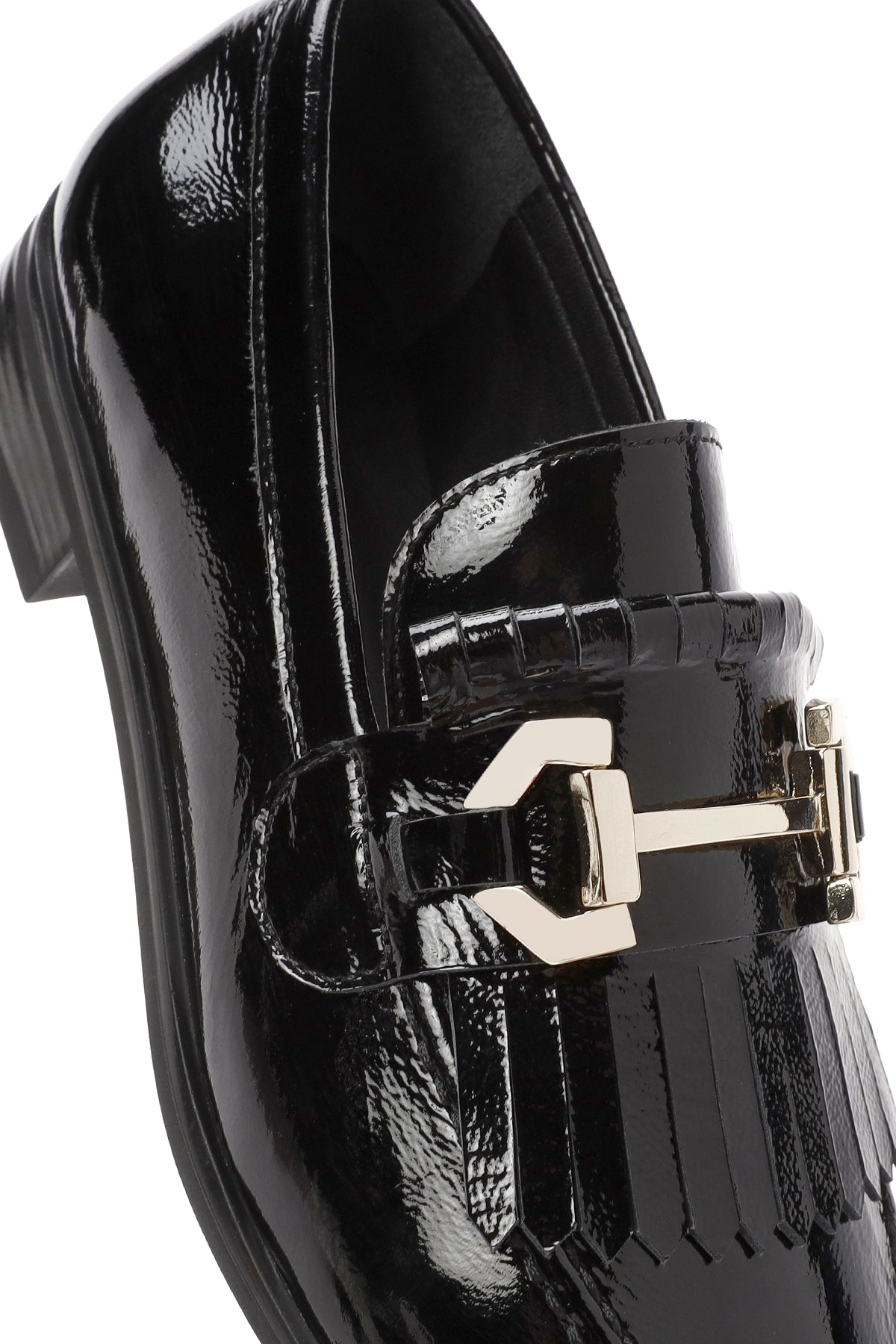Rugan deri kullanılarak üretilen bu maskülen loafer, kış sezonunun şık ve zarif parçalarından biridir. Üzerindeki toka detayı ile klasik görünüme modern bir dokunuş katan model, 2 cm topuk yüksekliği ile dengeli bir duruş sağlar. Deri iç astarı ile ayak sağlığını gözeten tasarım, dayanıklı dış tabanı sayesinde uzun ömürlü kullanım sunar. Siyah rugan derisi ile hem resmi hem günlük kombinlere uyum sağlayan loafer, sonbahar ve kış aylarında tercih edilebilir. Kullanım alanları: Ofis, iş toplantıları, özel davetler ve şık organizasyonlar için idealdir. Ürün kodu: 24WFD200616