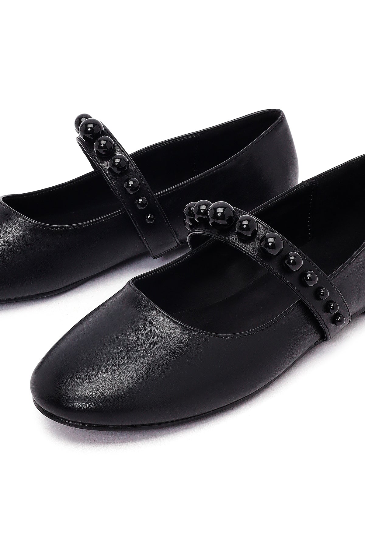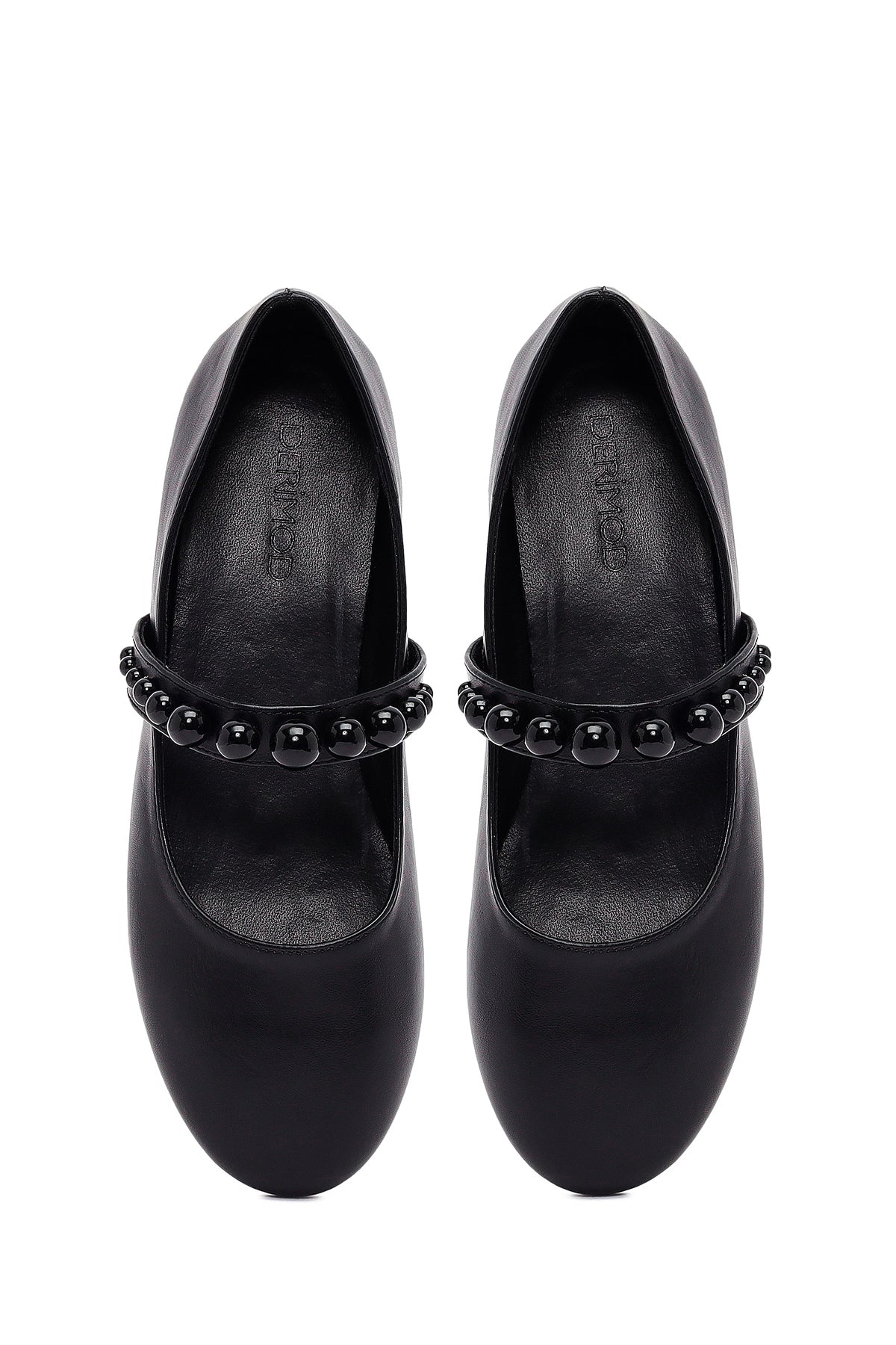 Derimod'un sonbahar koleksiyonundan, siyah renkte tasarlanan babet modeli, 2 cm yüksekliğindeki tabanı ile günlük kullanıma uygun bir tasarım sunuyor. Üst kısmındaki çapraz bantlar ve siyah boncuk detayları ile modern bir görünüm sergileyen model, deri iç astarı sayesinde ayağınızı rahat ettiriyor. Şık ve kullanışlı tasarımı ile ofisten günlük yaşama, iş toplantılarından casual davetlere kadar geniş bir kullanım alanı sunuyor. İlkbahar ve sonbahar mevsimlerinde günün her saatinde kullanılabilir. Ürün kodu: 25AFE480018